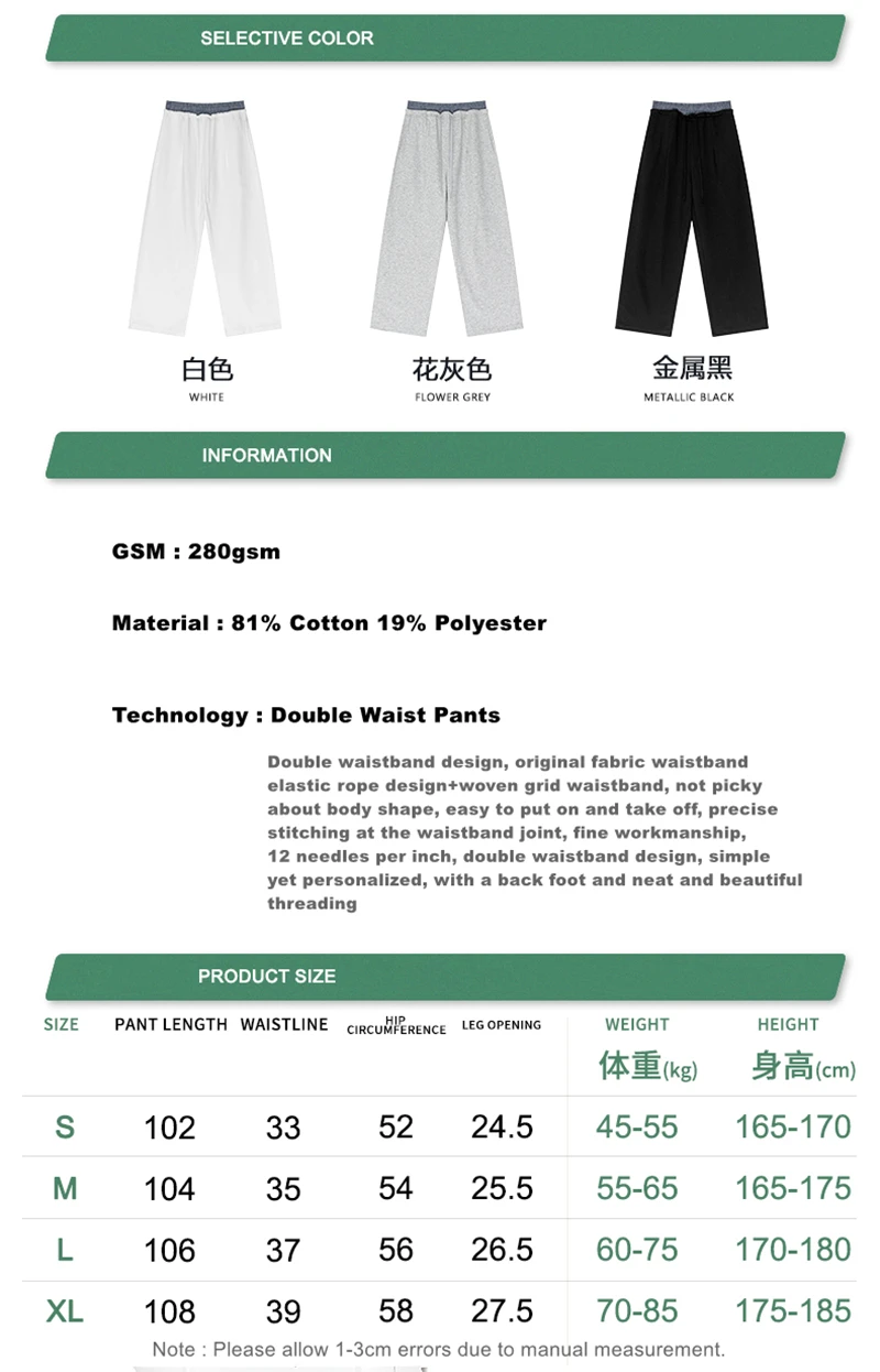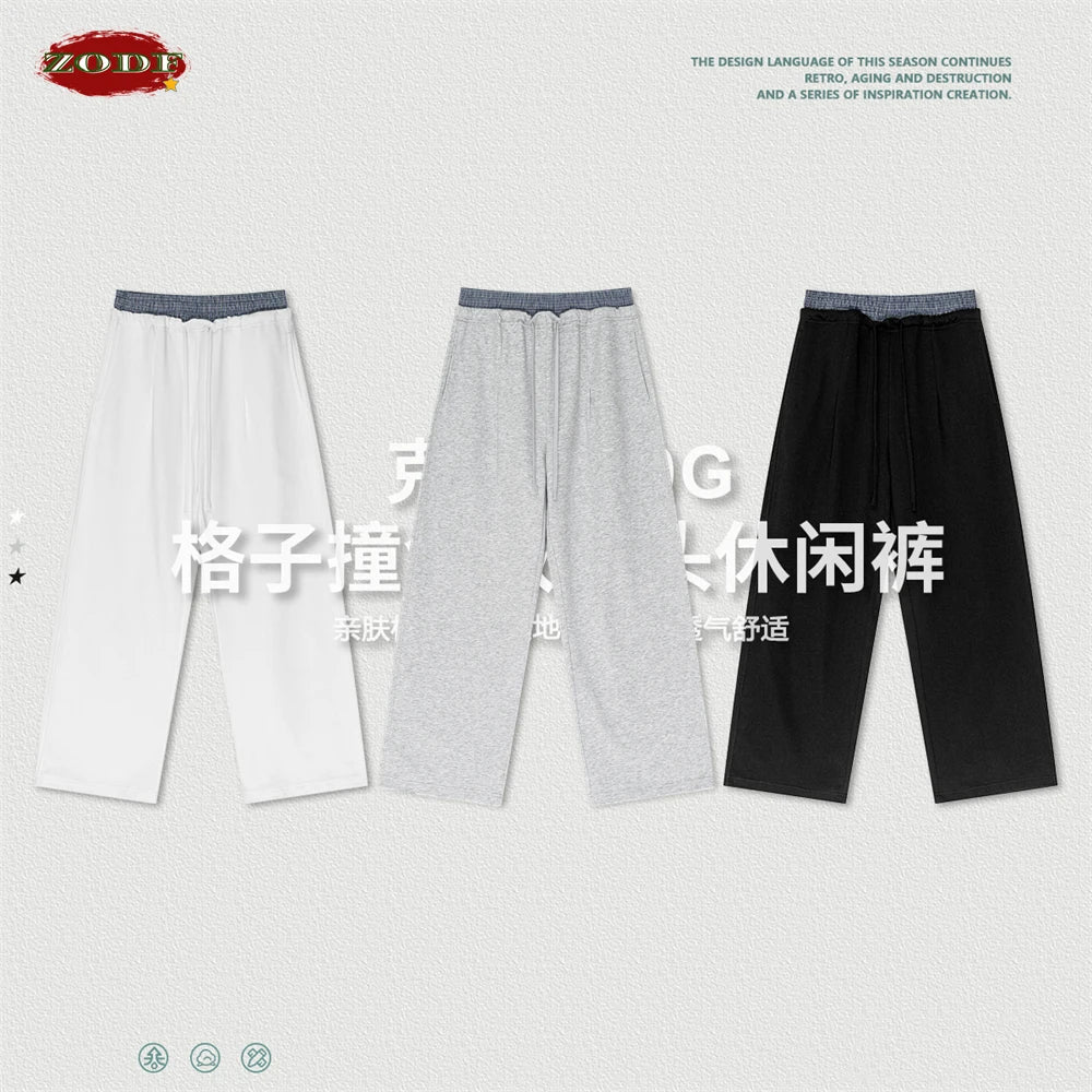 ZODF New 2025 Spring Men 280gsm Straight Pants Unisex Casual High Street Double Waist Sport Trousers Brand Streetwear HY1004