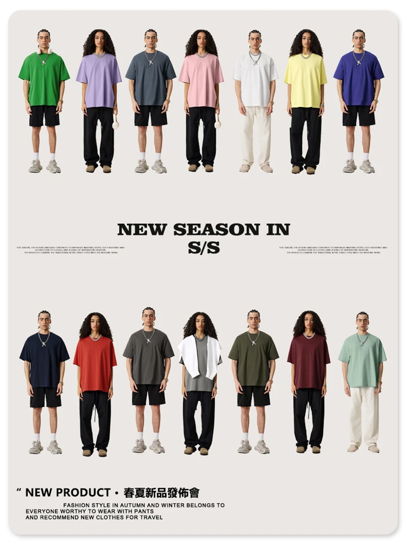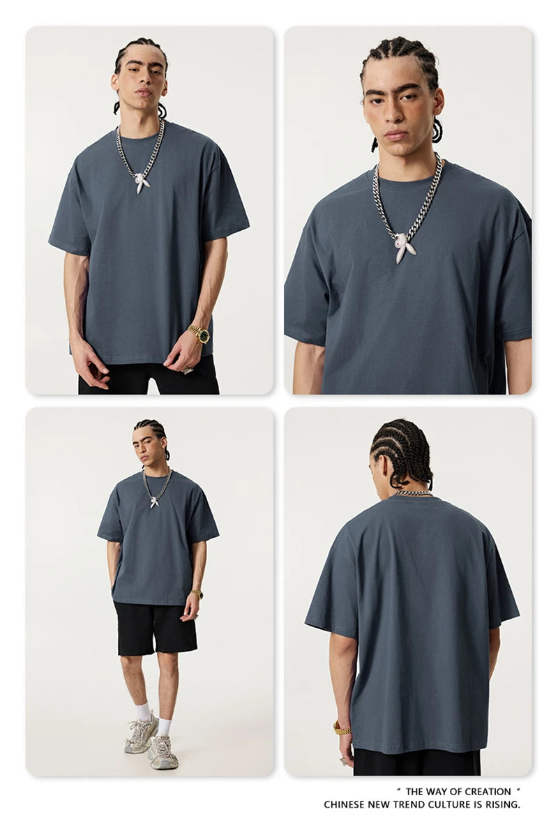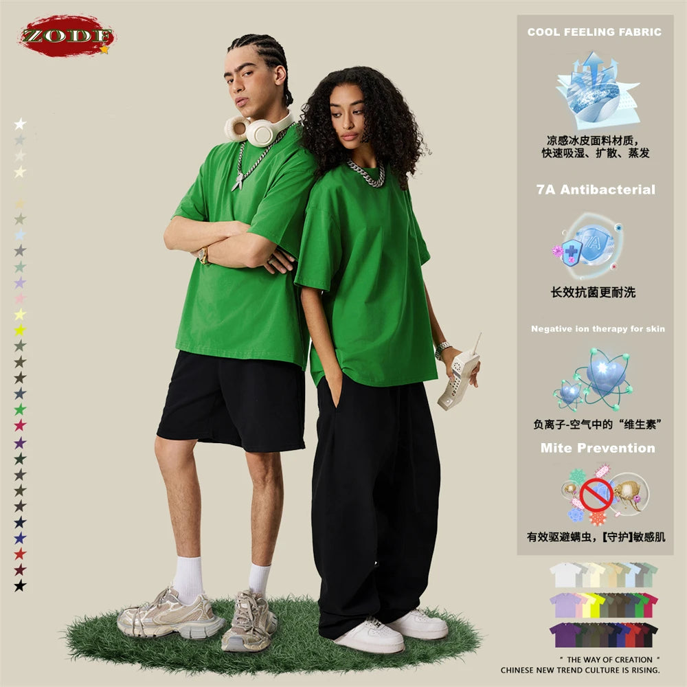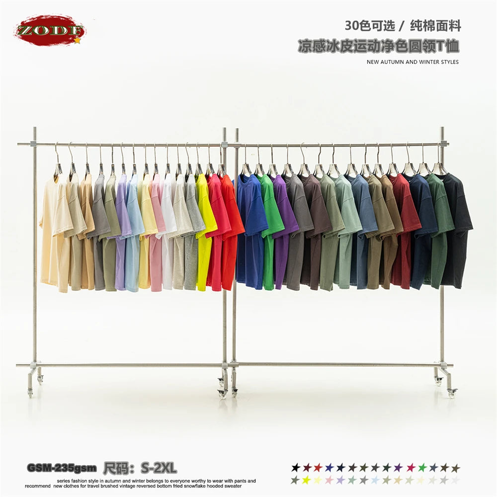 ZODF New 2025 Spring Summer 235gsm Solid Cotton T-Shirts For Men Women Unisex Loose Basic T Shirt Tees Brand Tops HY0970