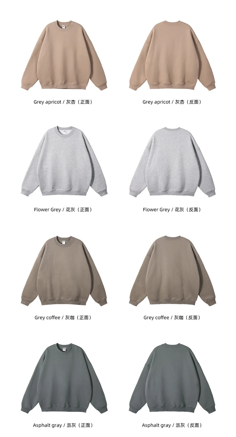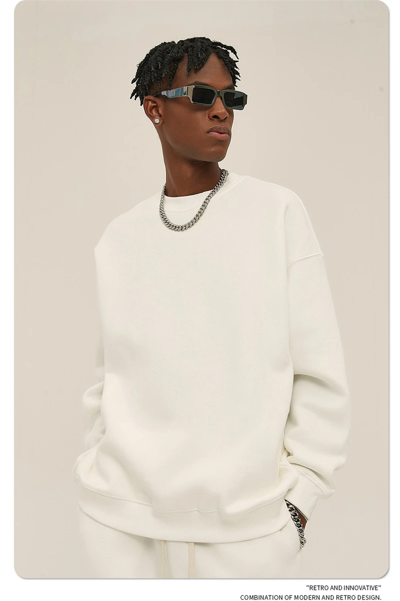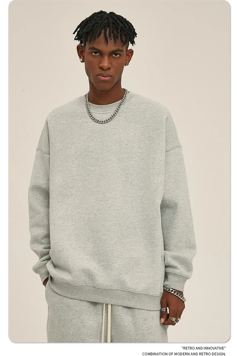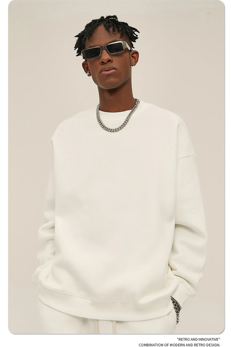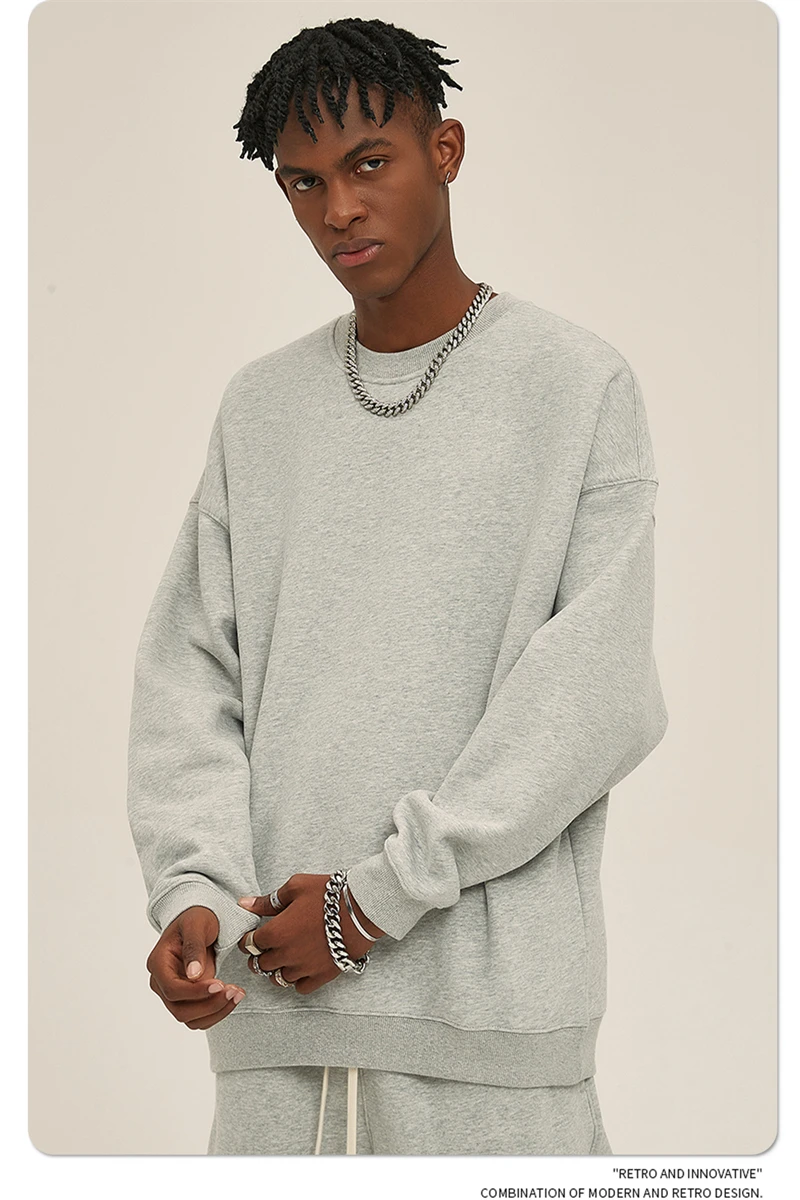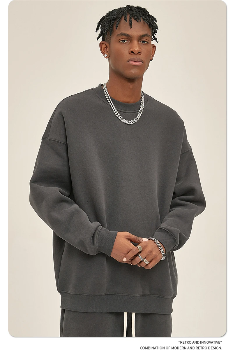 ZODF New 2025 Winter 350gsm Fleece Sweatshirts For Men Unisex Casual Loose Basic Solid O-Neck Thick Warm Pullovers HY0635