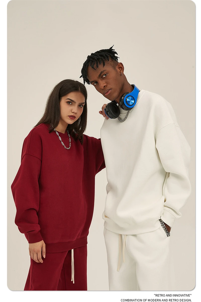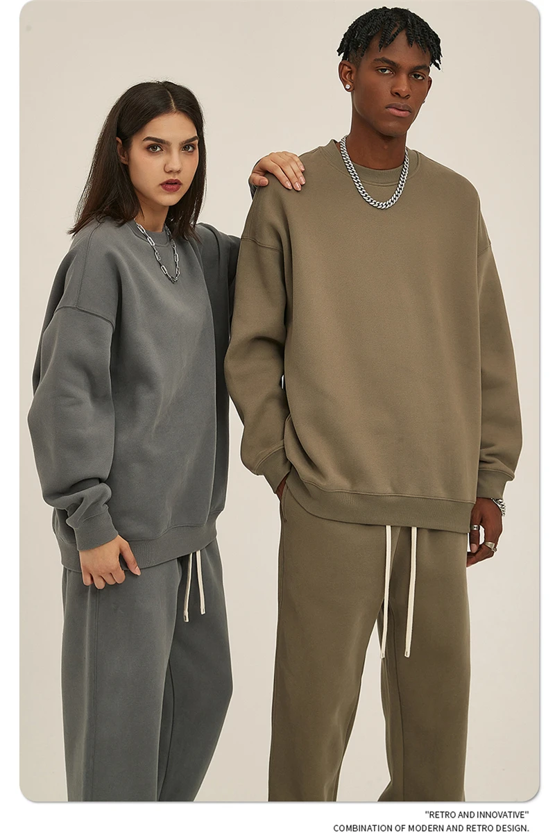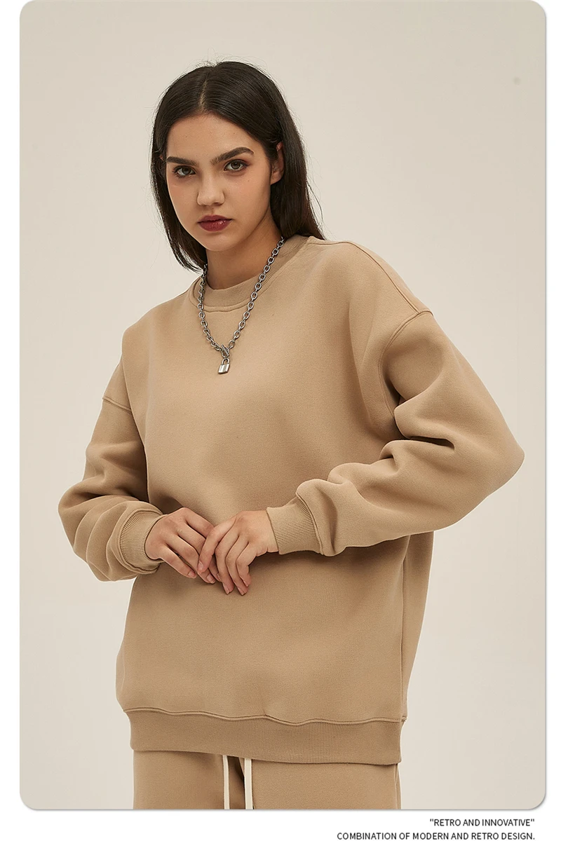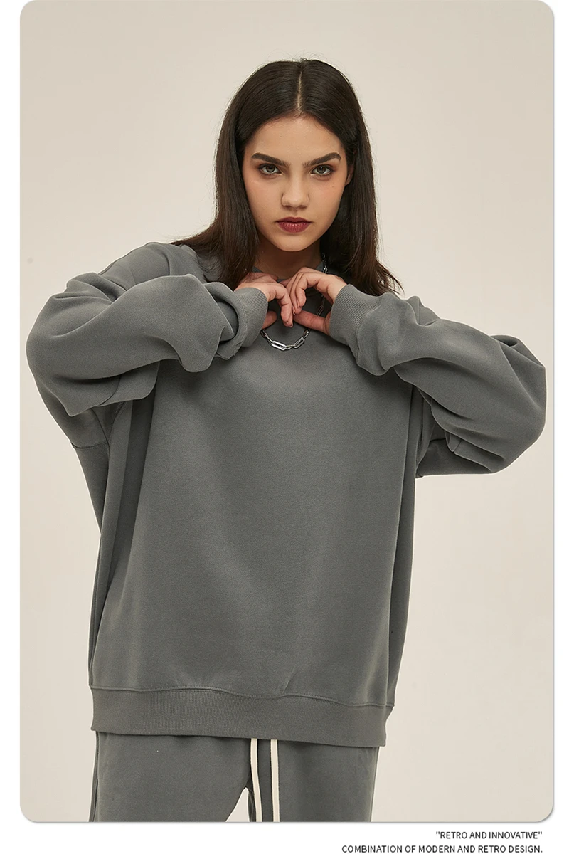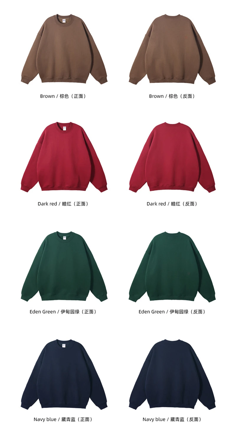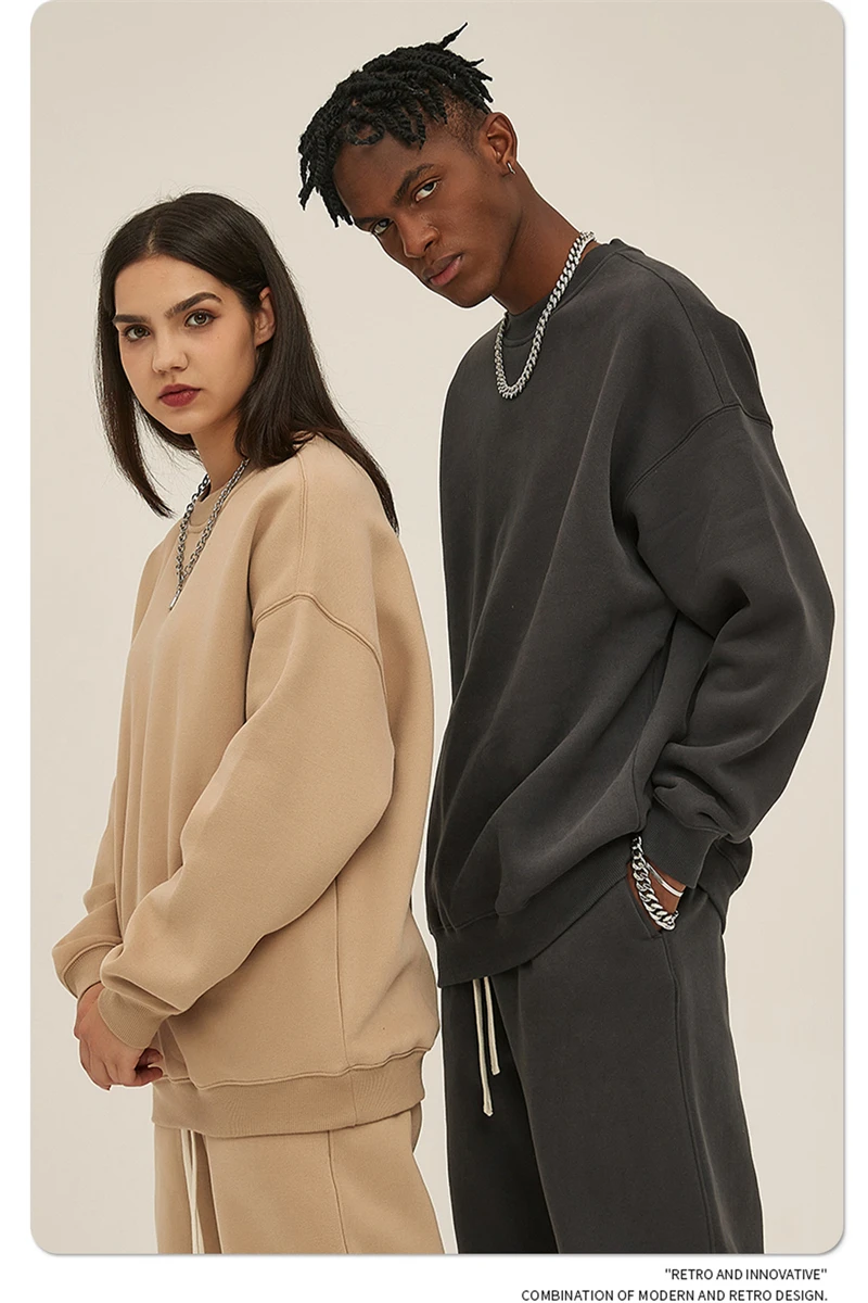 ZODF New 2025 Winter 350gsm Fleece Sweatshirts For Men Unisex Casual Loose Basic Solid O-Neck Thick Warm Pullovers HY0635