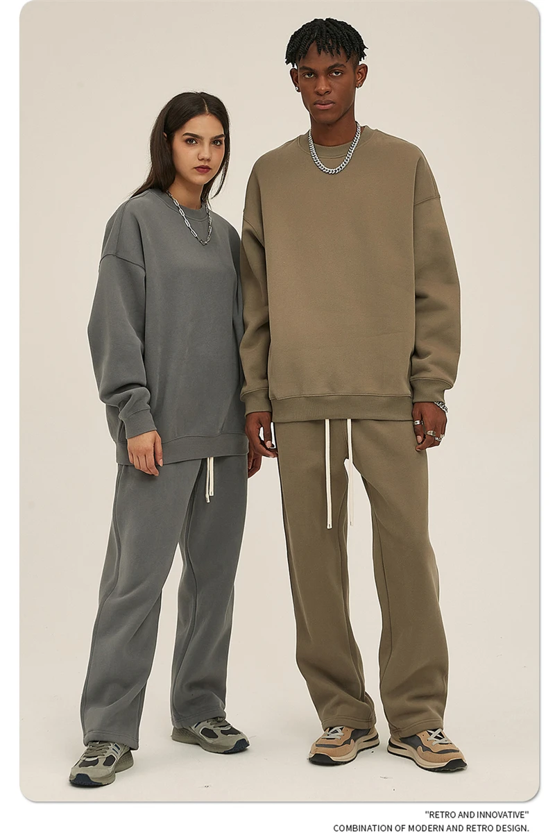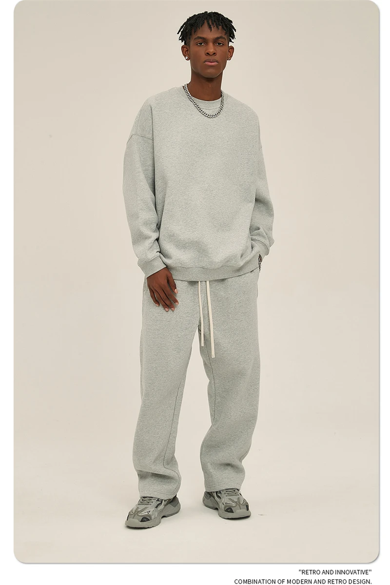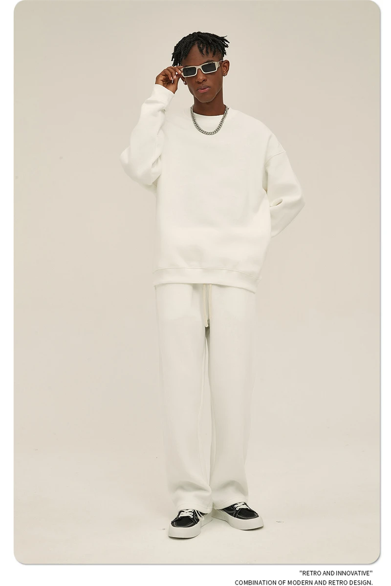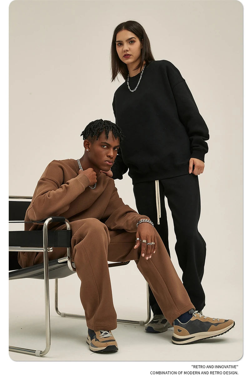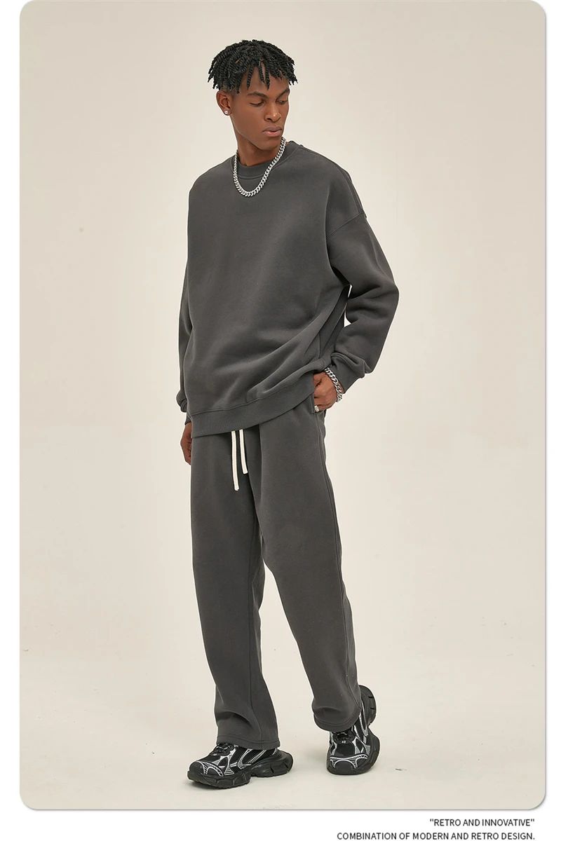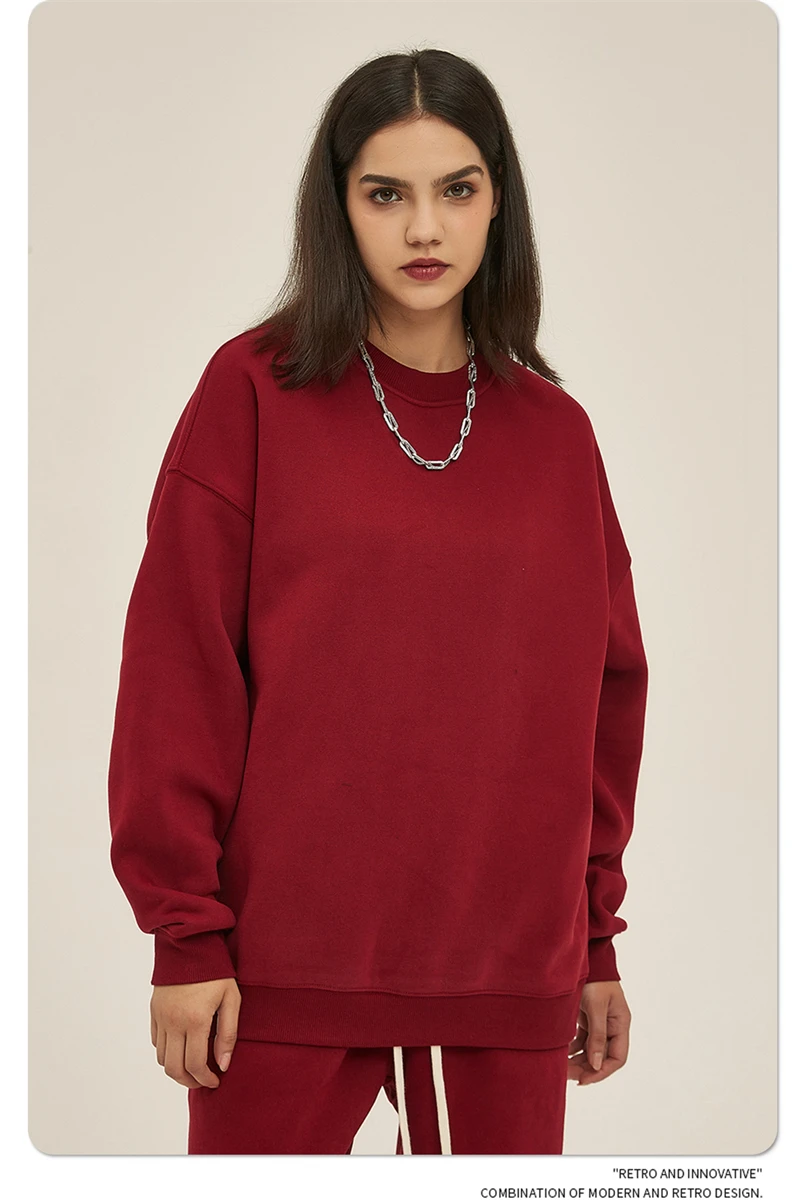 ZODF New 2025 Winter 350gsm Fleece Sweatshirts For Men Unisex Casual Loose Basic Solid O-Neck Thick Warm Pullovers HY0635
