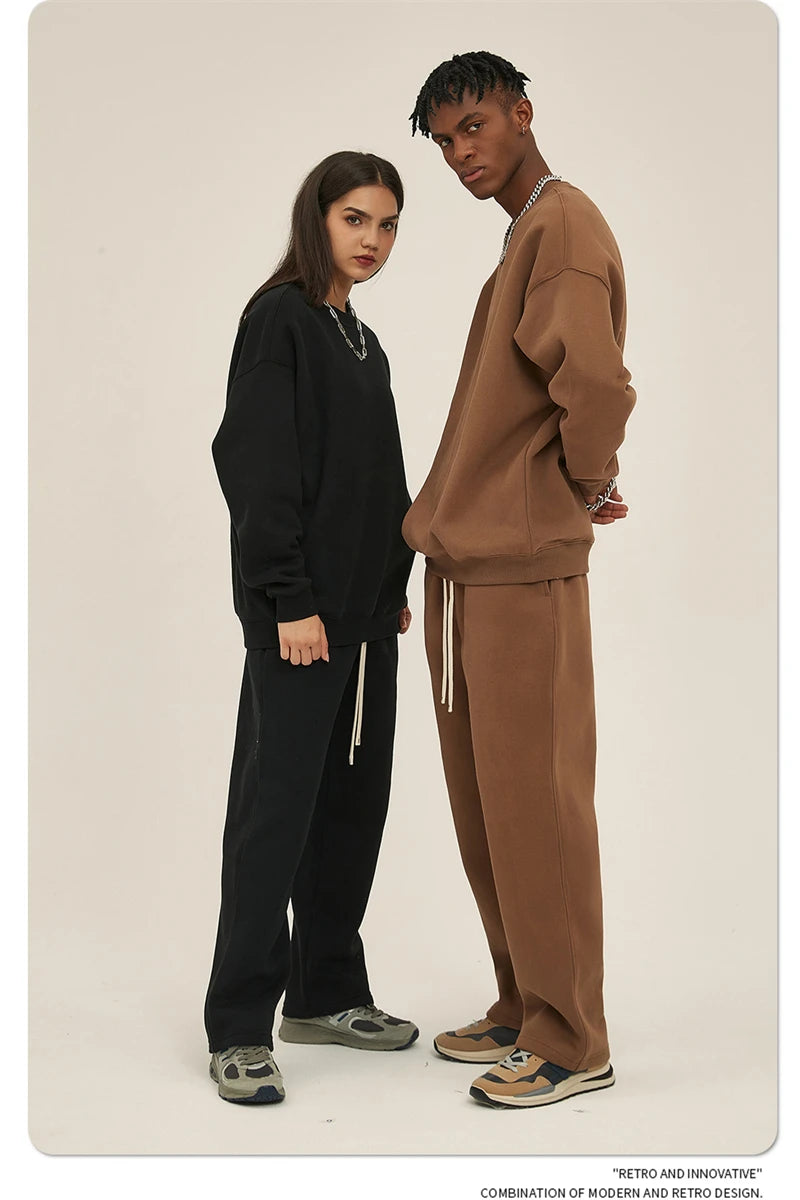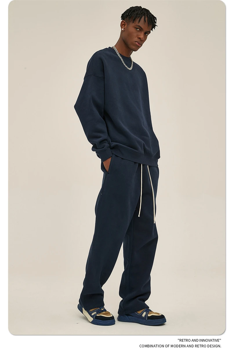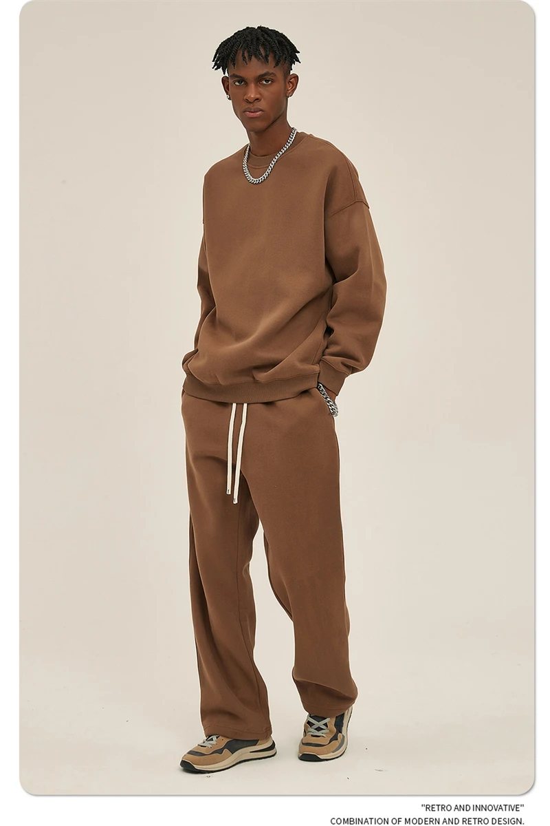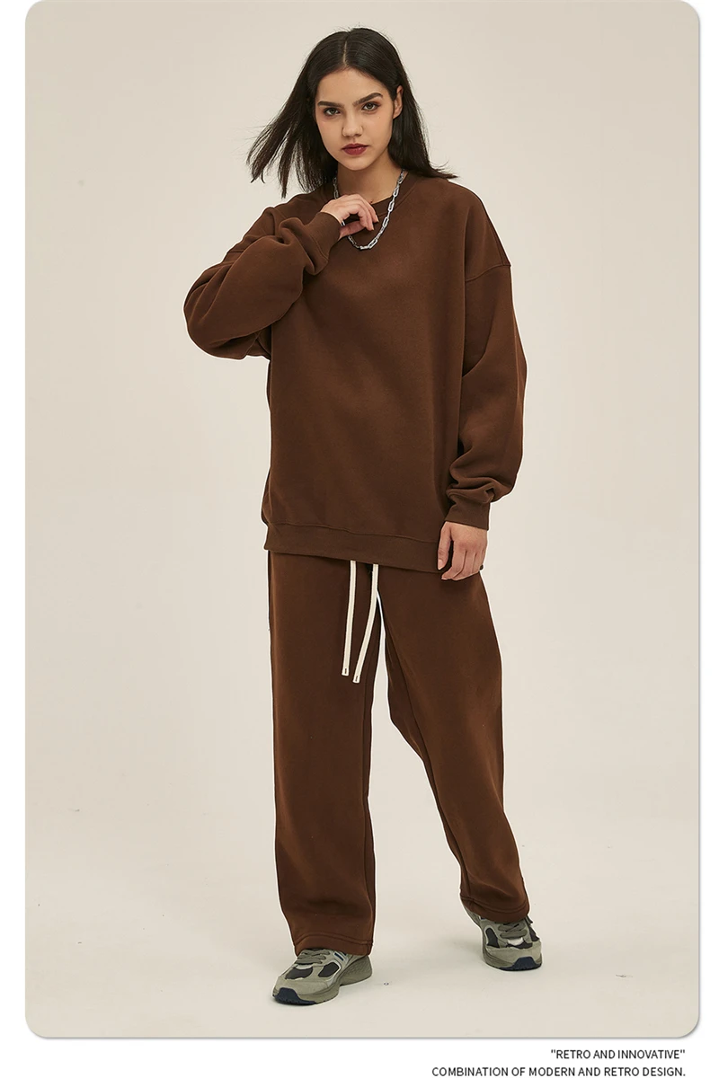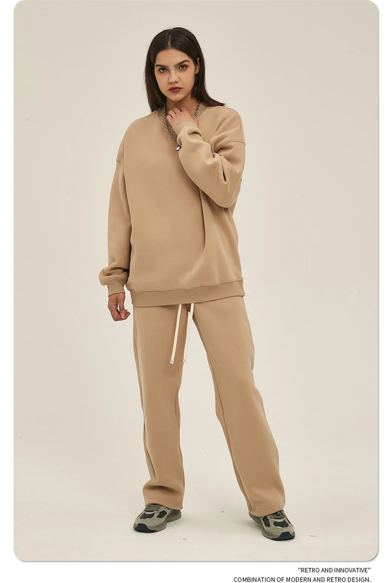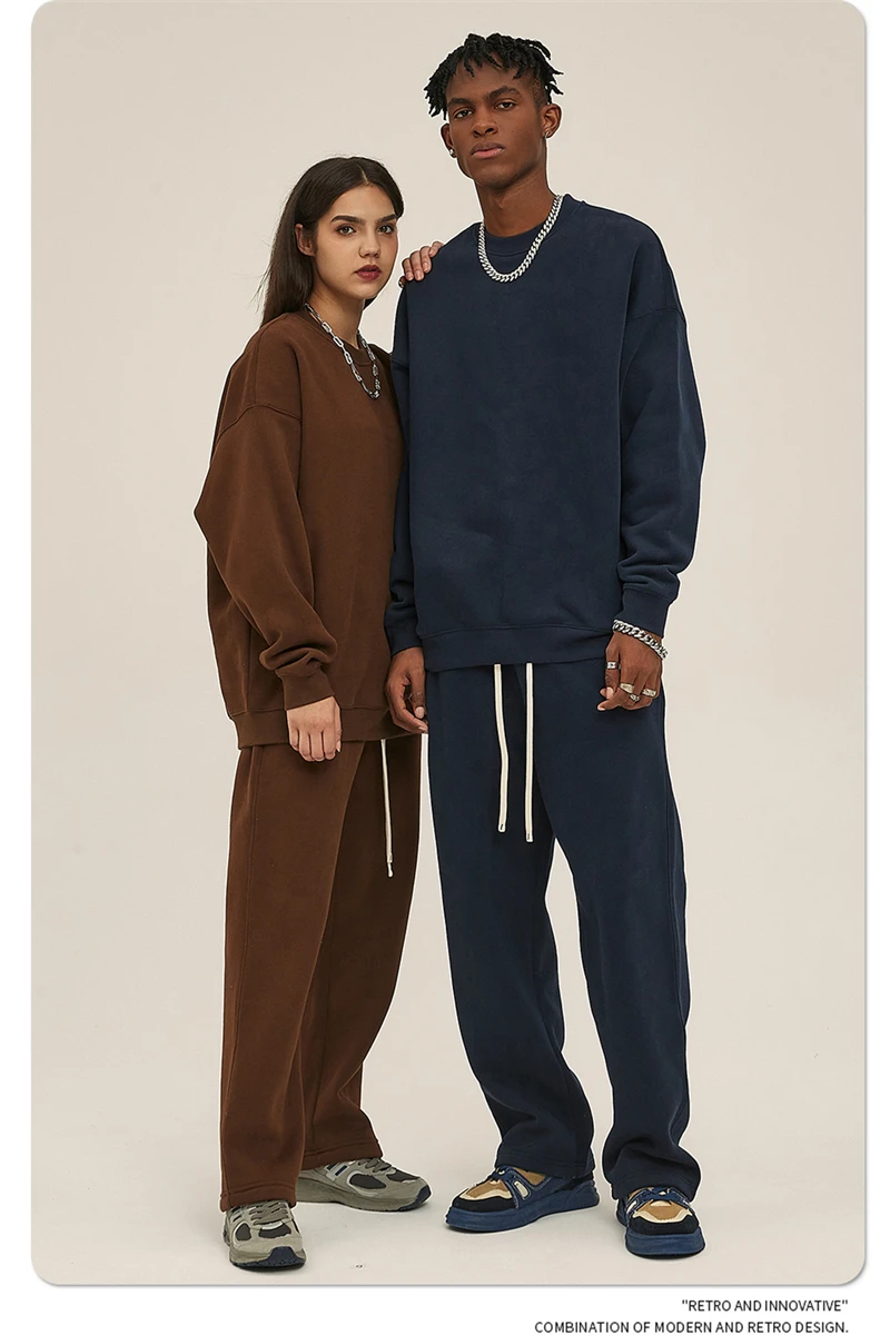 ZODF New 2025 Winter 350gsm Fleece Sweatshirts For Men Unisex Casual Loose Basic Solid O-Neck Thick Warm Pullovers HY0635