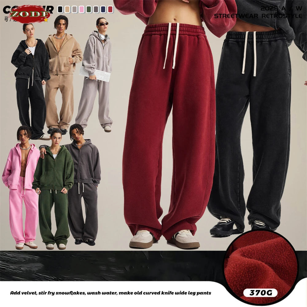 ZODF New 2025 Winter Batik Washed Man Fleece Pants Unisex High Street Distressed Thick Warm Straight Trousers Sweatpants HY1166