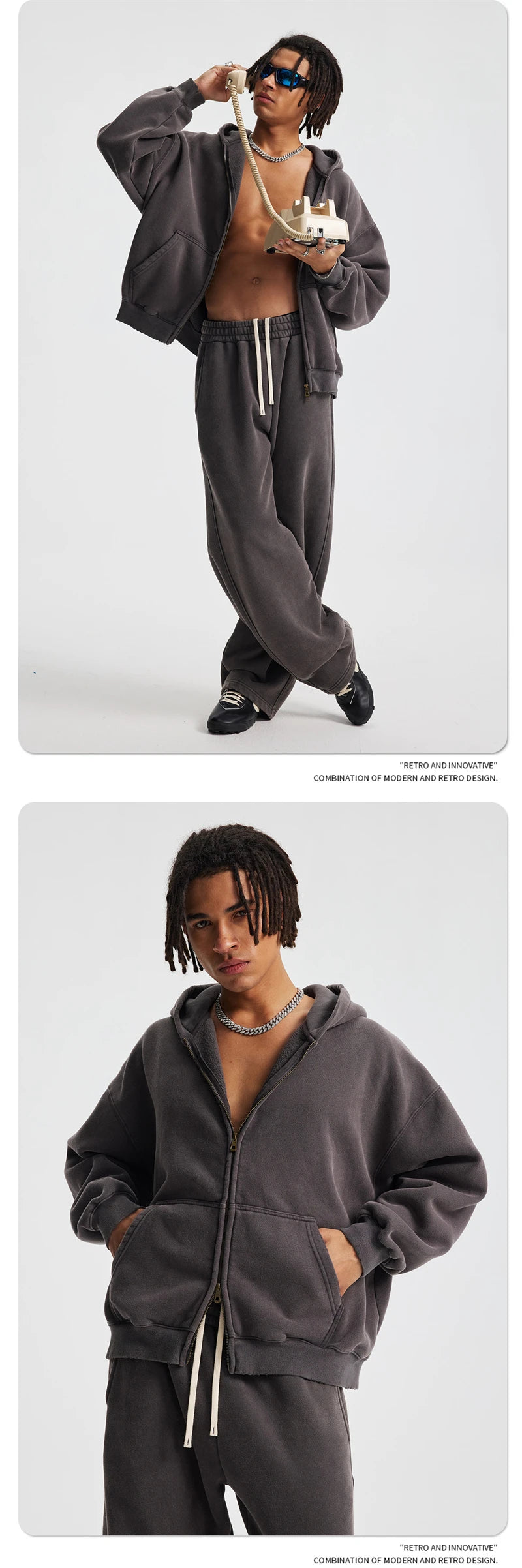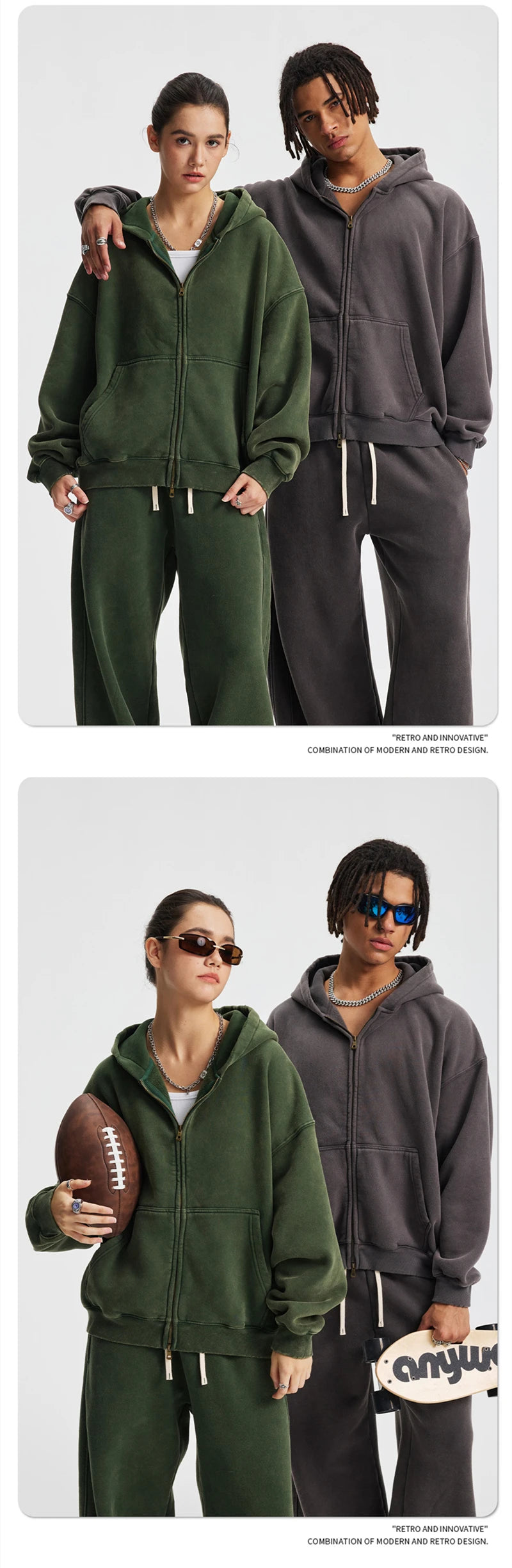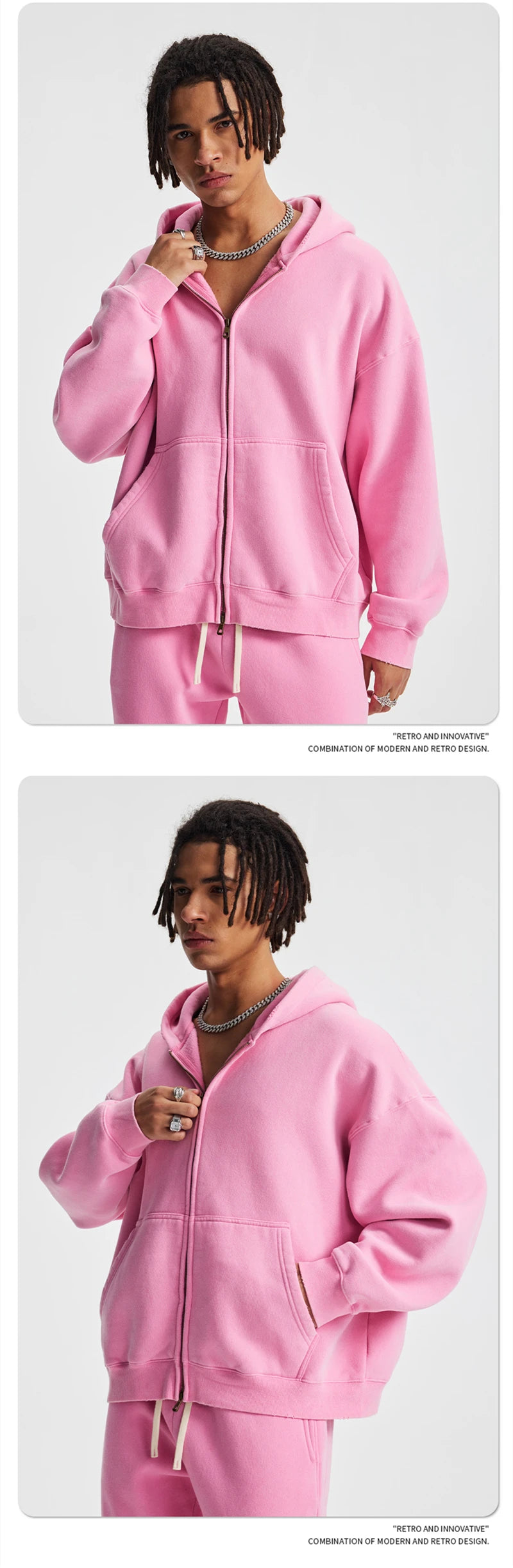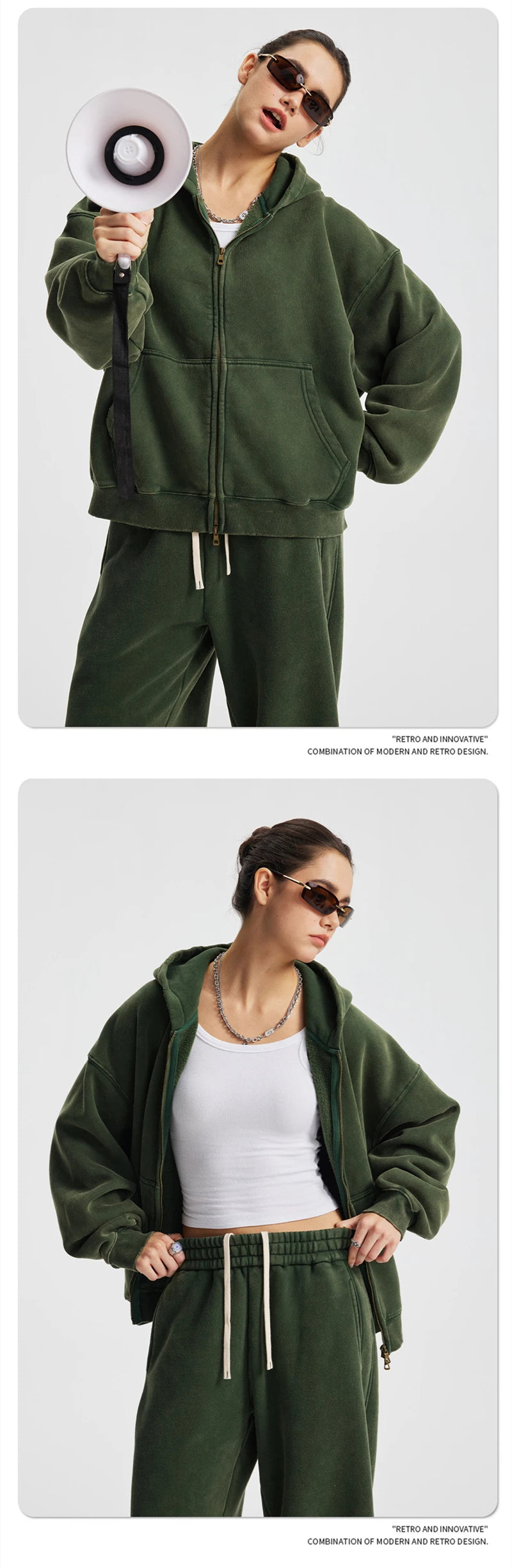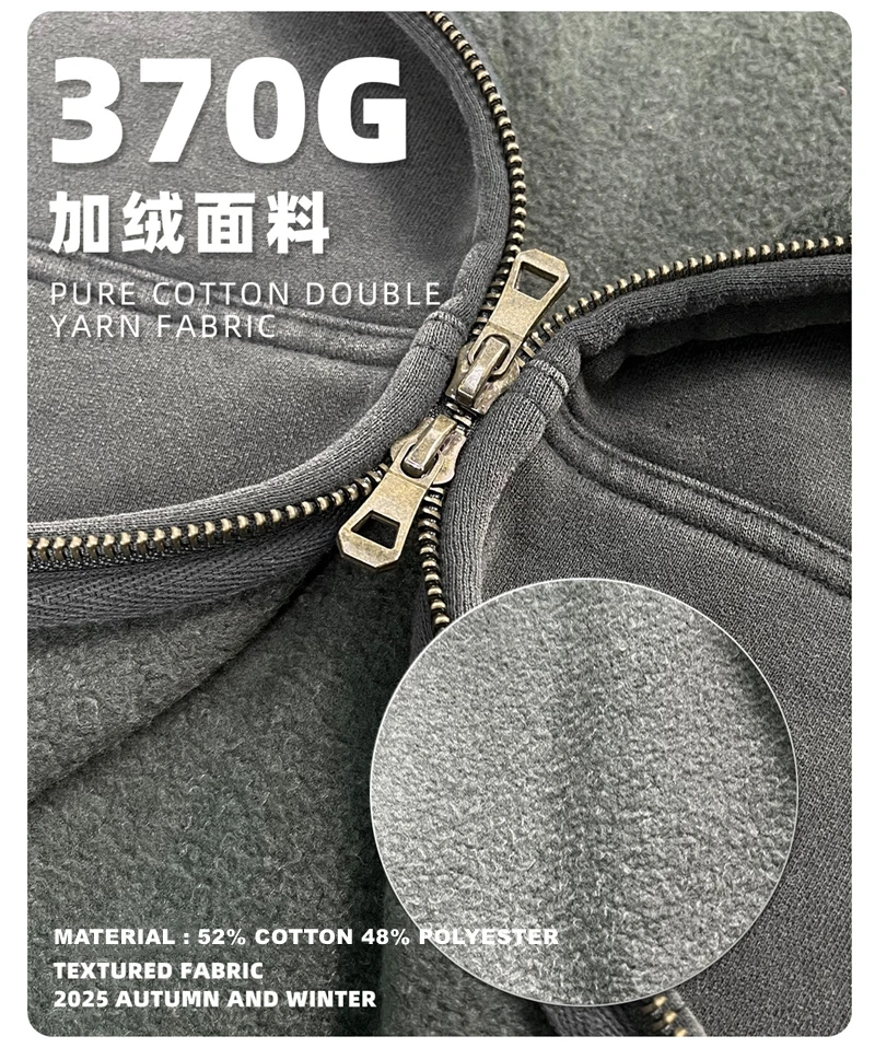ZODF New 2025 Winter Man's Fleece Zipper Hoodies Unisex Retro 370gsm Loose Boxy Batik Washed Hooded Coats Sweatshirts HY1164
