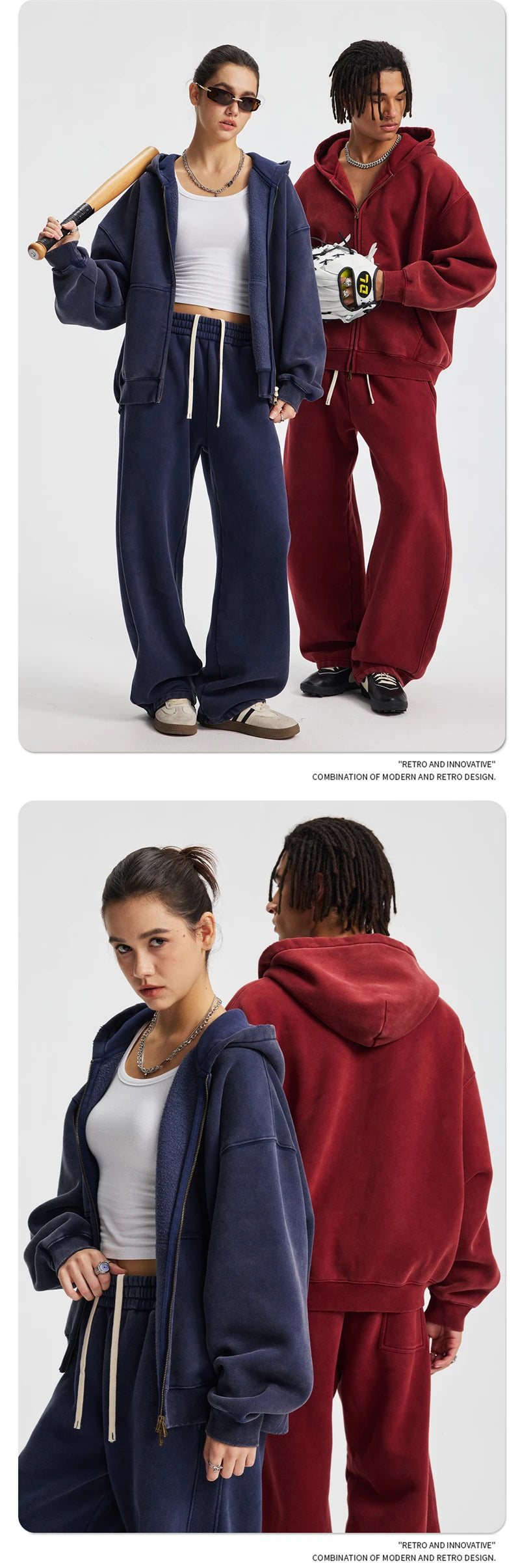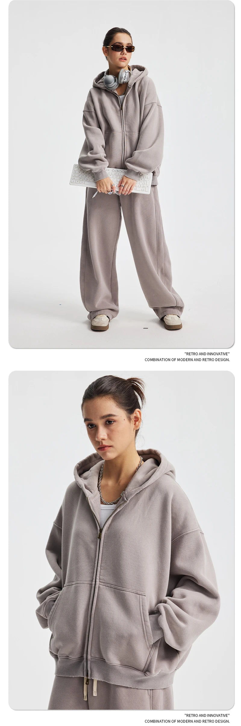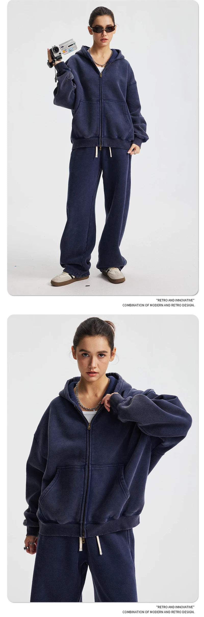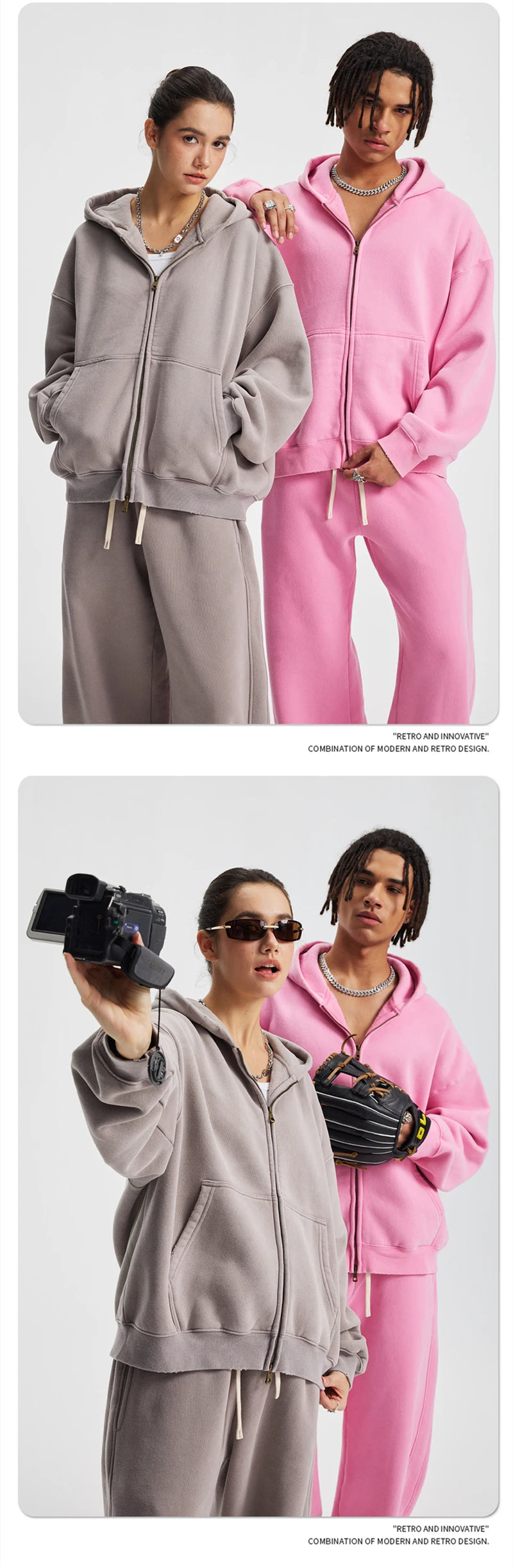 ZODF New 2025 Winter Man's Fleece Zipper Hoodies Unisex Retro 370gsm Loose Boxy Batik Washed Hooded Coats Sweatshirts HY1164
