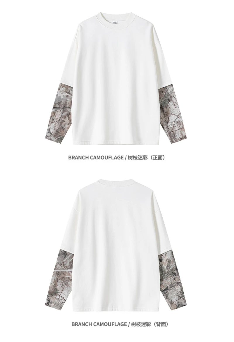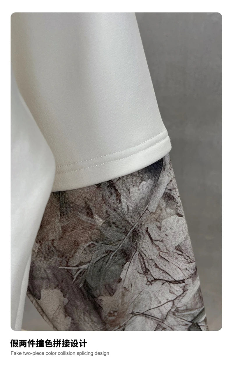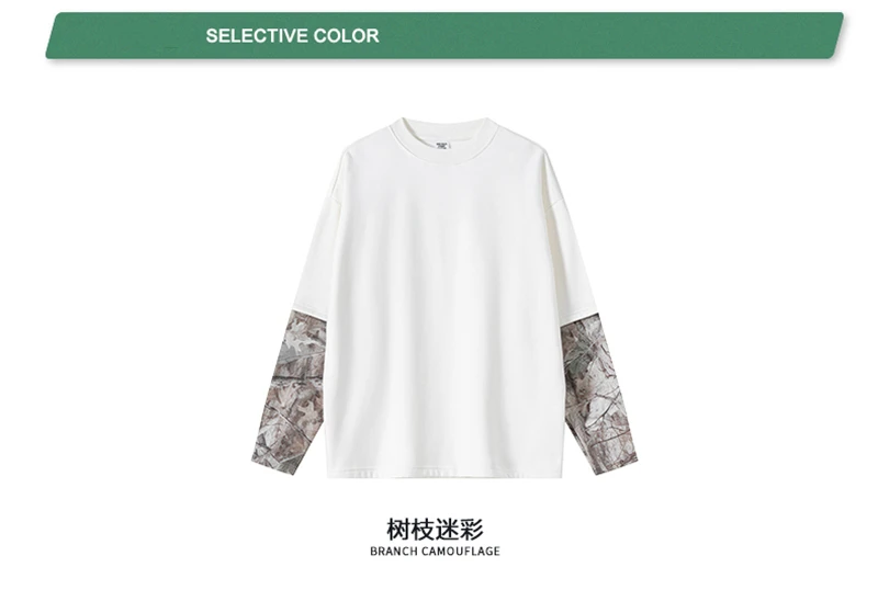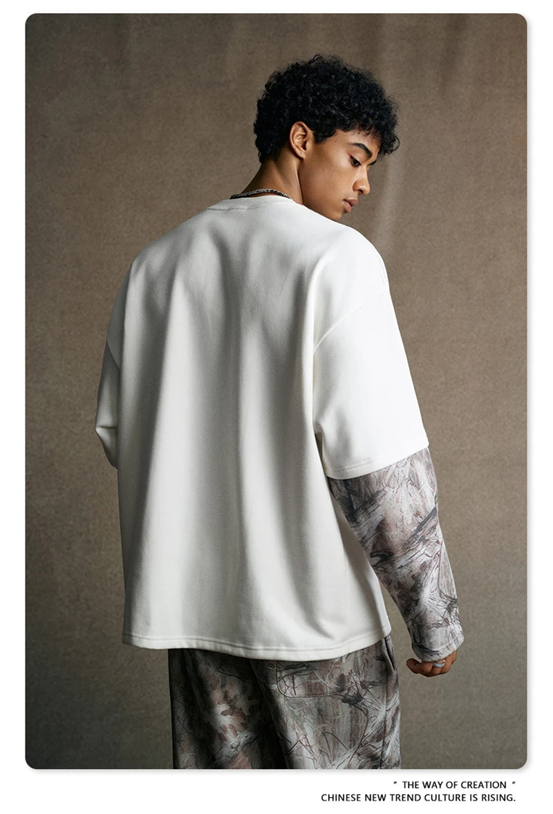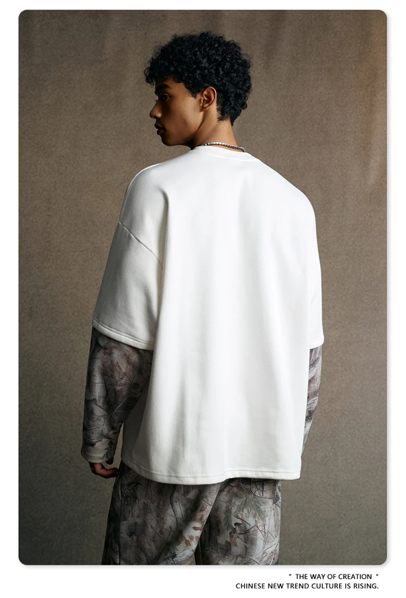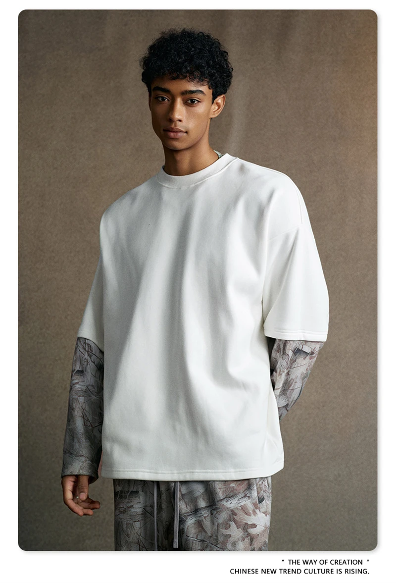 ZODF New Autumn Man Heat Transfer Printing T-Shirt Unisex Oversized 340gsm Fake 2-Piece Long Sleeve T Shirts Brand Tops HY1113
