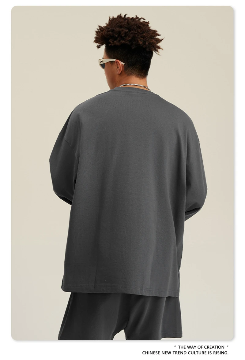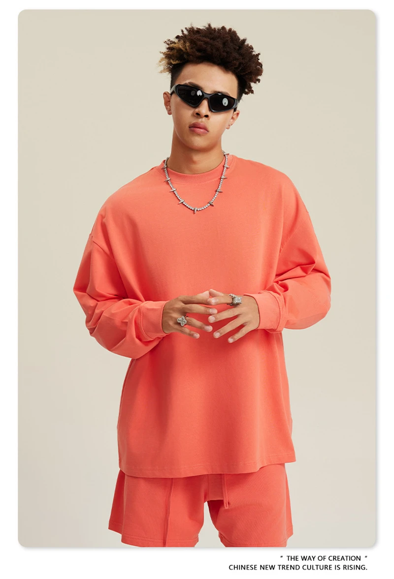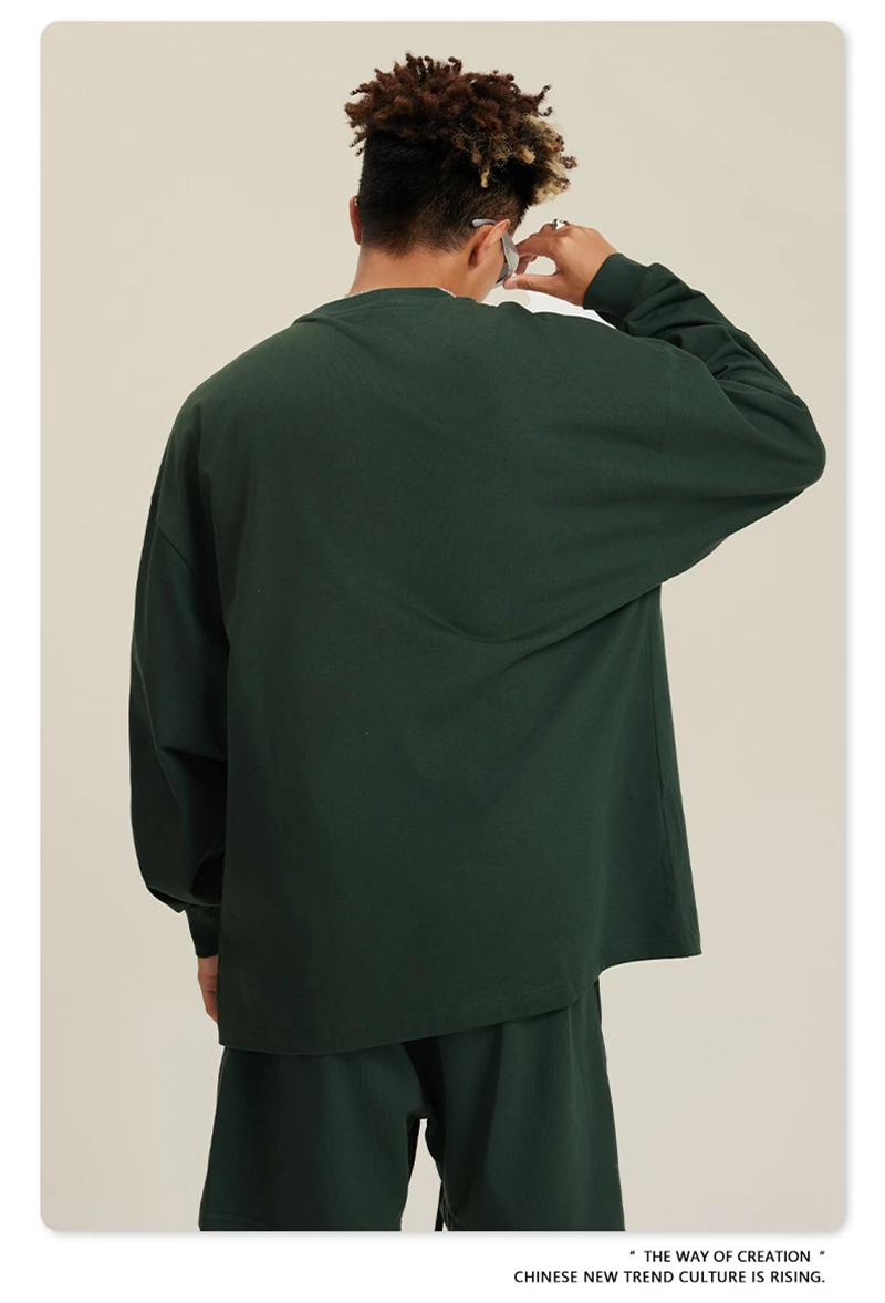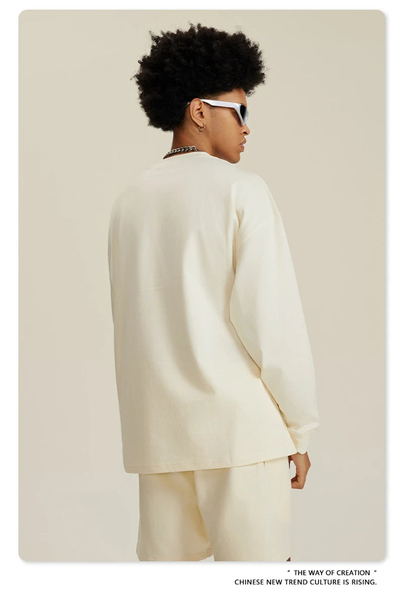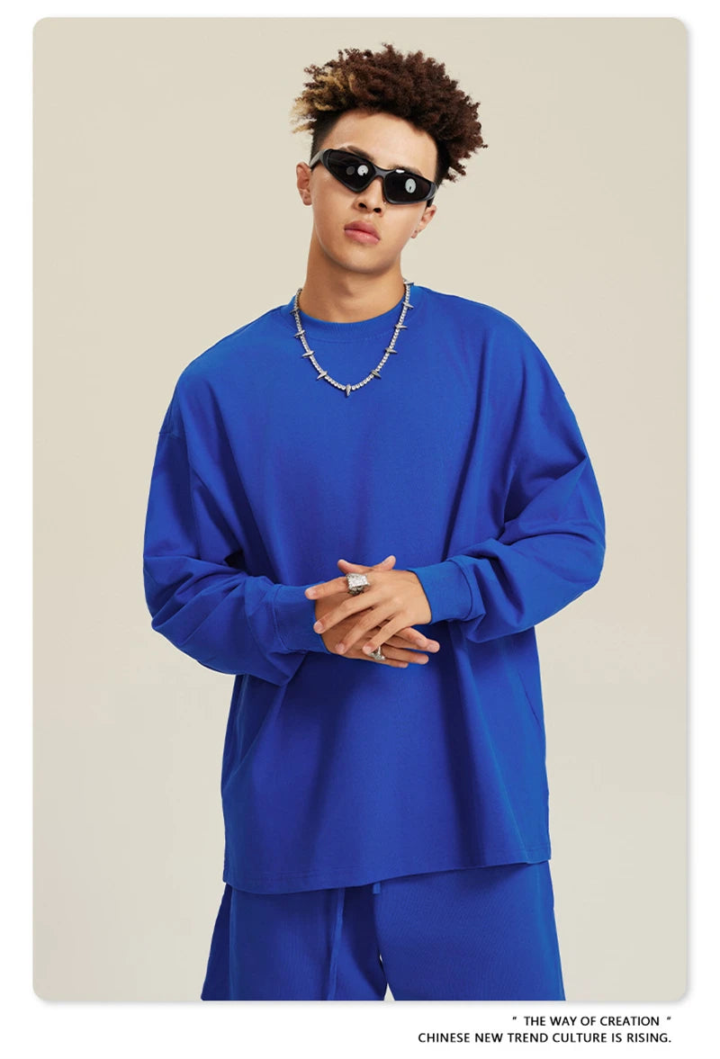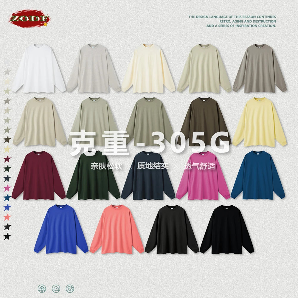 ZODF NEW Autumn Men's Solid Full Sleeve T Shirts Unisex Loose Oversized Casual 305GSM Cotton Basic T-Shirt Brand TEE HY0209