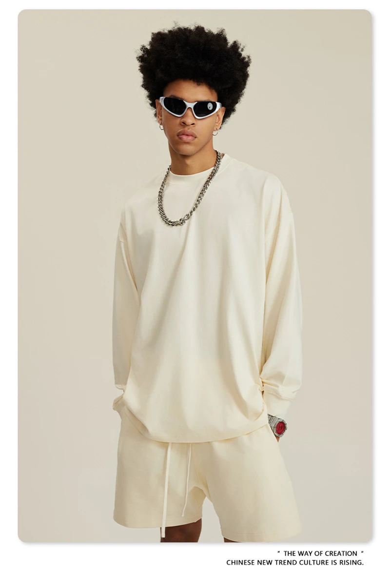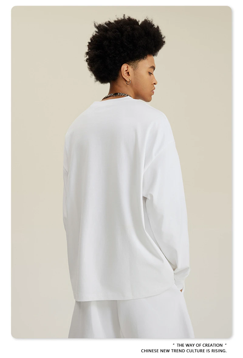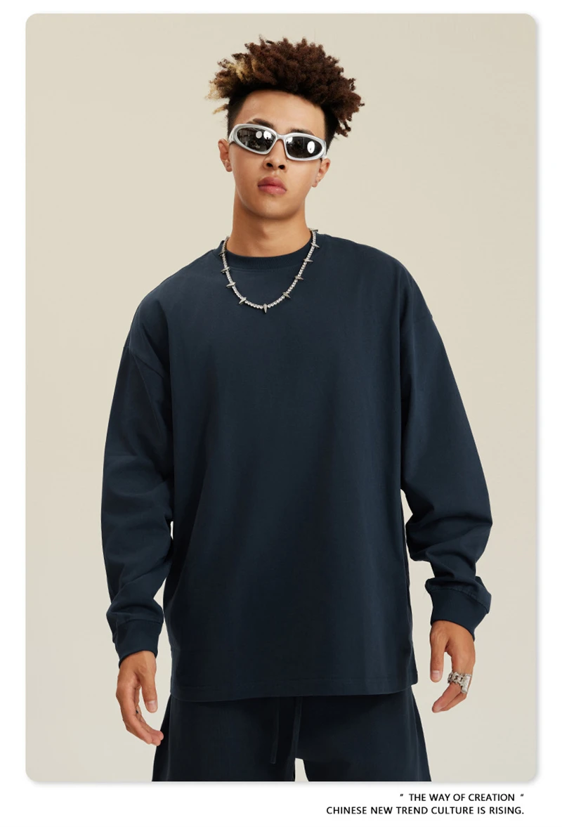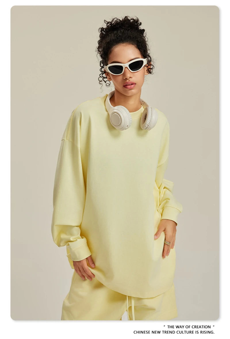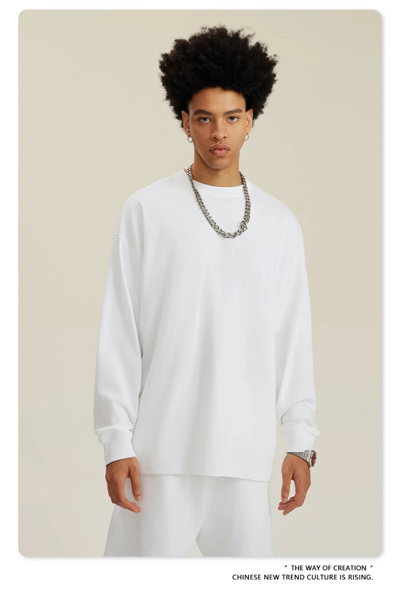 ZODF NEW Autumn Men's Solid Full Sleeve T Shirts Unisex Loose Oversized Casual 305GSM Cotton Basic T-Shirt Brand TEE HY0209