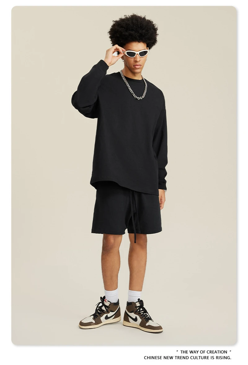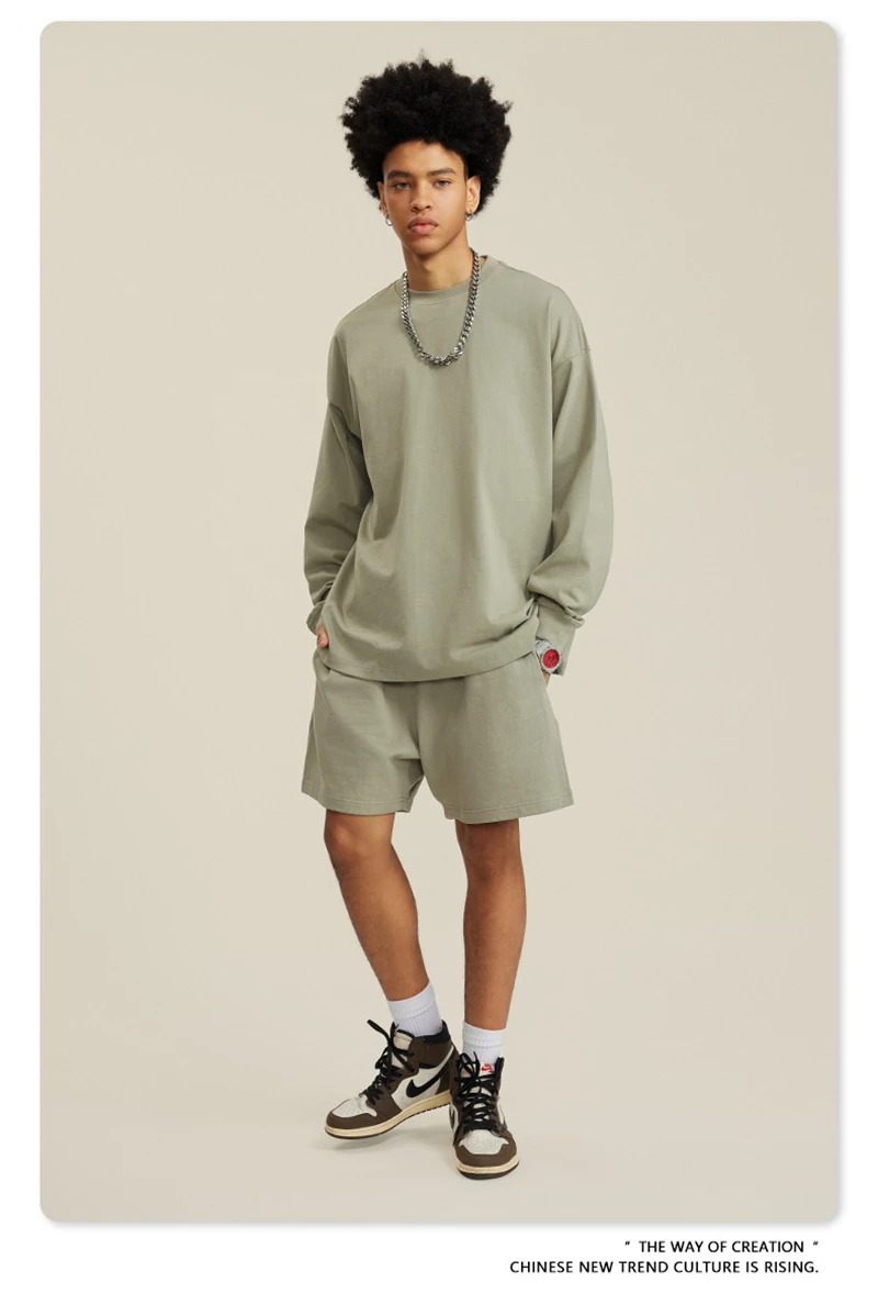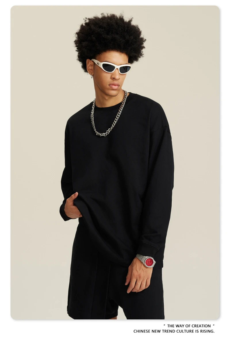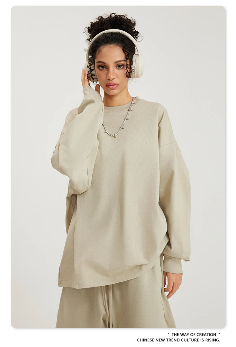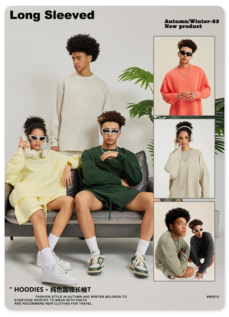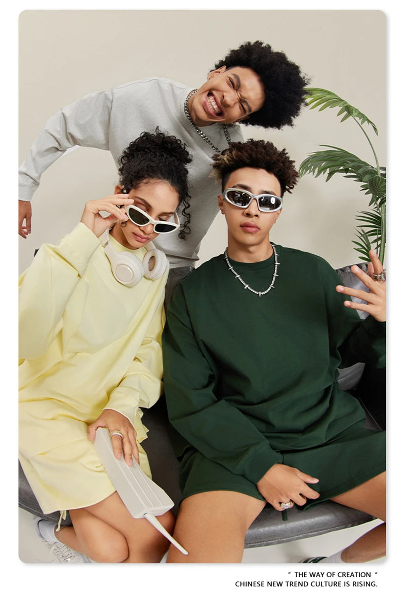 ZODF NEW Autumn Men's Solid Full Sleeve T Shirts Unisex Loose Oversized Casual 305GSM Cotton Basic T-Shirt Brand TEE HY0209