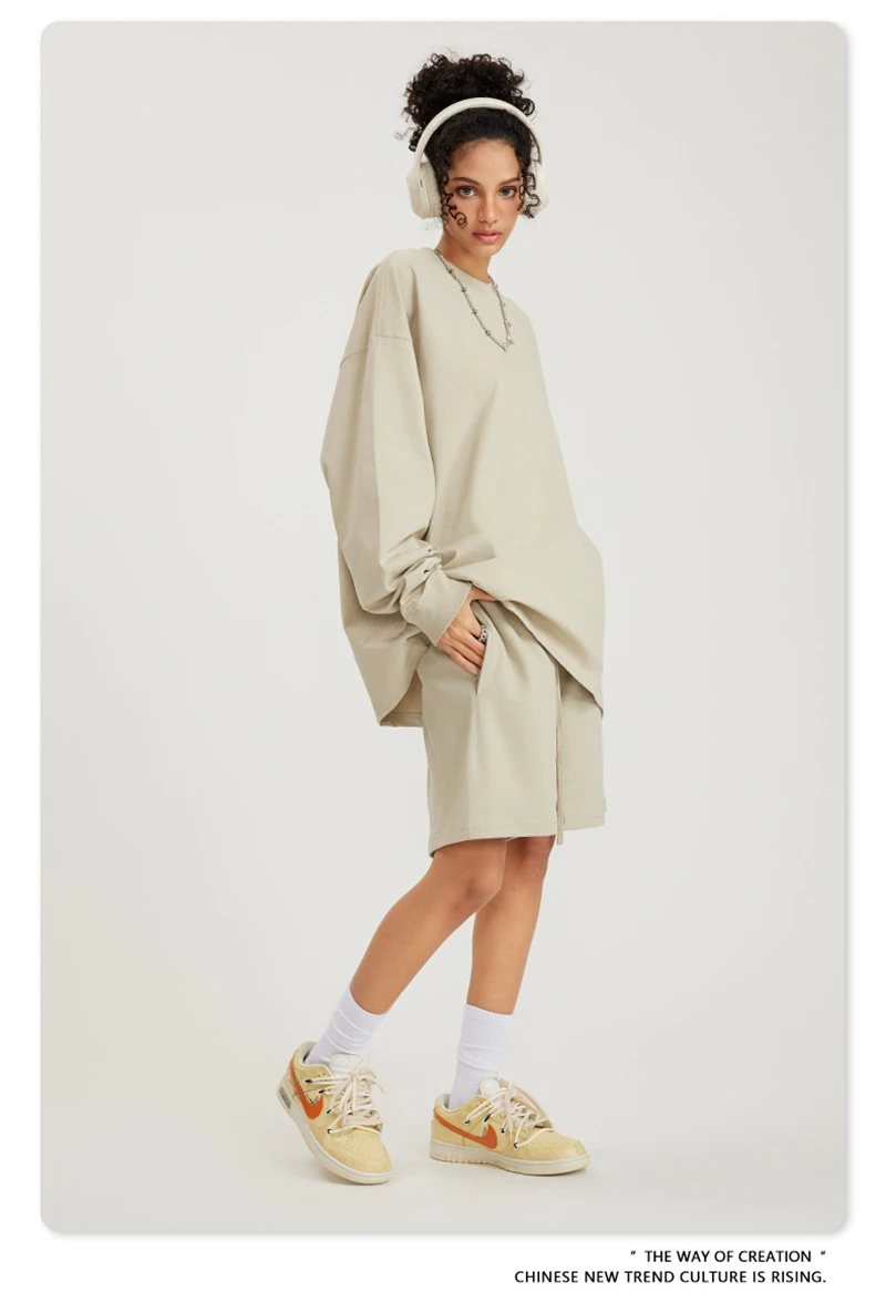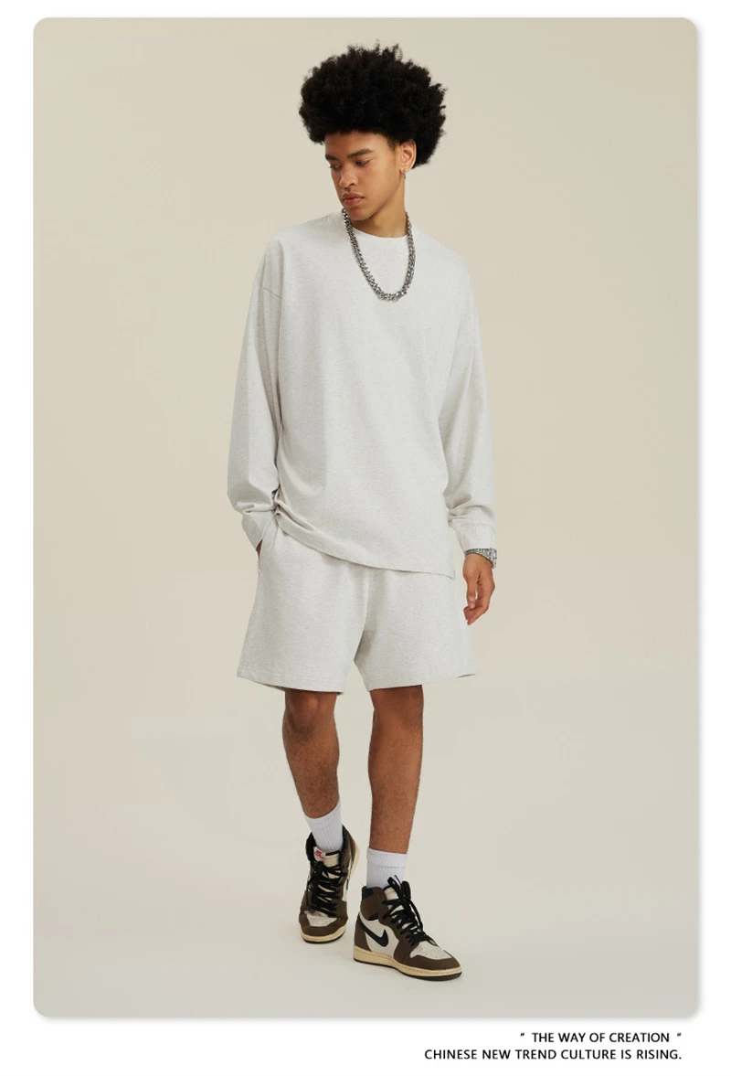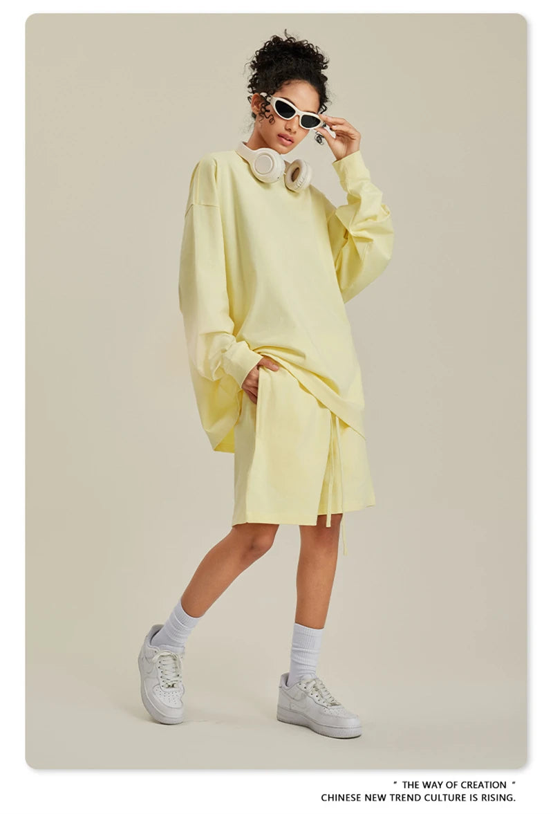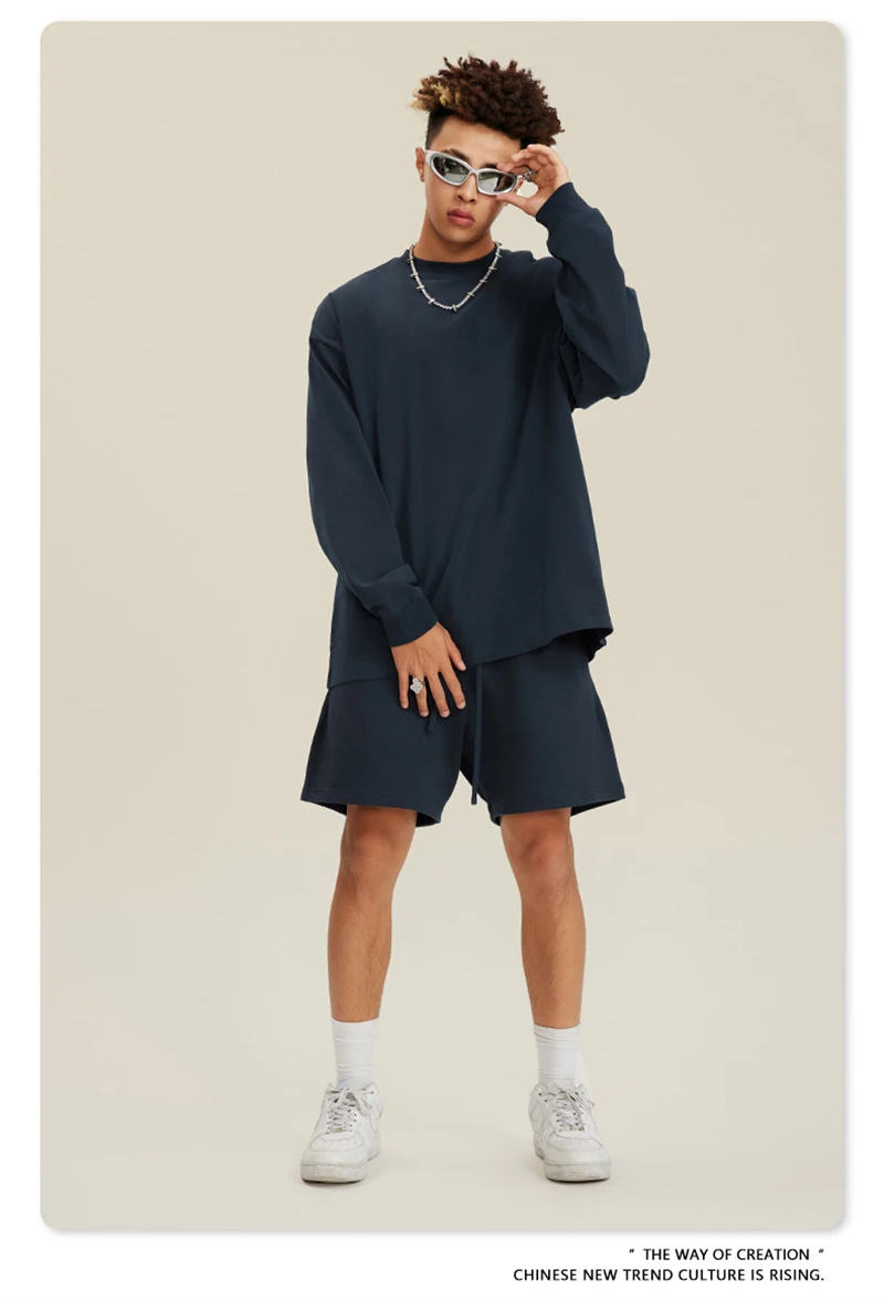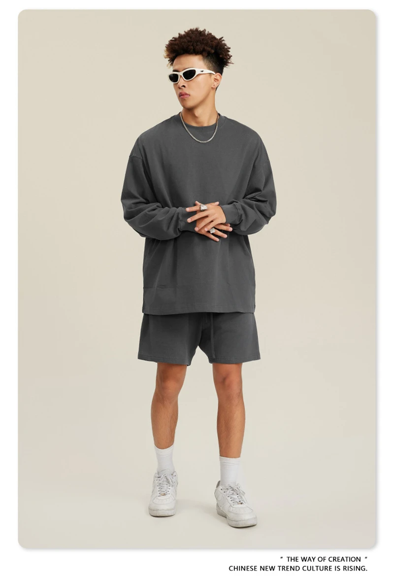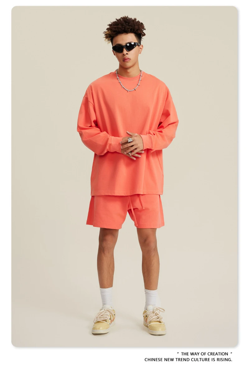 ZODF NEW Autumn Men's Solid Full Sleeve T Shirts Unisex Loose Oversized Casual 305GSM Cotton Basic T-Shirt Brand TEE HY0209