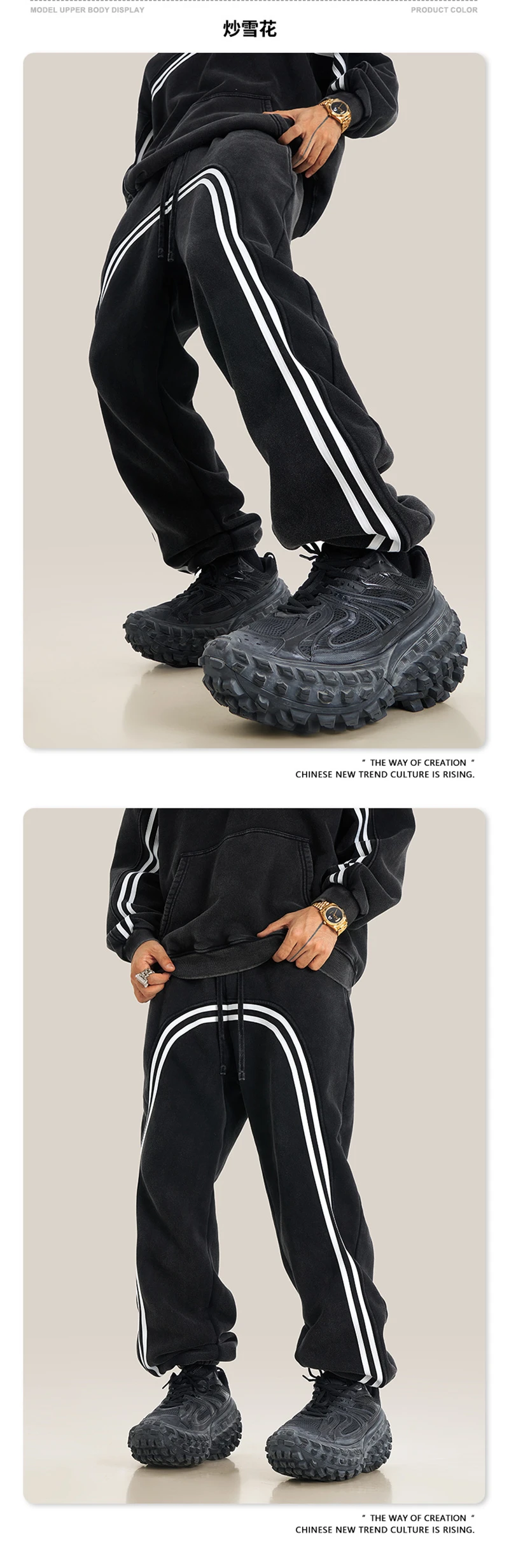 ZODF New Autumn Winter Men Fleece Sweatpants Women Unisex 332gsm Washed Ribbon Warm Joggers Pants Brand Clothes HY0877