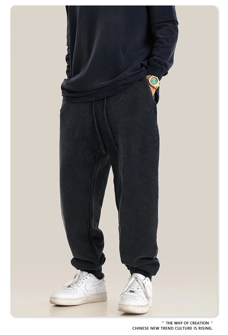 ZODF New Autumn Winter Men Washed 400gsm Sweatpant Unisex Loose Heavyweigh Cotton Sport Joggers Pants Streetwears HY0893