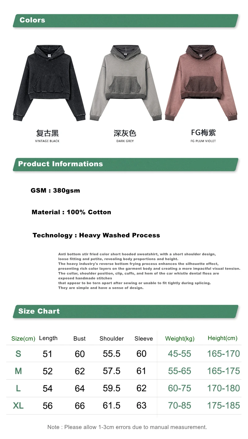 ZODF New Autumn Women Washed Crop Hoodies Female Girls Solid 380gsm Cotton Short Hooded Coats Streetwears HY0942