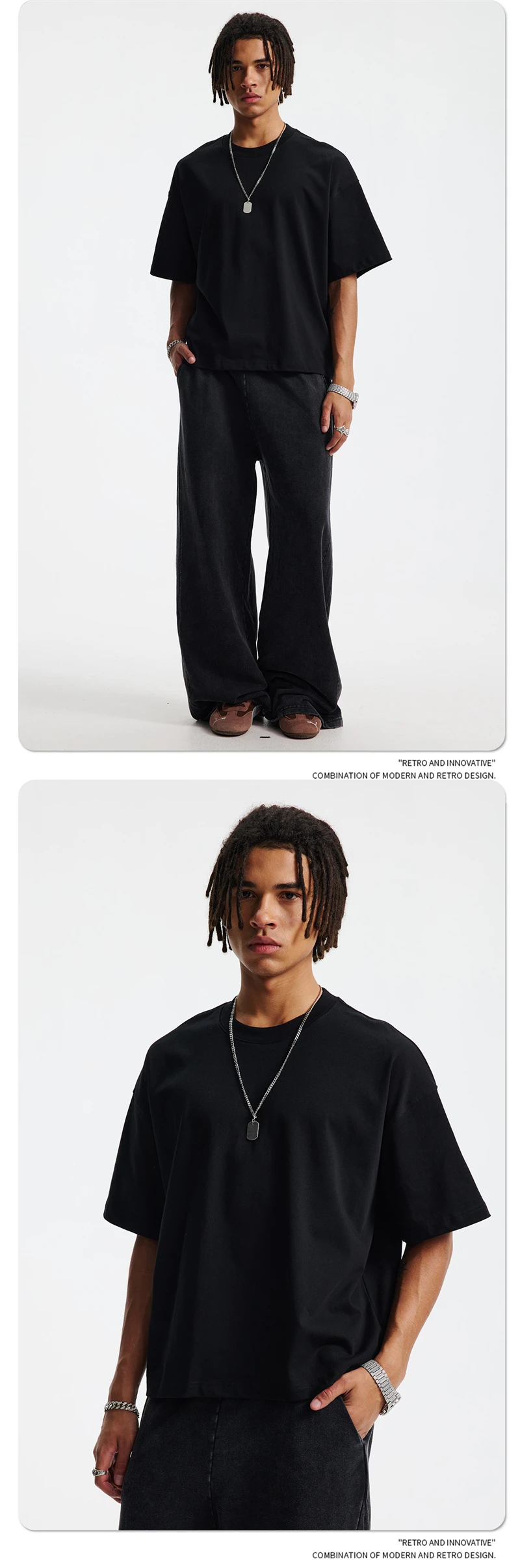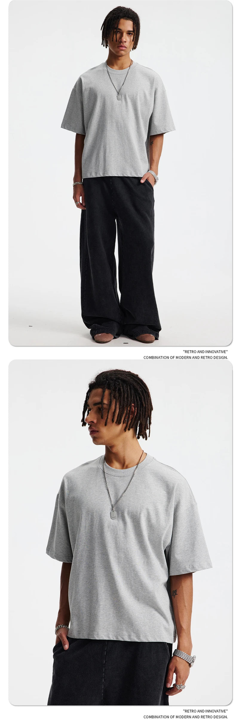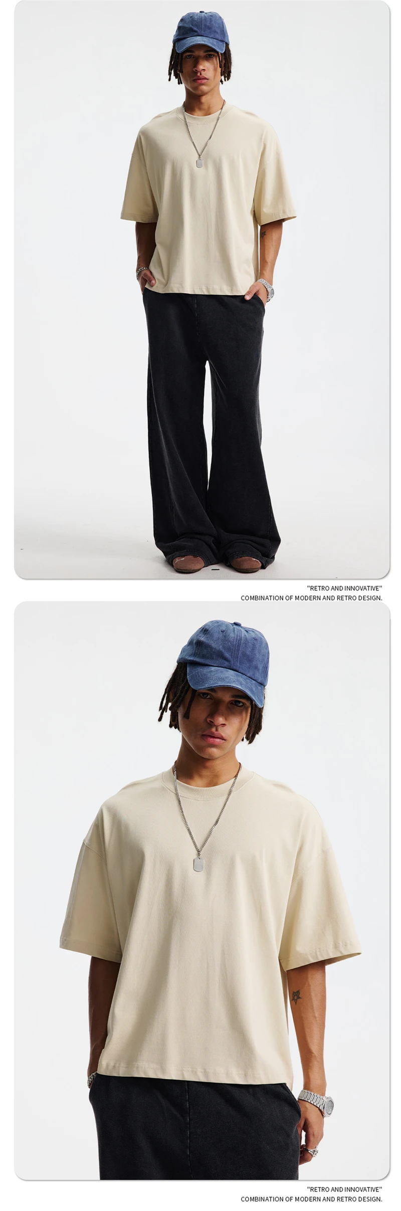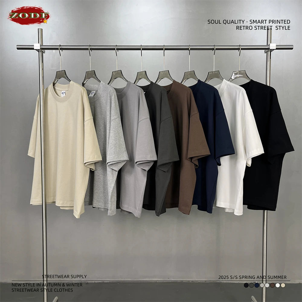ZODF New Men Summer Boxy 275gsm Cotton T-Shirts Retro Unisex Oversized Short Version Basic T Shirt Brand Tees HY1070
