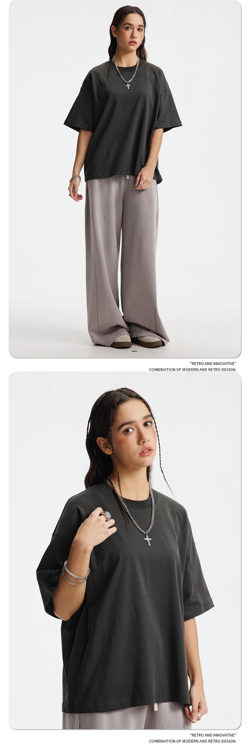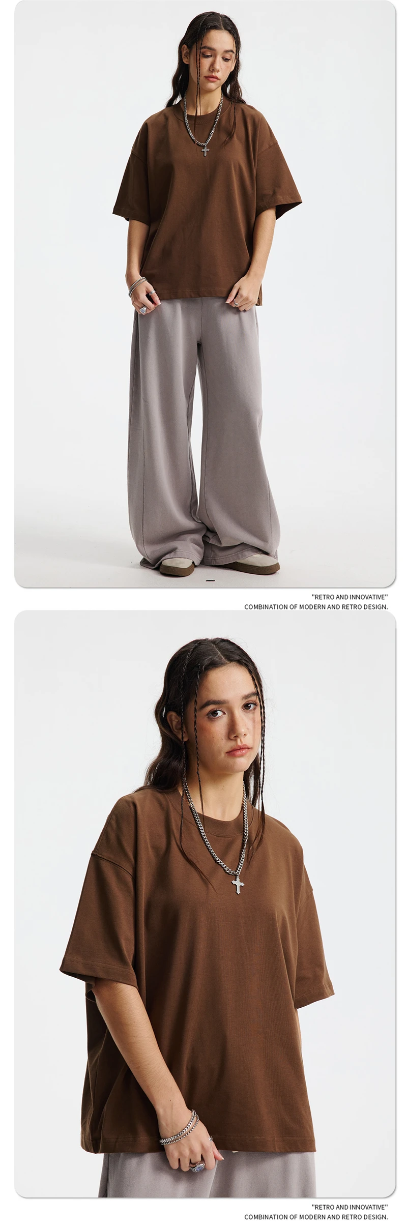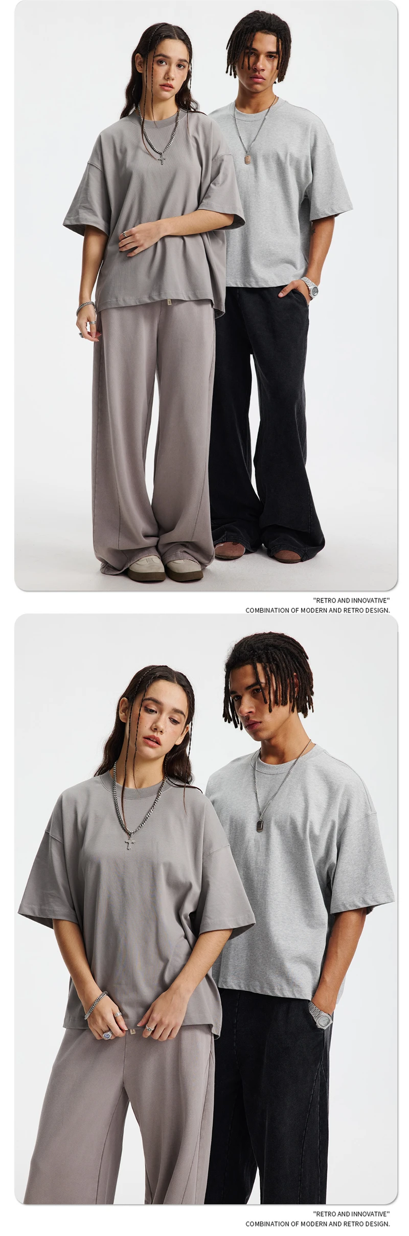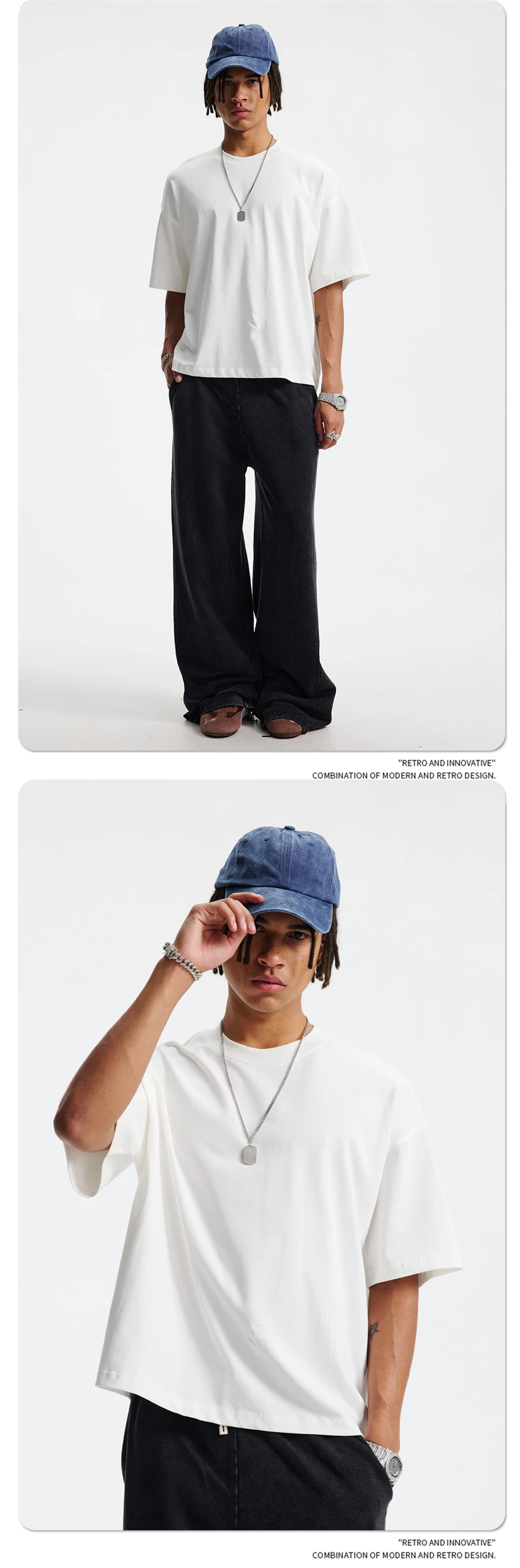 ZODF New Men Summer Boxy 275gsm Cotton T-Shirts Retro Unisex Oversized Short Version Basic T Shirt Brand Tees HY1070