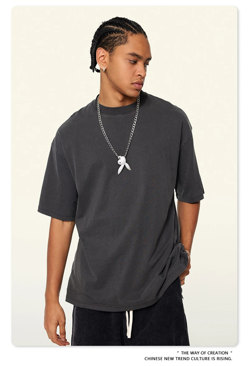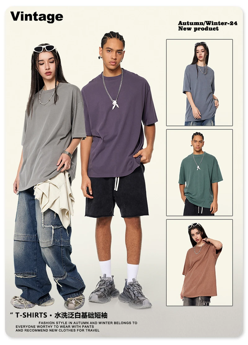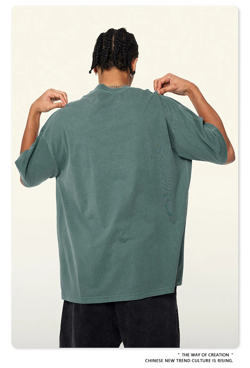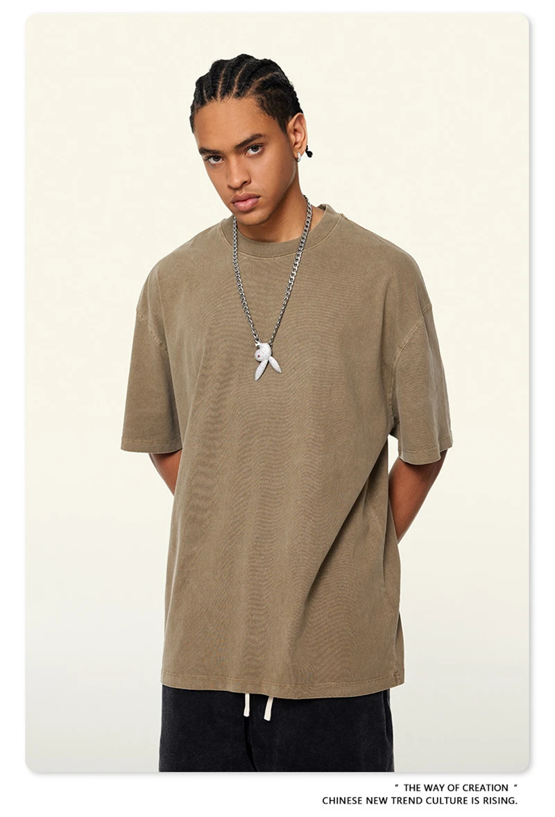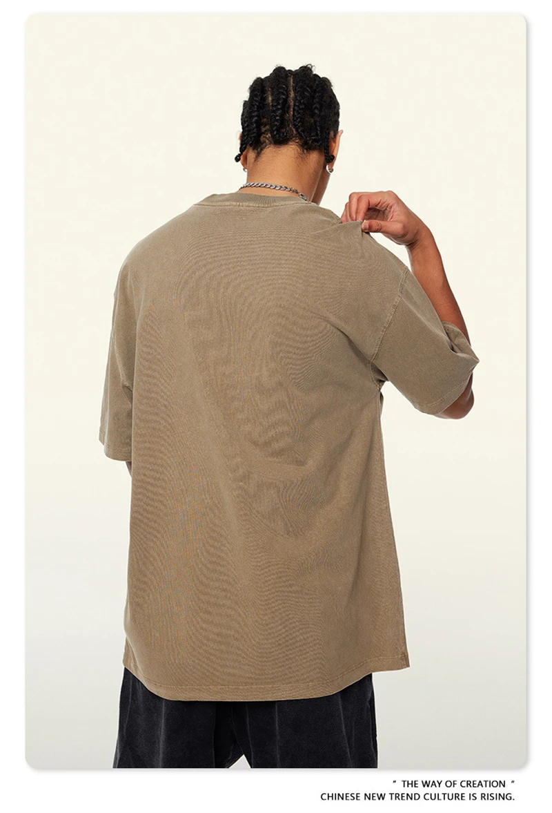 ZODF New Spring Summer 200gsm Washed Cotton T Shirts For Men Unisex Women Retro Casual Basic Solid T-Shirt Brand Tees HY0775