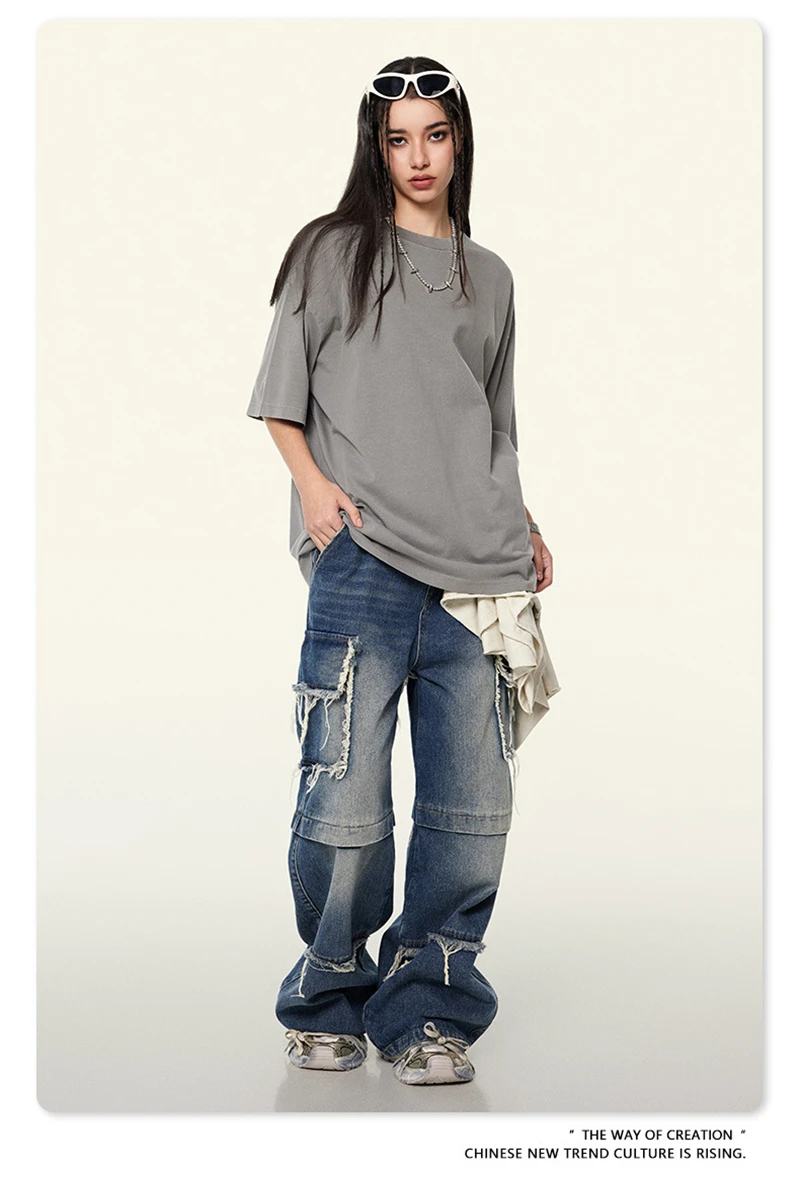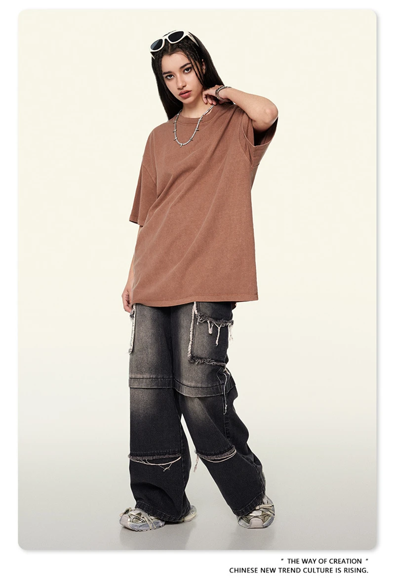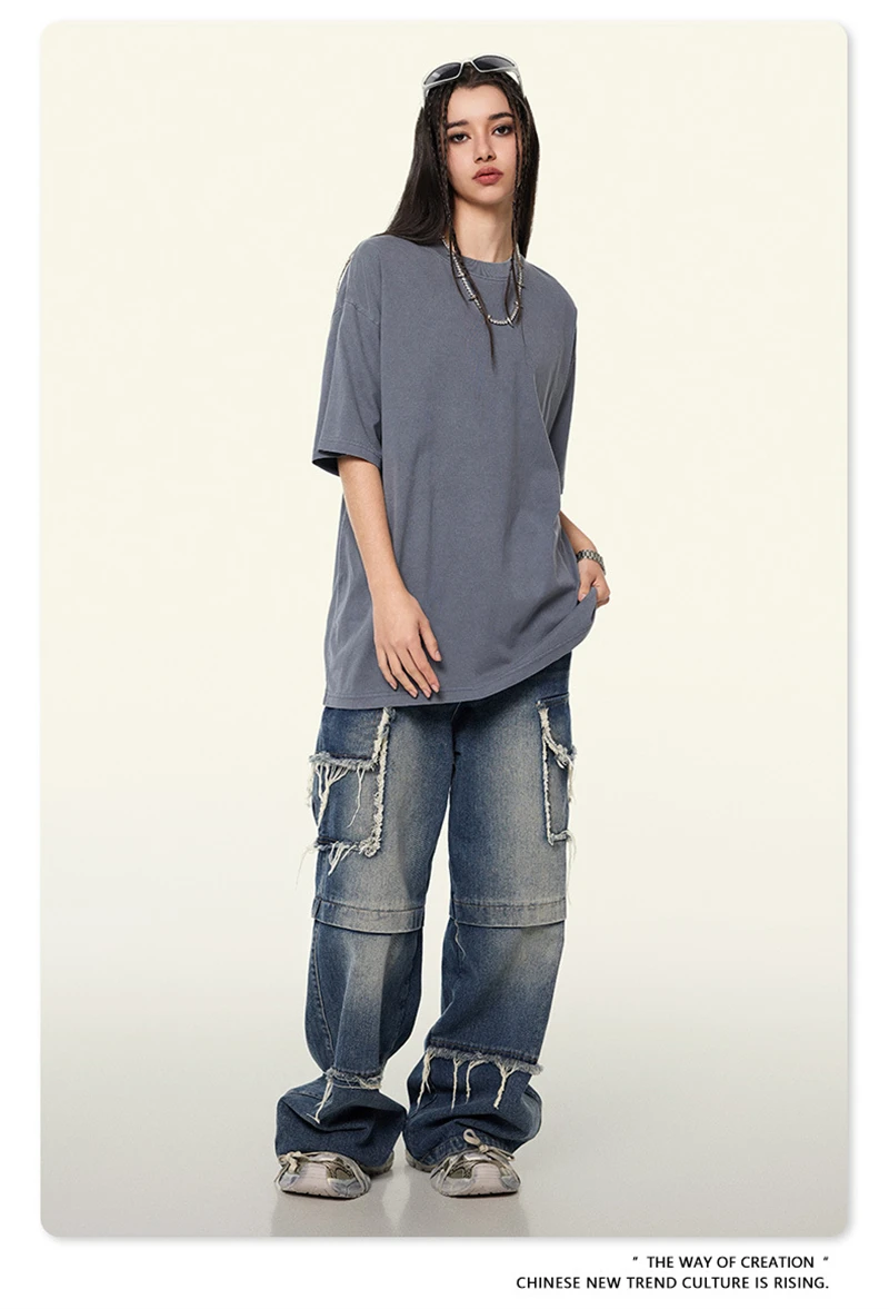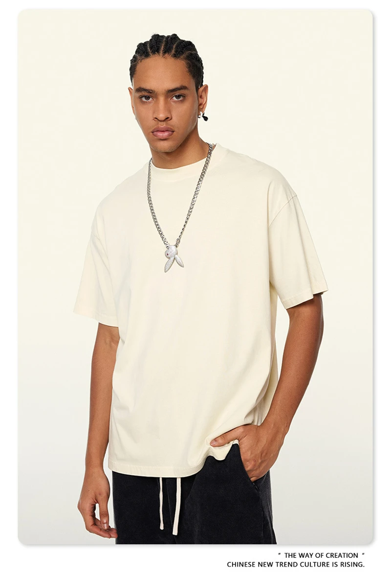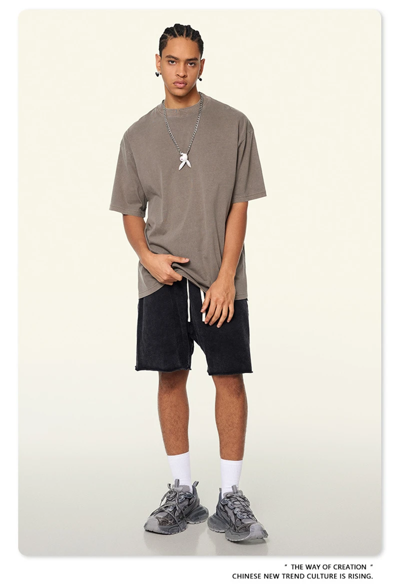 ZODF New Spring Summer 200gsm Washed Cotton T Shirts For Men Unisex Women Retro Casual Basic Solid T-Shirt Brand Tees HY0775