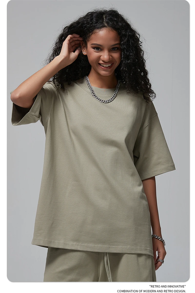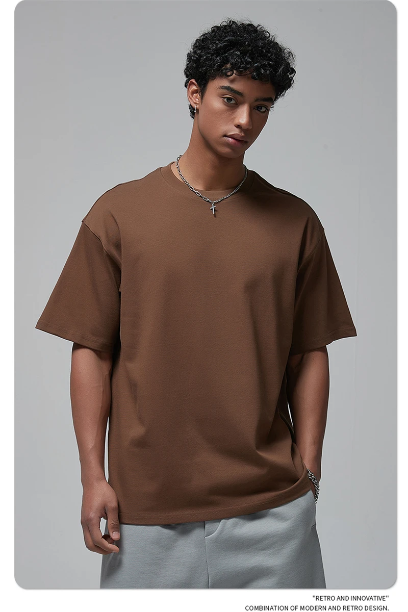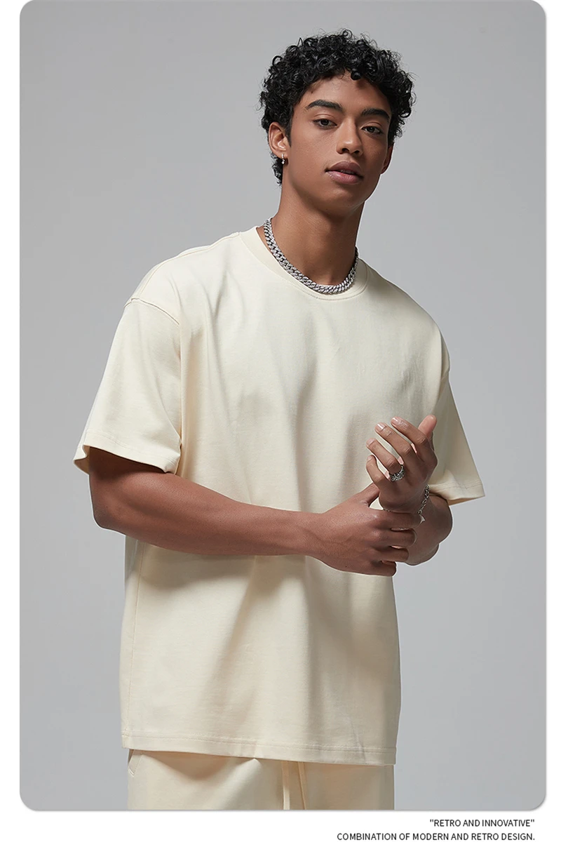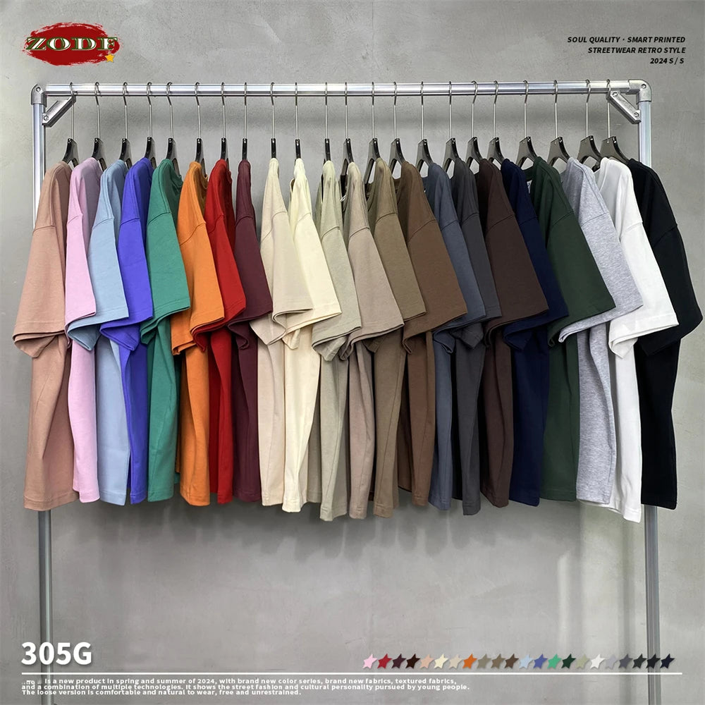 ZODF New Spring Summer Men 305gsm Cotton T Shirts Unisex Heavy Weight Oversized FG Noshrink Basic Solid T-Shirt Tees HY0165