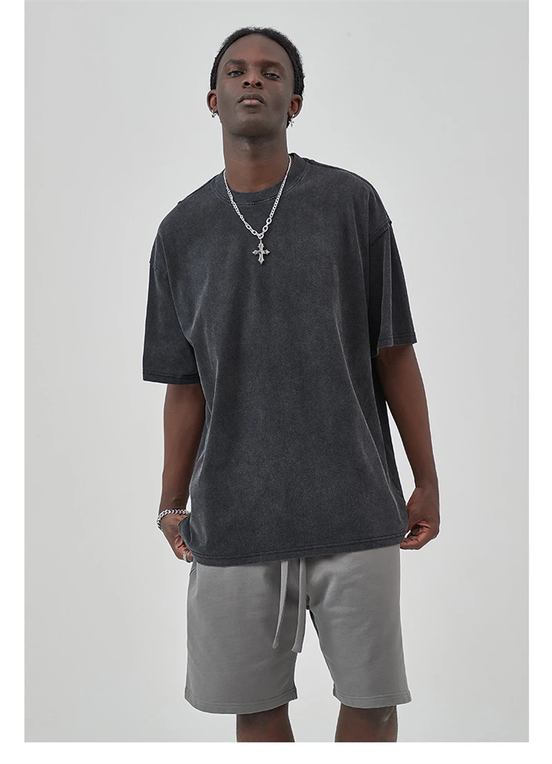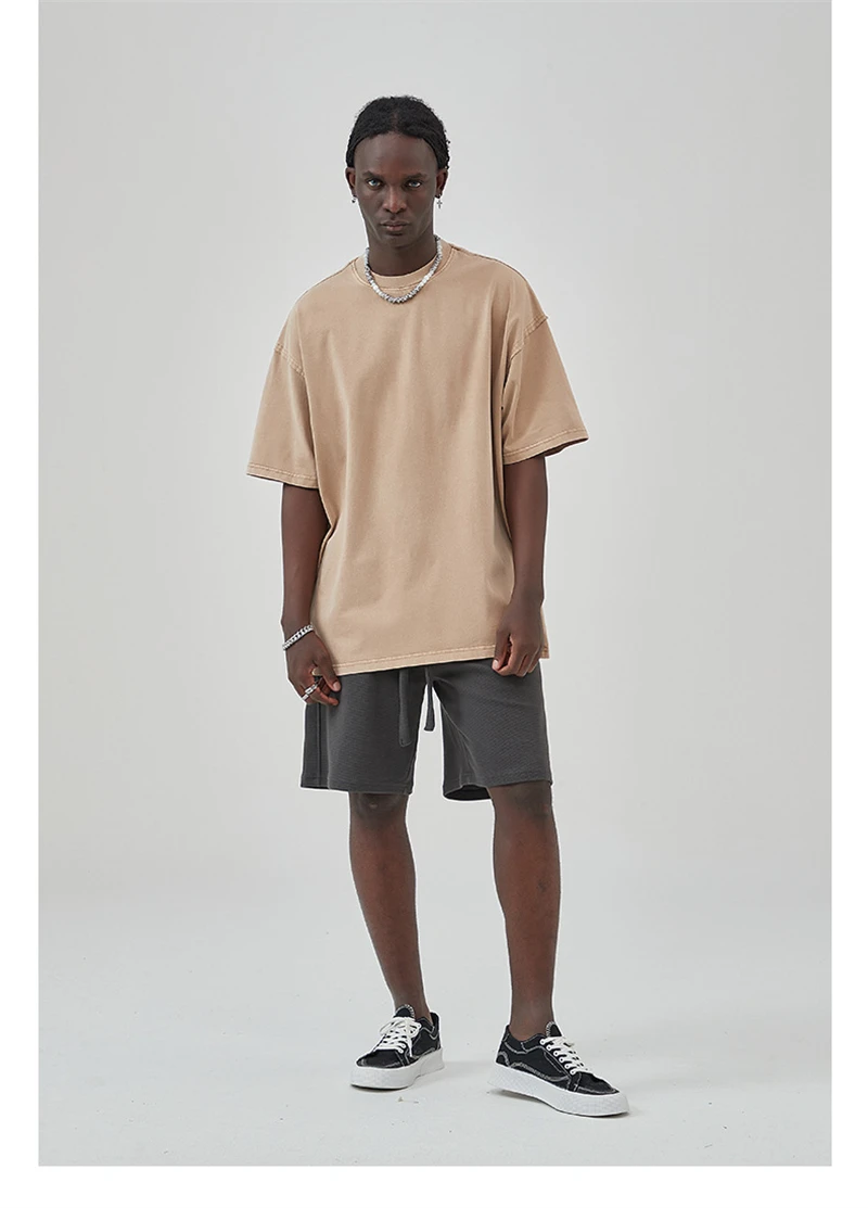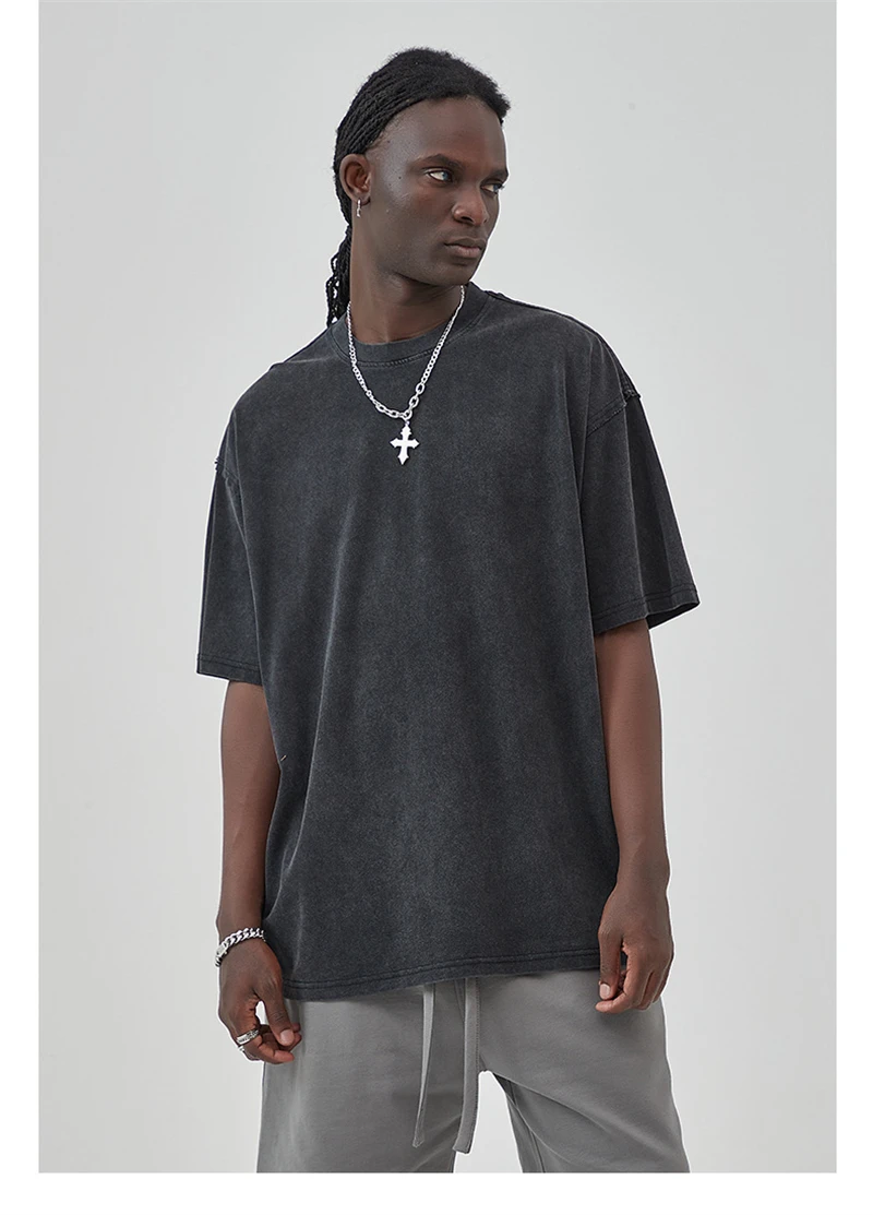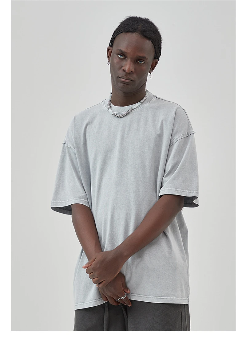 ZODF New Spring Summer Washed Cotton Solid T Shirts For Men Unisex High Street Loose Edge Oversized Noshrink T-Shirt Tee HY0465