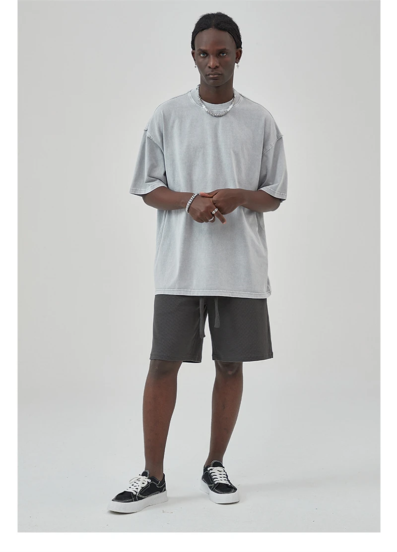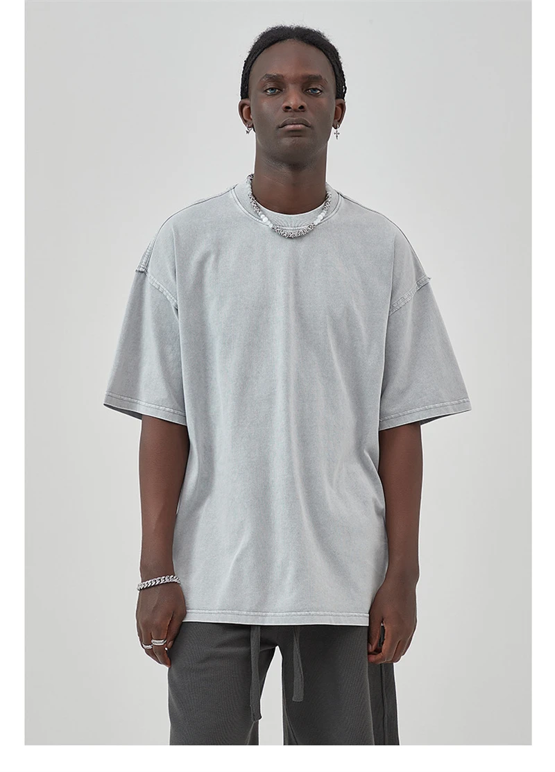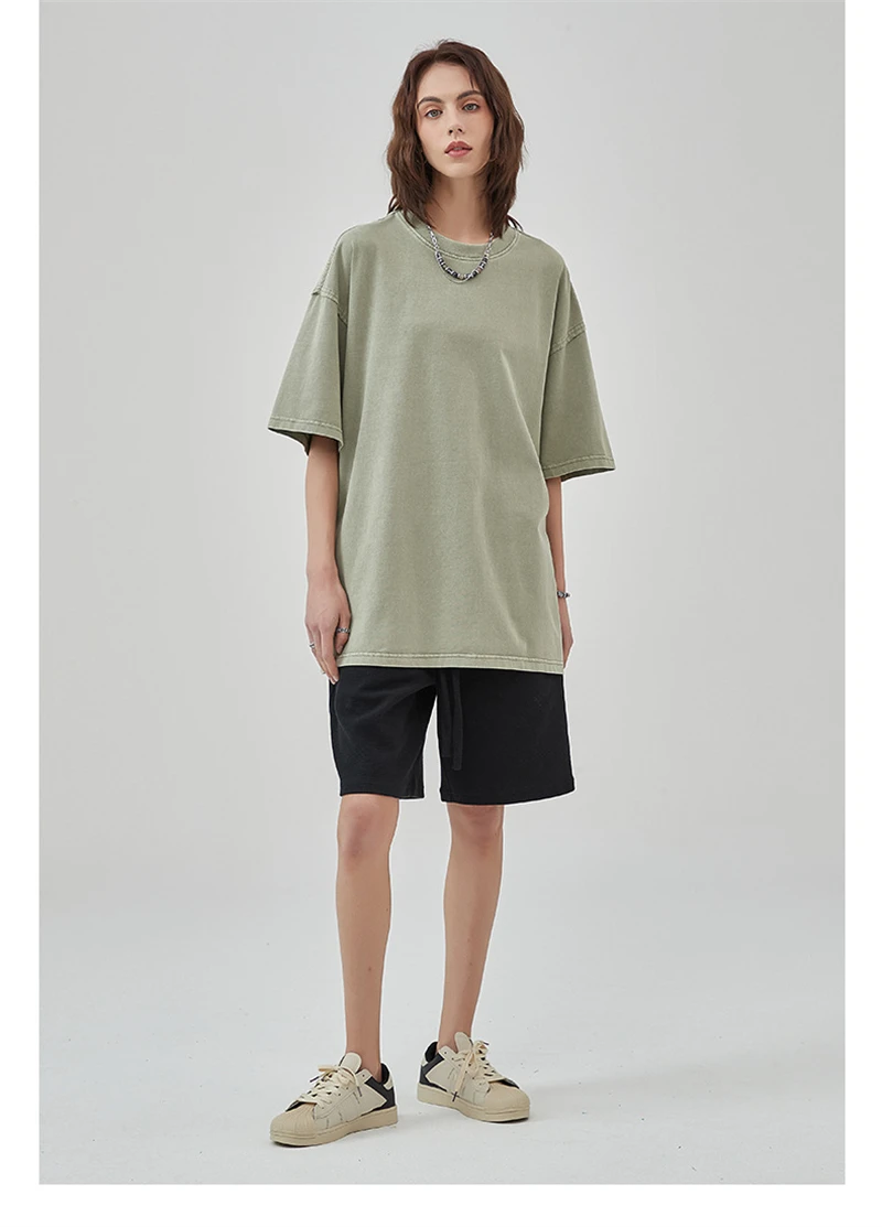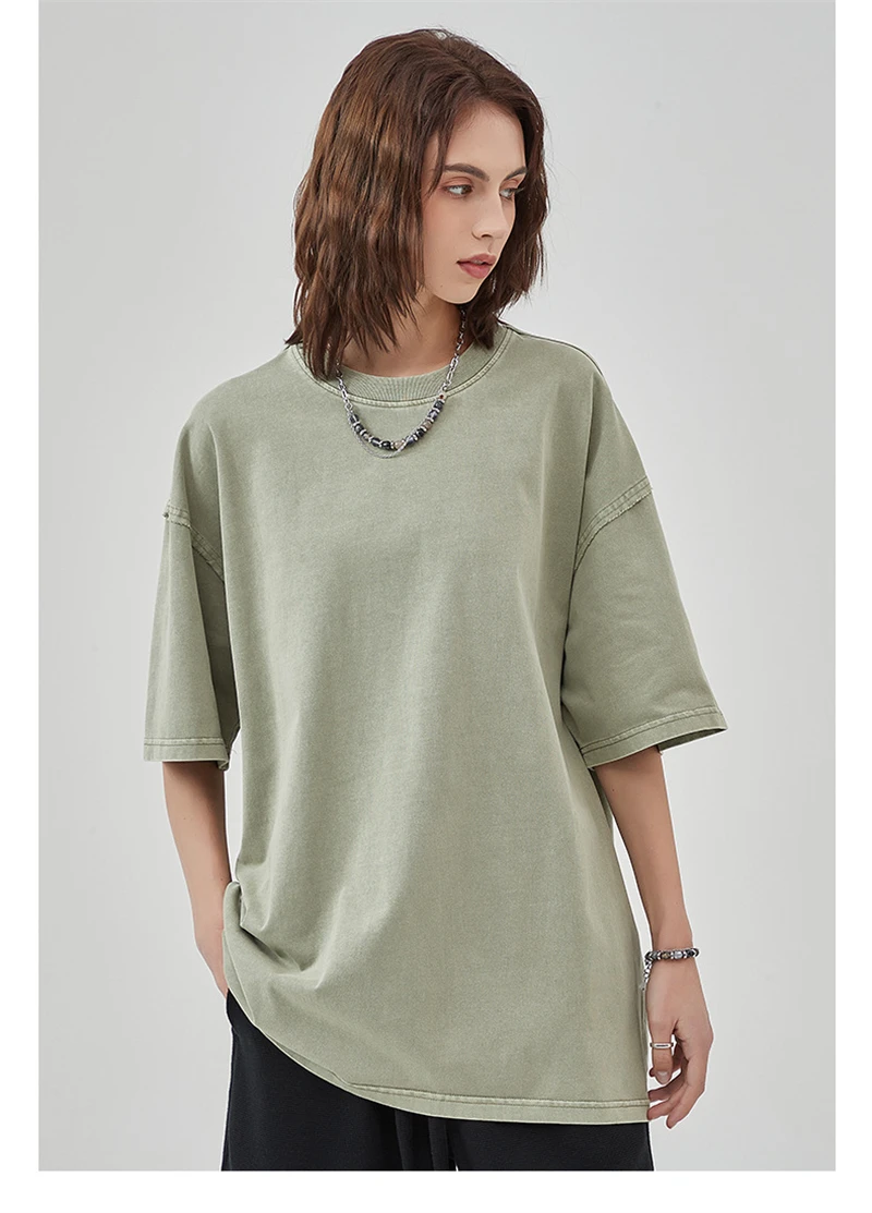 ZODF New Spring Summer Washed Cotton Solid T Shirts For Men Unisex High Street Loose Edge Oversized Noshrink T-Shirt Tee HY0465