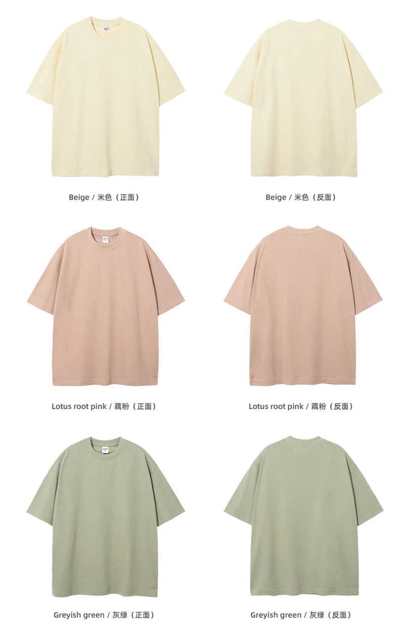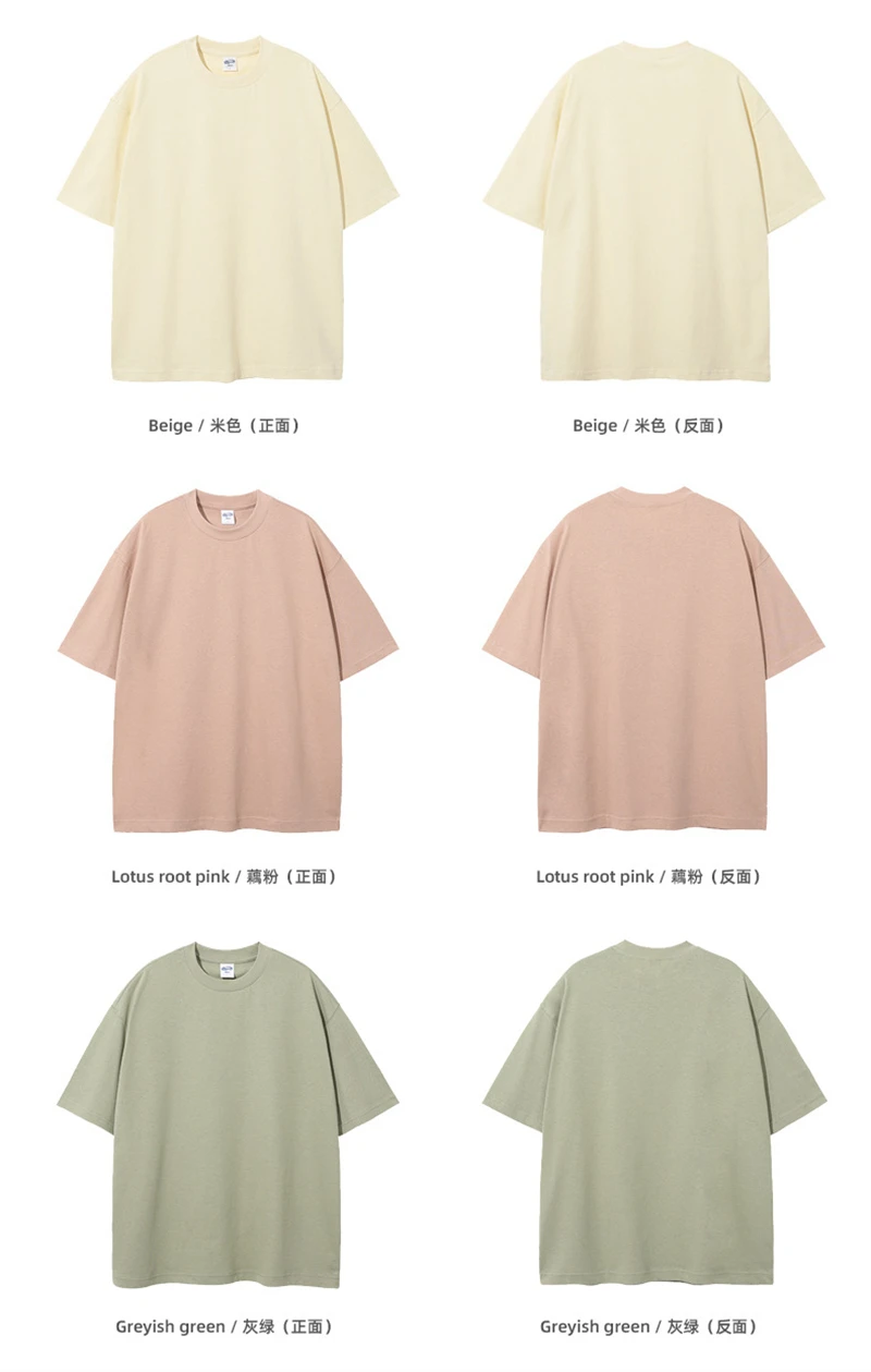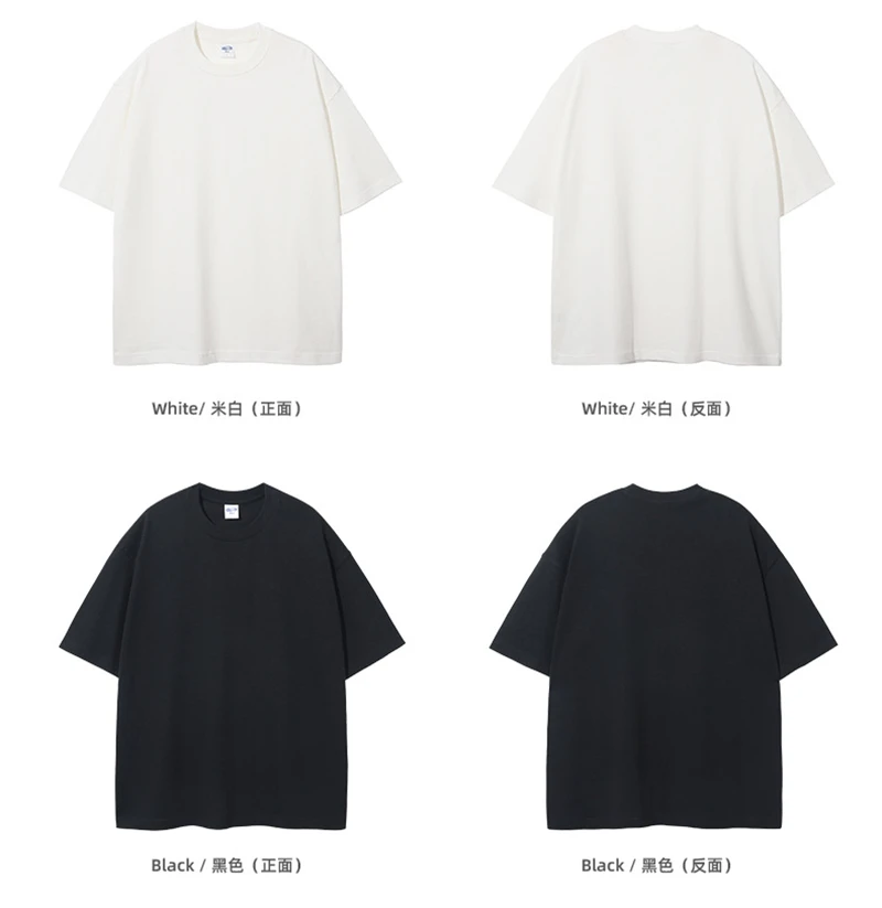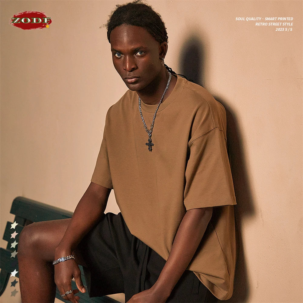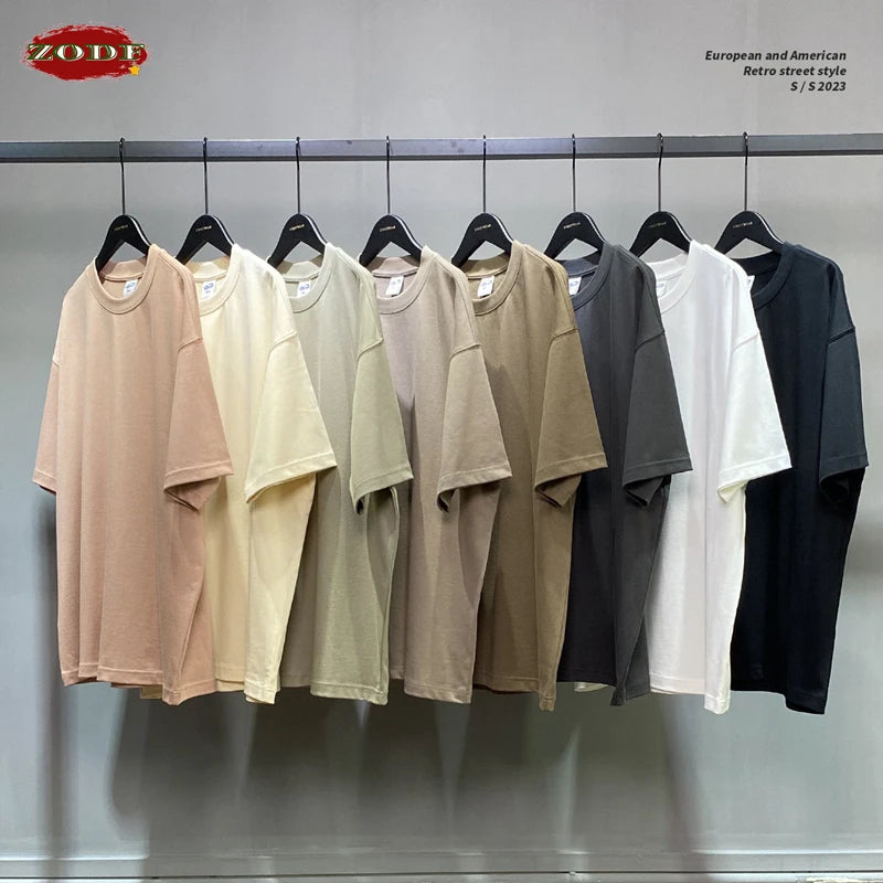 ZODF New Summer Men 100% Cotton Solid T Shirts Unisex High Street Heavy Weight 305gsm Oversized FG Noshrink T-Shirt Tops HY0165