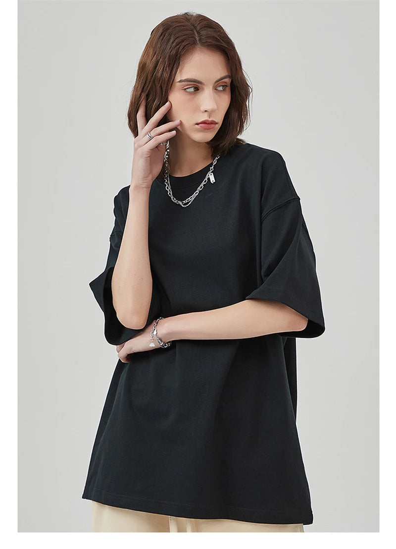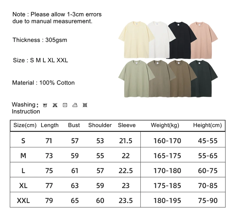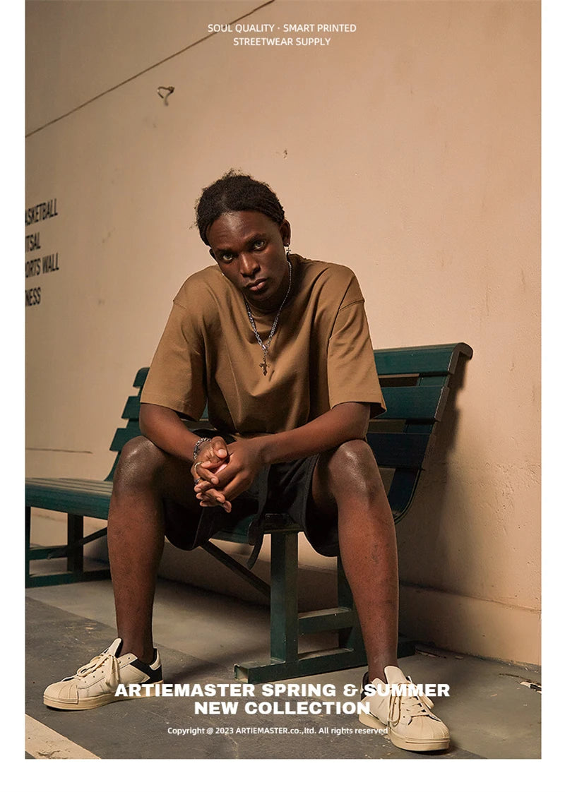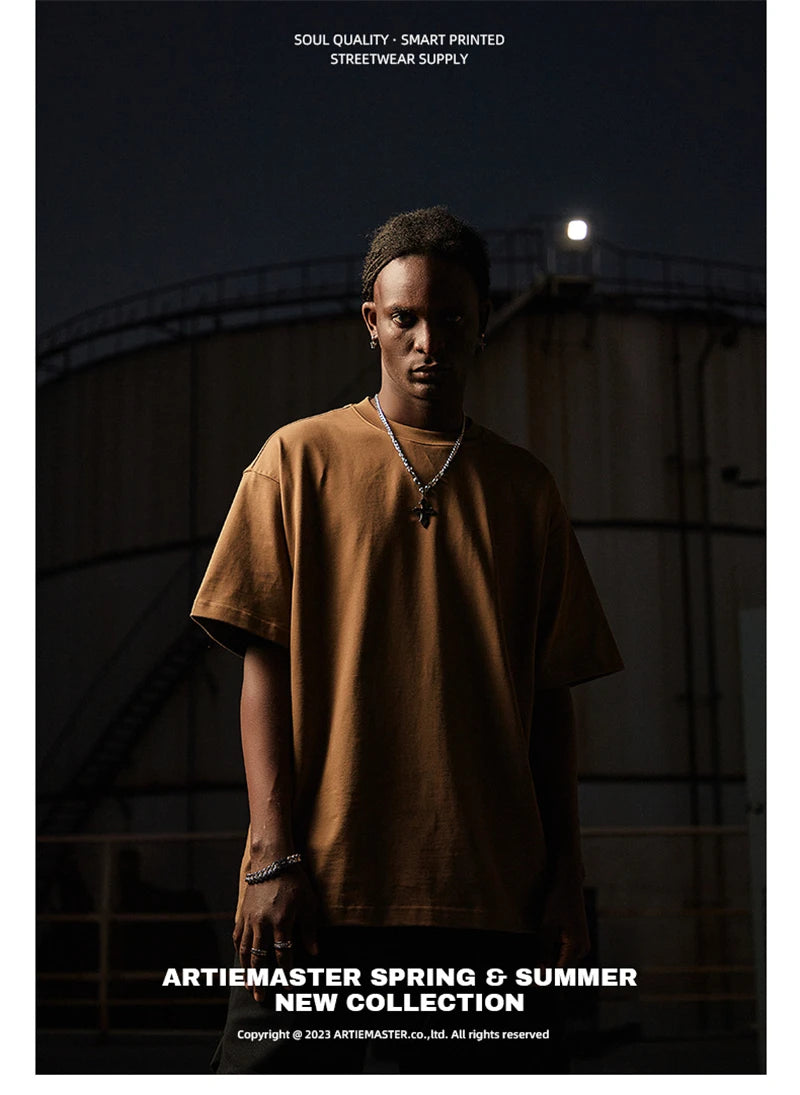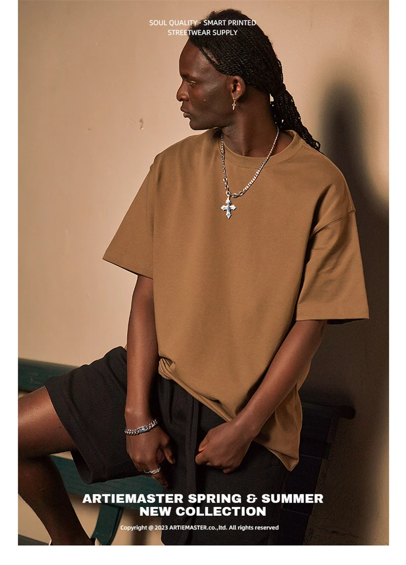 ZODF New Summer Men 100% Cotton Solid T Shirts Unisex High Street Heavy Weight 305gsm Oversized FG Noshrink T-Shirt Tops HY0165