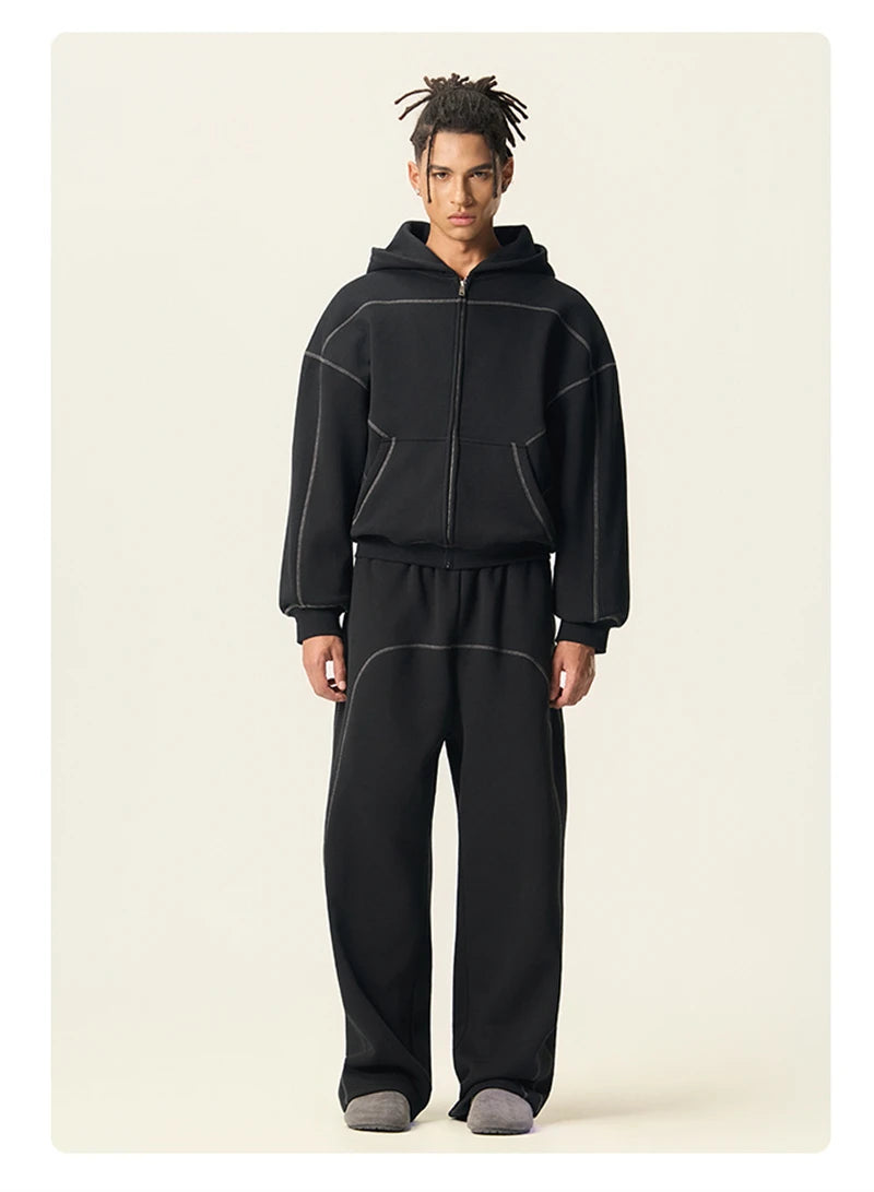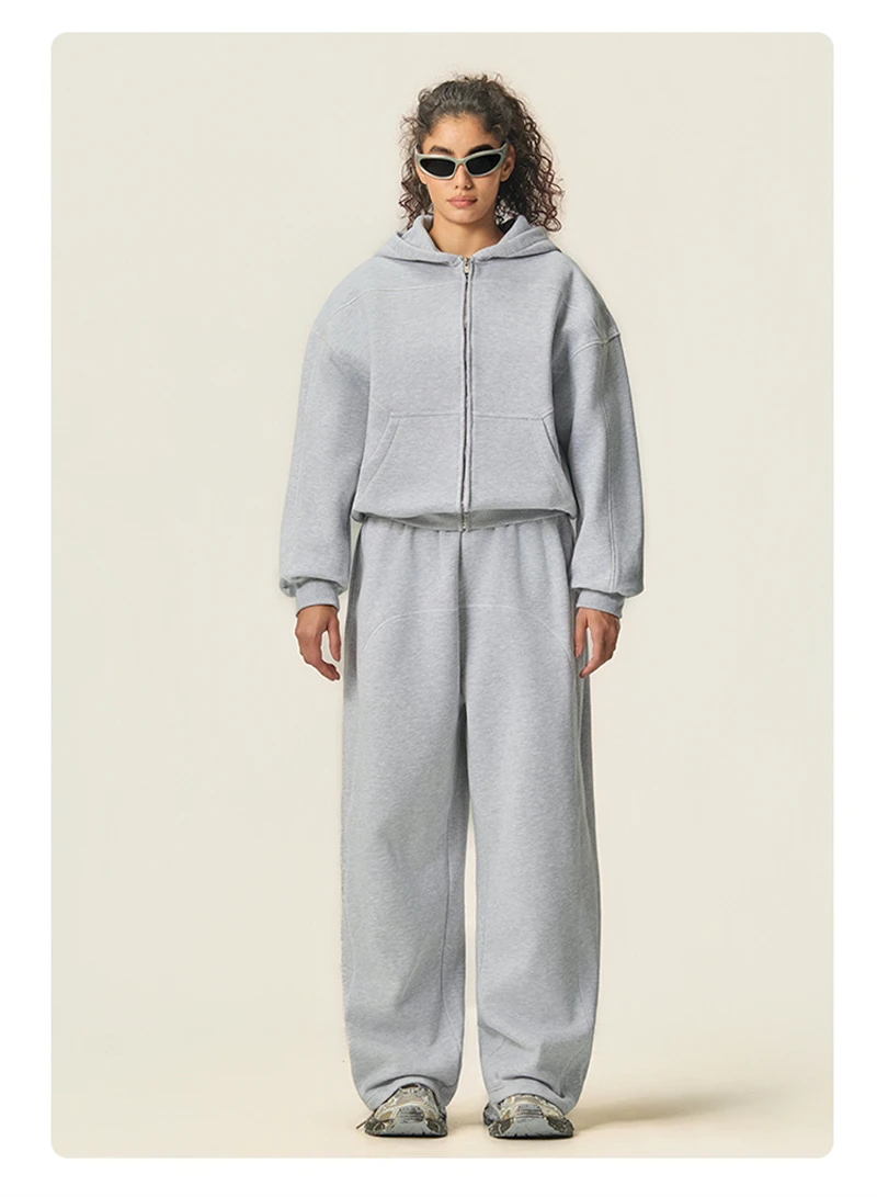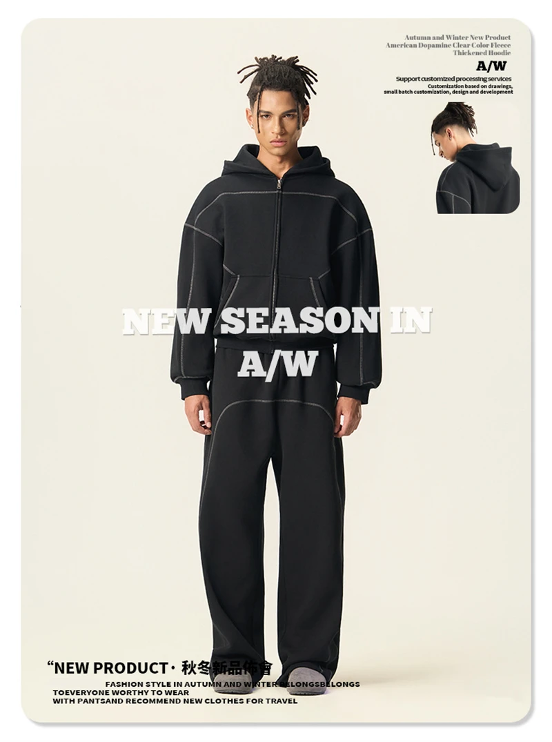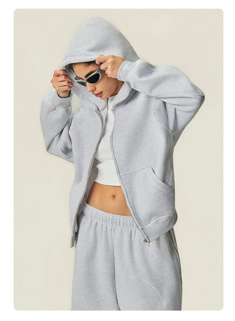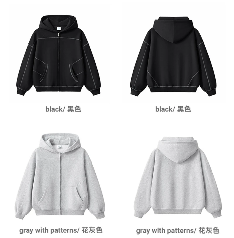 ZODF New Winter 350gsm Man Fleece Boxy Fit Zipper Hoodie Unisex Hip Hop Solid Warm Hooded Coat Brand Jackets HY0034