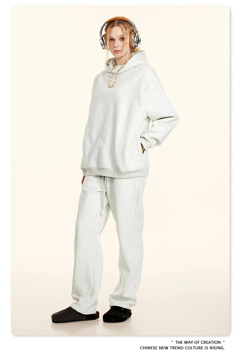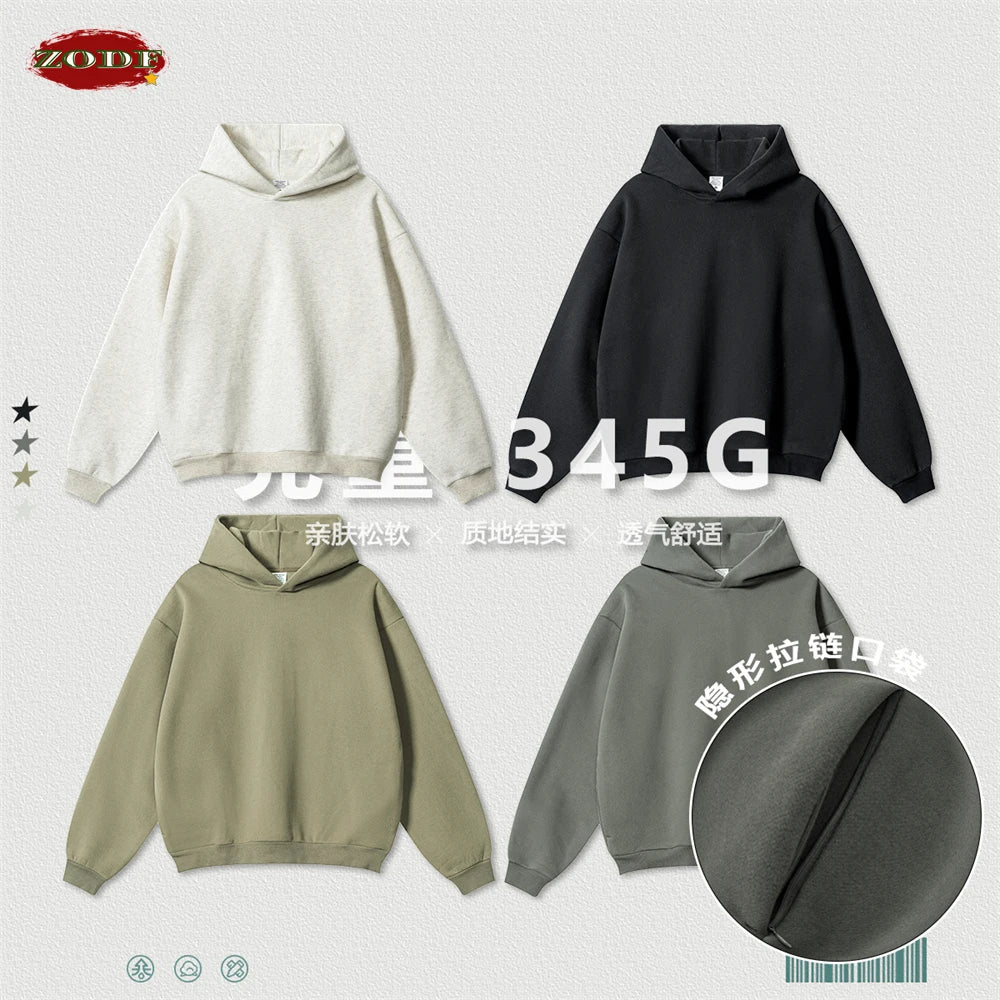 ZODF New Winter Men Solid Fleece Hoodies Unisex Women 345gsm Loose Warm Side Zipper Pocket Hooded Pullovers Brand Clothes HY0867