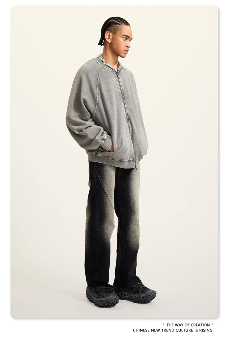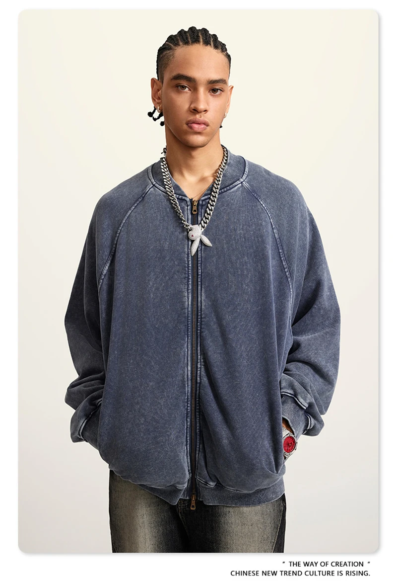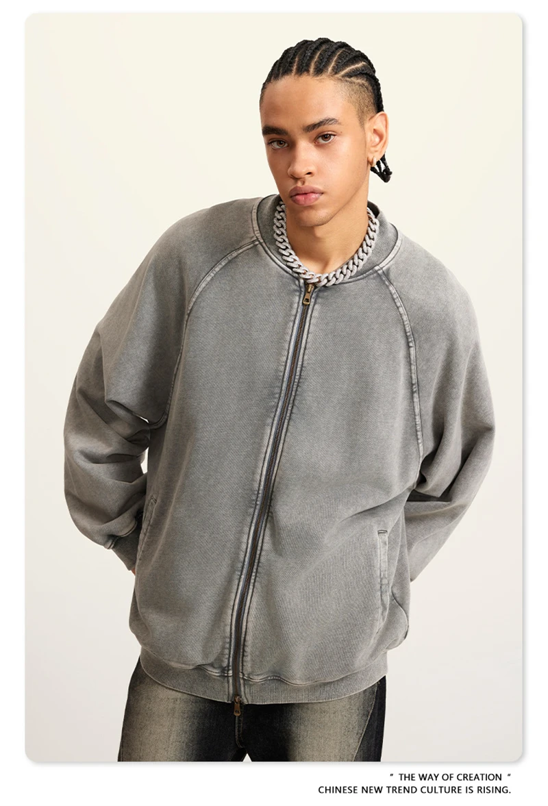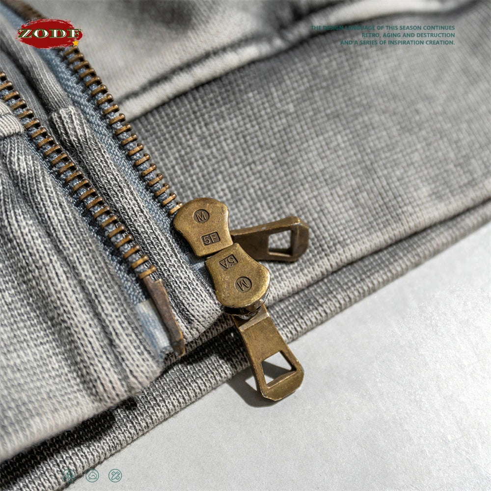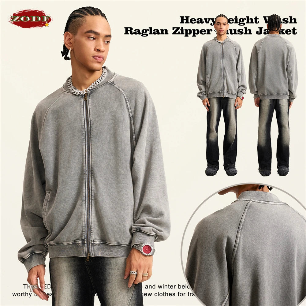 ZODF New Winter Washed Double Zipper Jackets For Men Unisex Loose Heavy Weight 450gsm Raglan Sleeve Cotton Coats HY0654