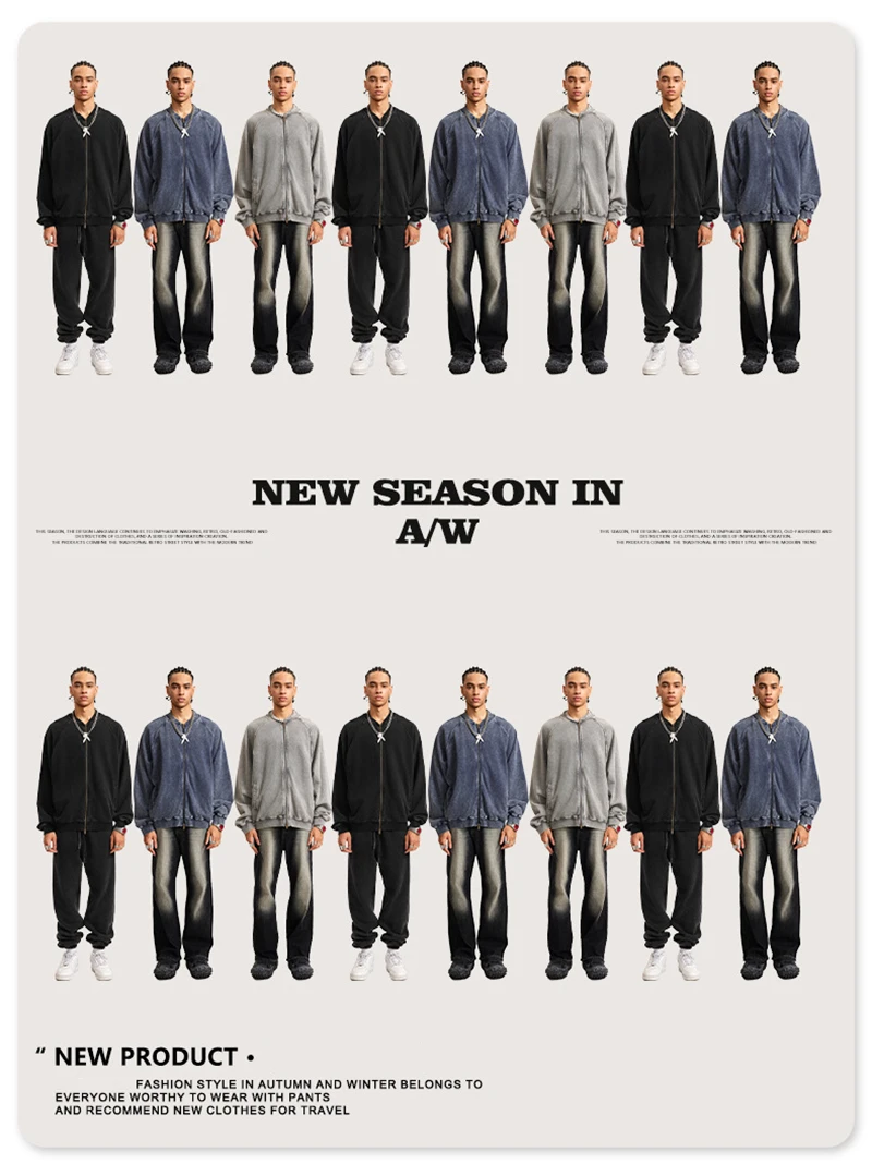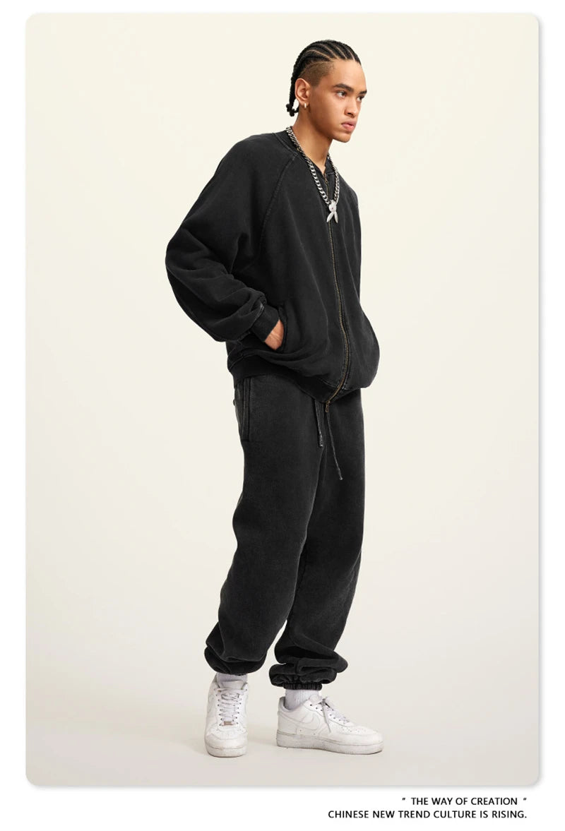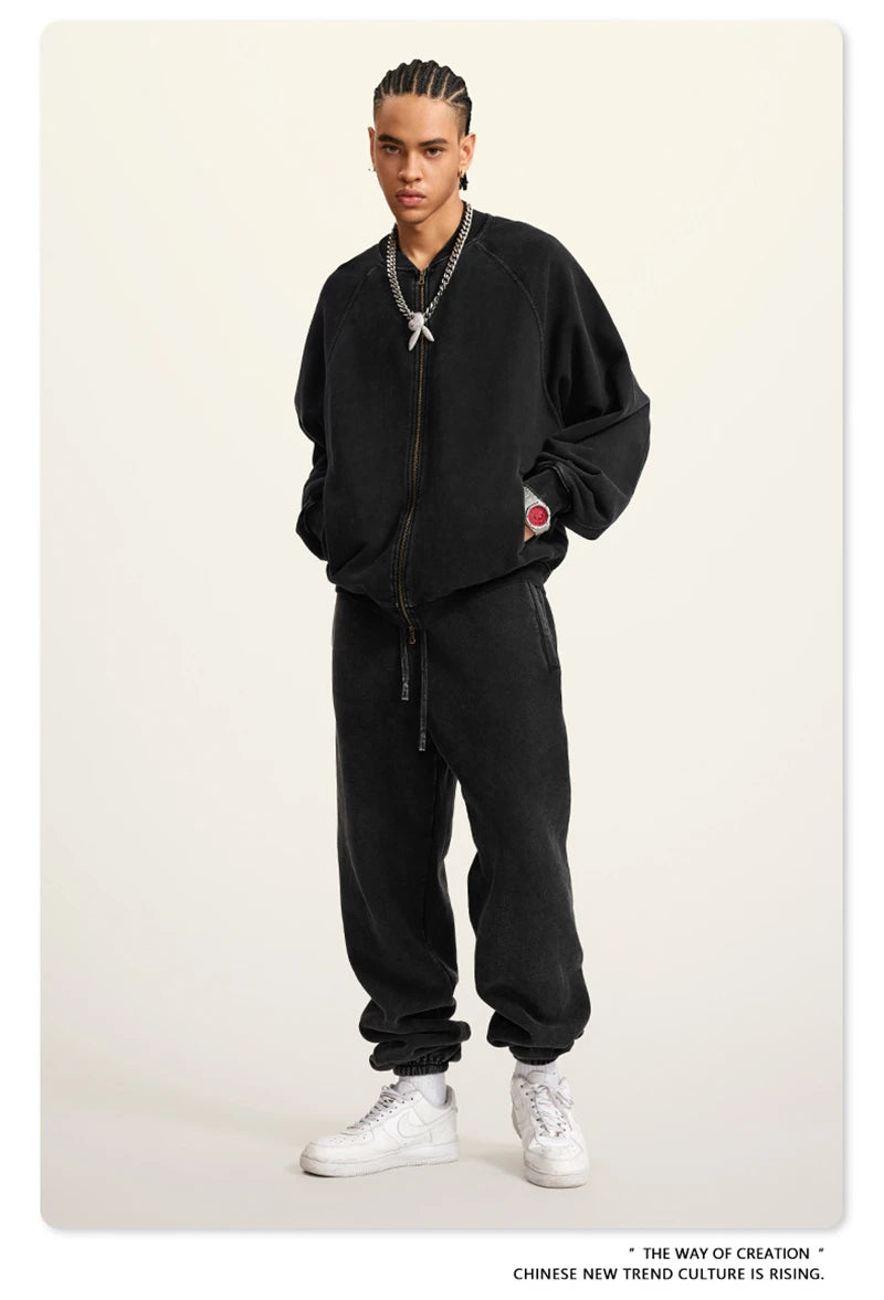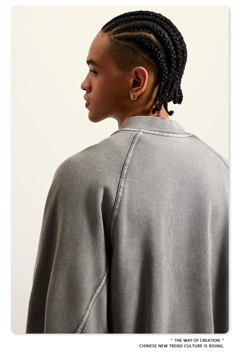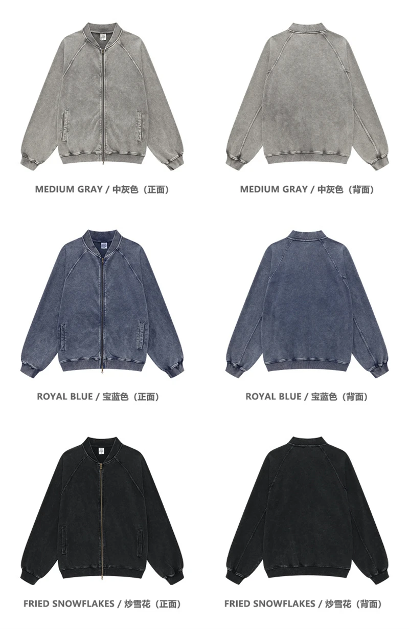 ZODF New Winter Washed Double Zipper Jackets For Men Unisex Loose Heavy Weight 450gsm Raglan Sleeve Cotton Coats HY0654