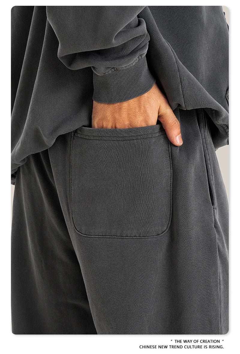 ZODF Retro Men Autumn Washed 380gsm Cotton Unisex High Street Oversized Solid Sport Straight Pants HY0885