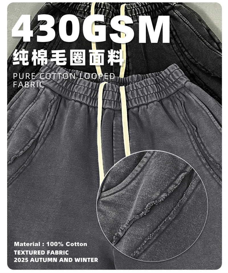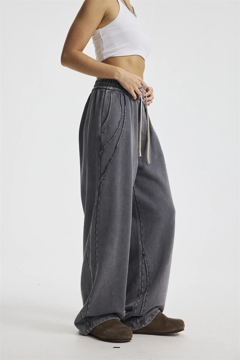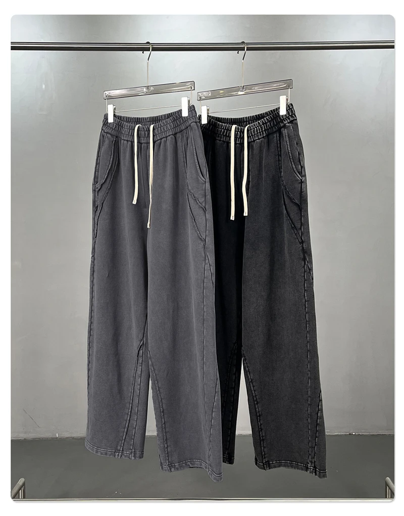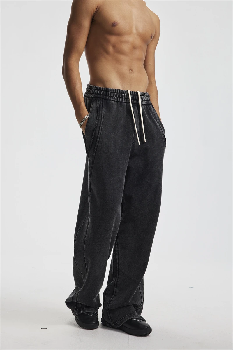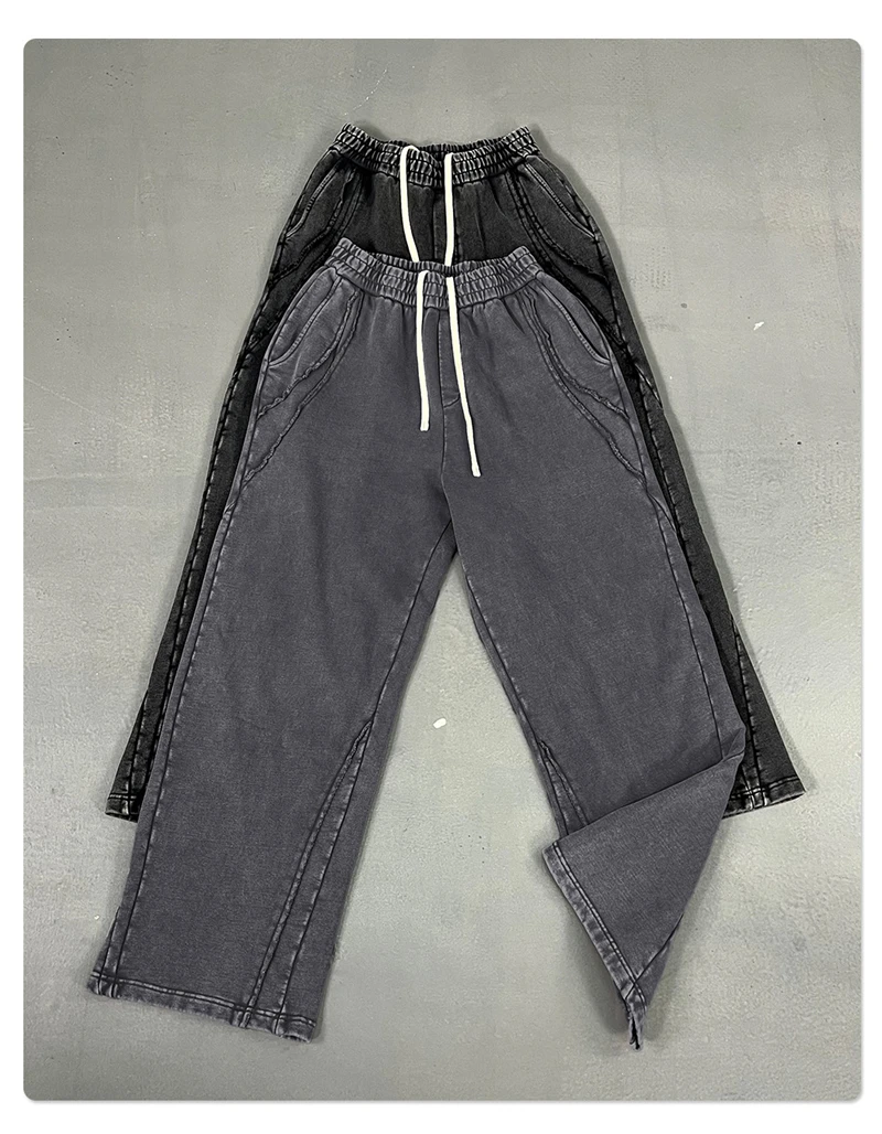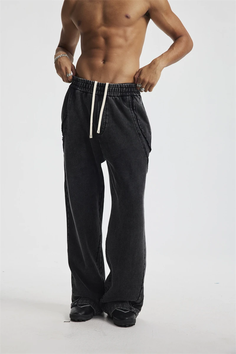 ZODF Retro 2025 Autumn Man Washed Cotton Straight Pants Unisex 430gsm Distressed Patchwork Oversized Trousers Sweatpants HY1168