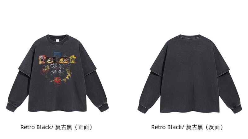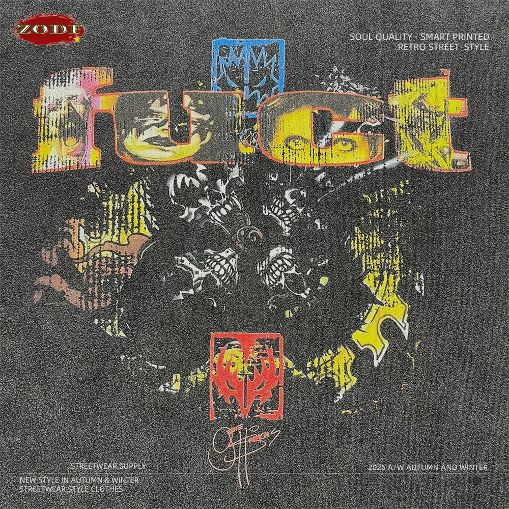 ZODF Retro 2025 Autumn Men 345gsm Washed Full Sleeve T-Shirts Unisex Heavy Weight Punk Style Printing Cotton T Shirt HY0012