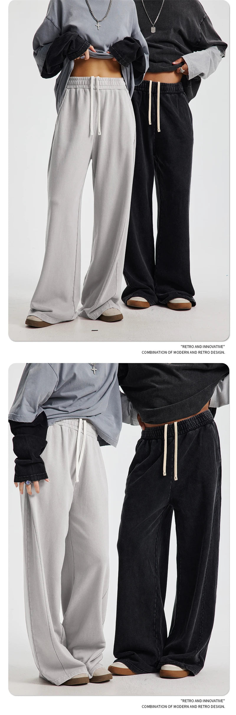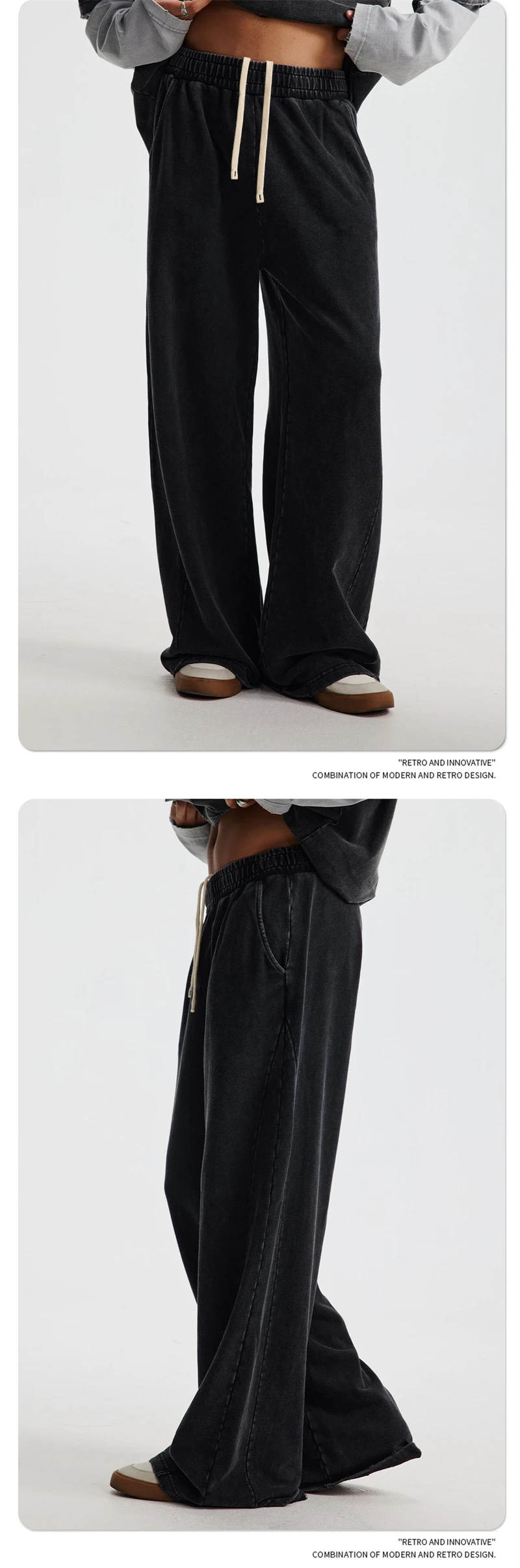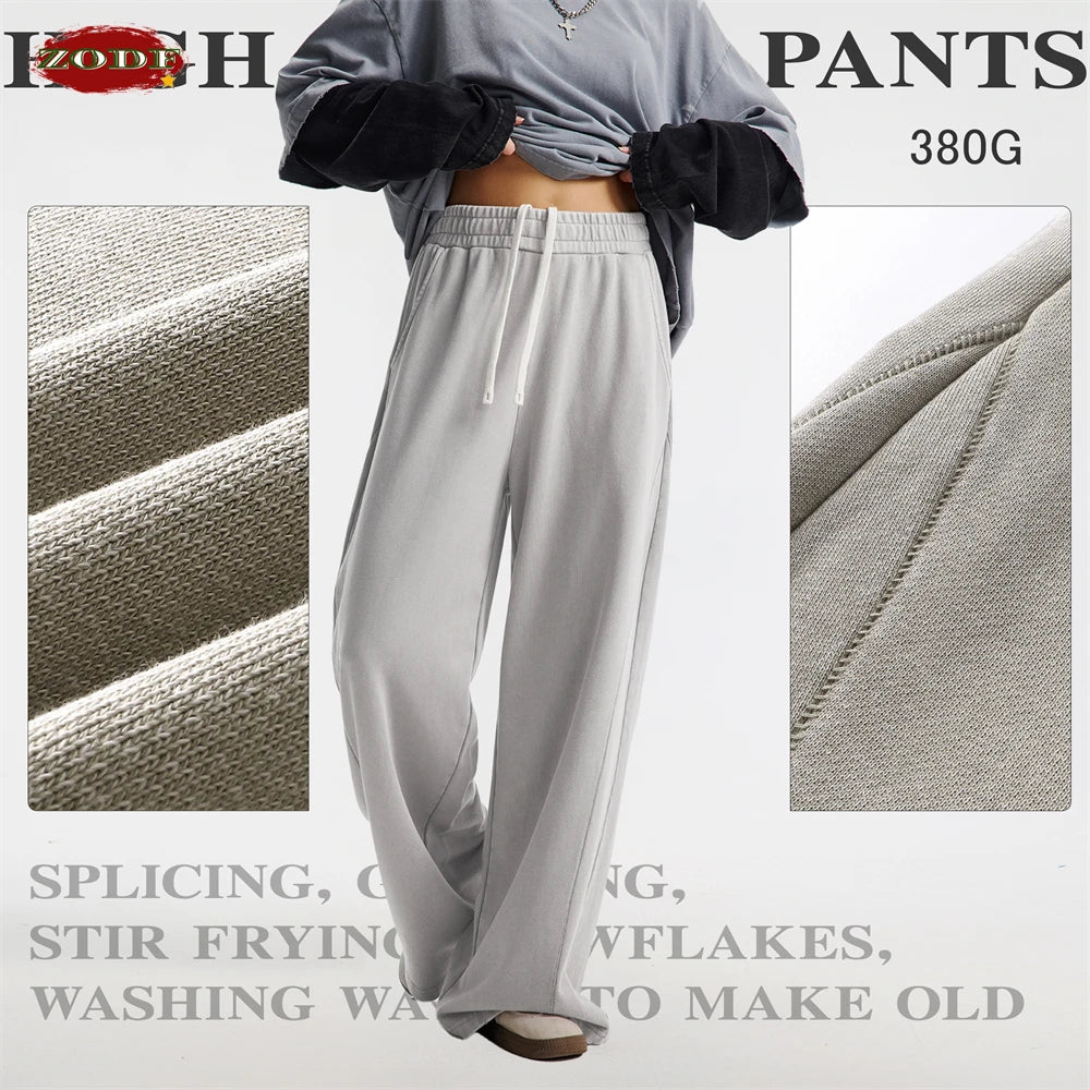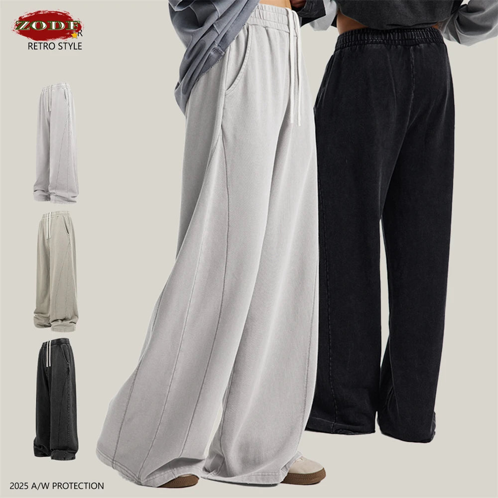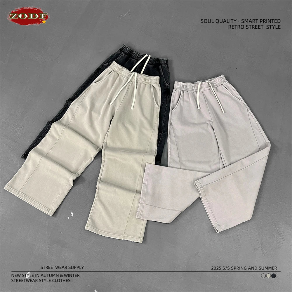 ZODF Retro 2025 Autumn Men 380gsm Washed Cotton Pants Unisex Patchwork Distressed Heavyweight Loose Solid Terry Trousers HY1071
