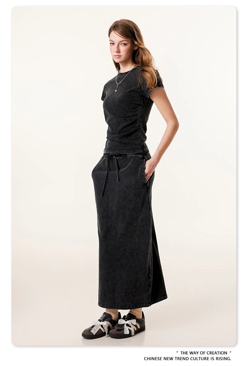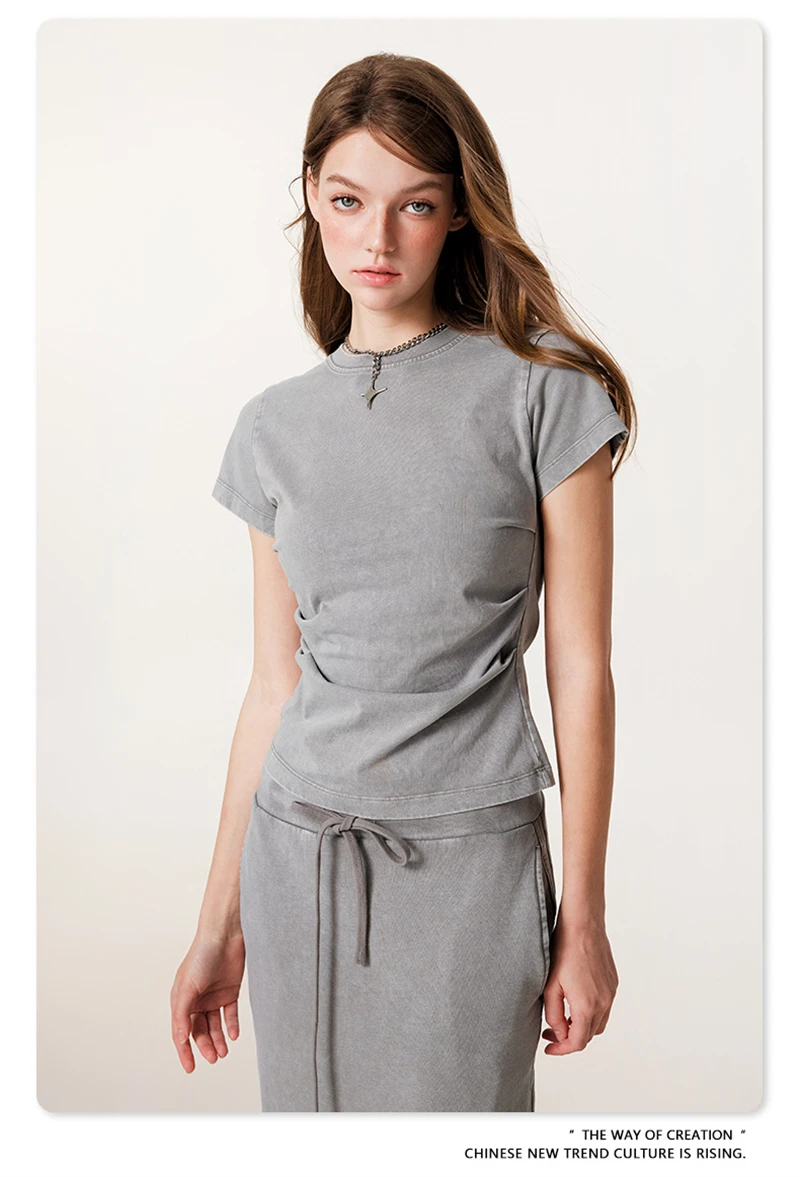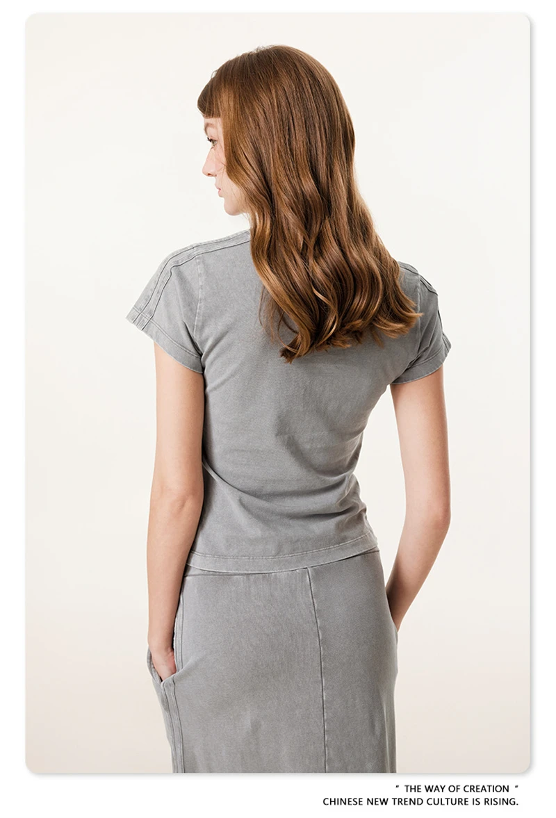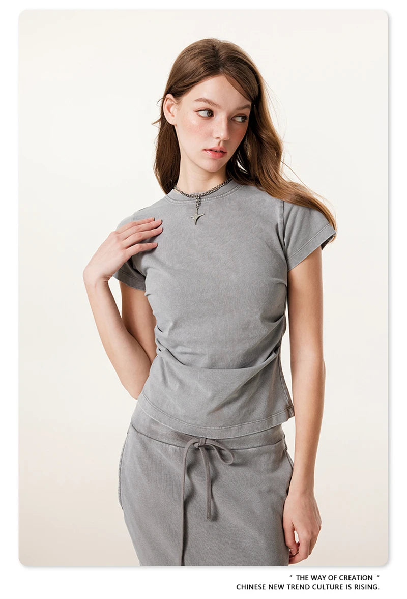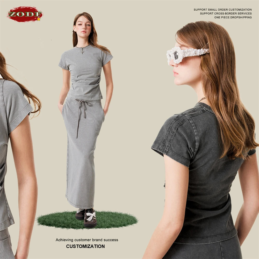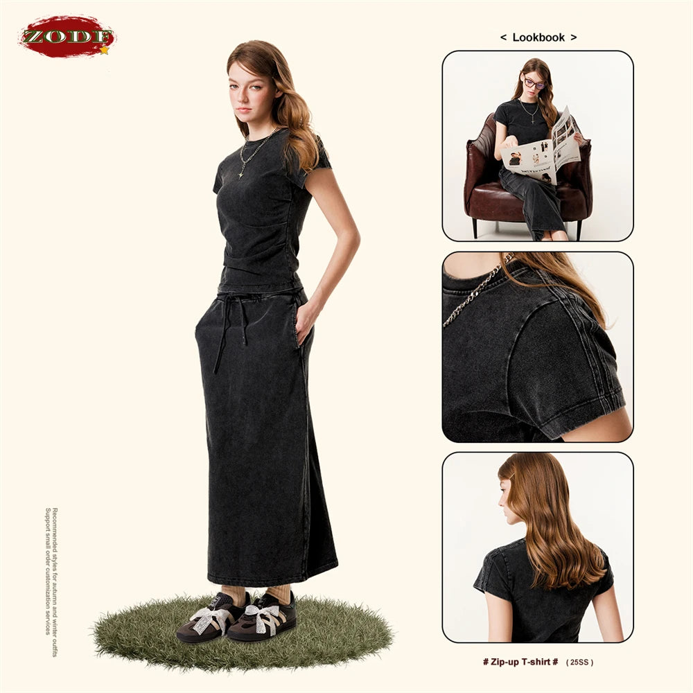 ZODF Retro 2025 Summer Women 285gsm T-Shirts Hotsweet Girls Sexy Slim Fit Washed Distressed T Shirt Brand Tees HY1013