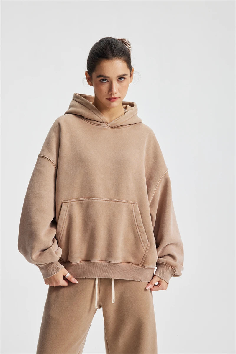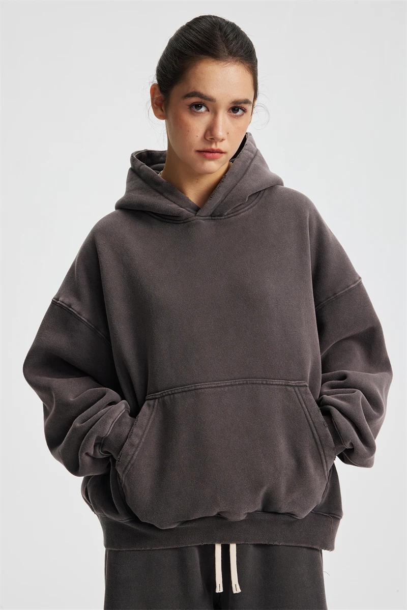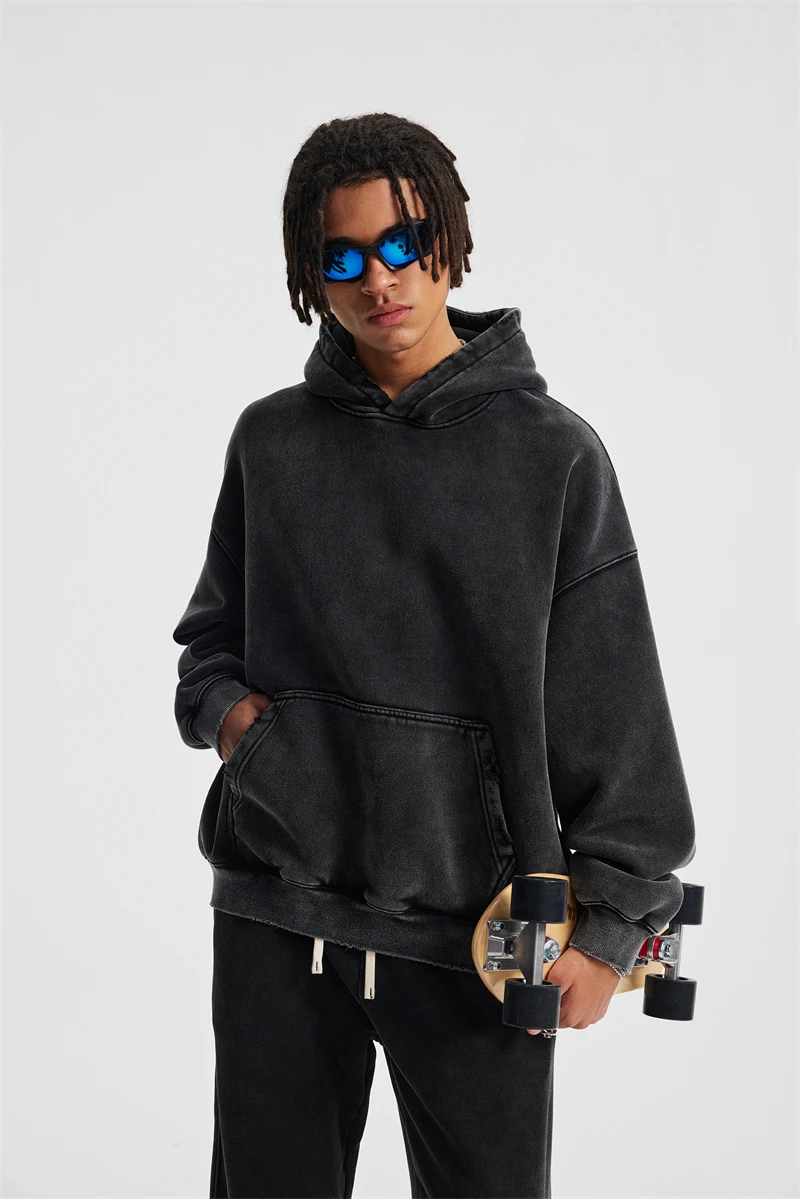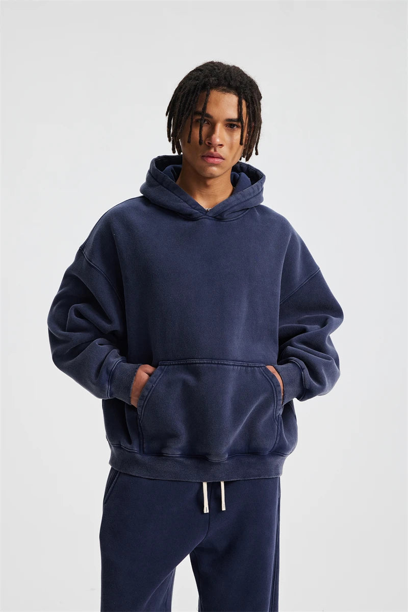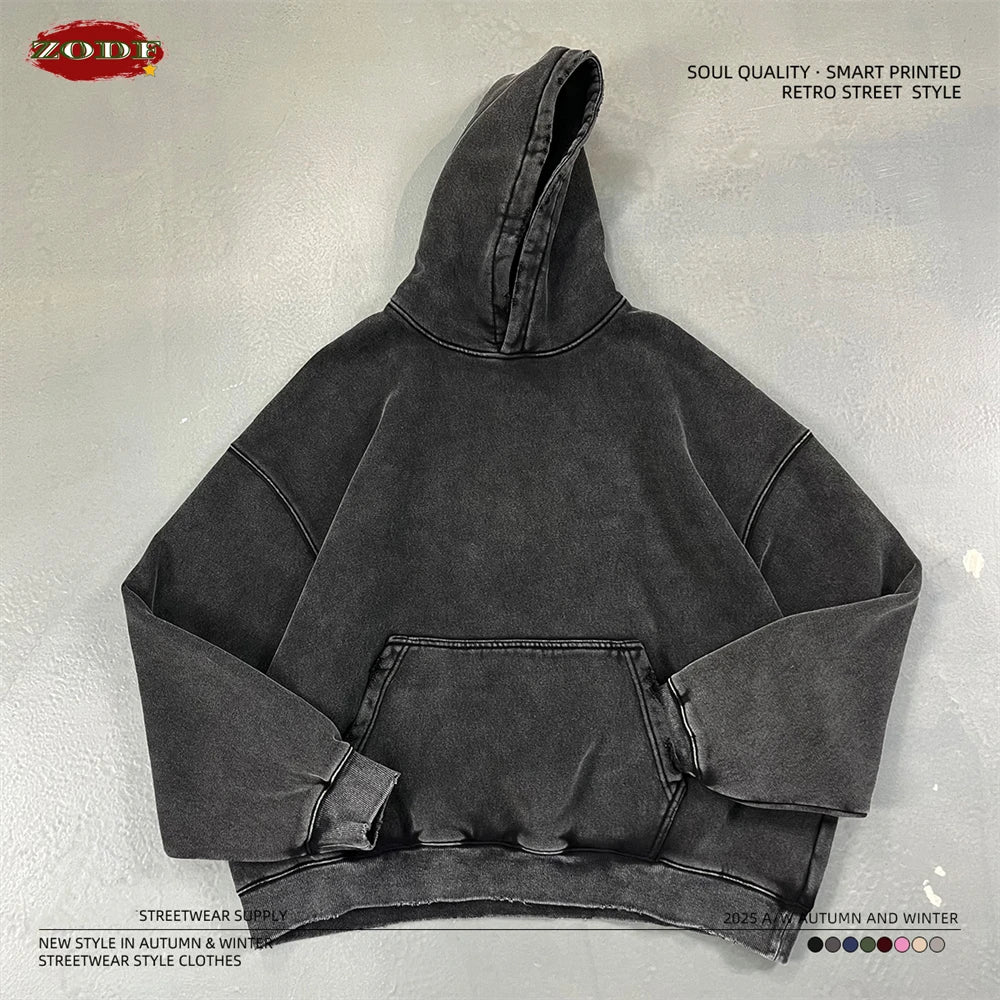 ZODF Retro 2025 Winter Man Washed Boxy Fleece Hoodies Unisex 370gsm Loose Hooded Pullovers Sweatshirt Streetwears HY1129
