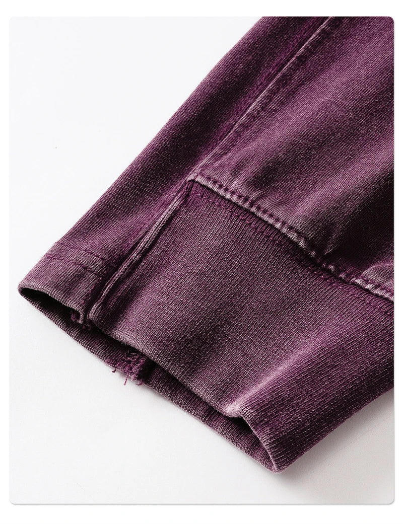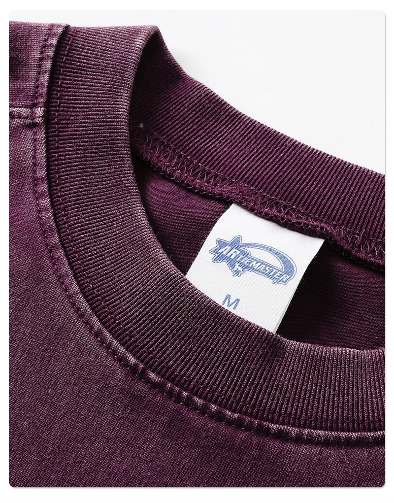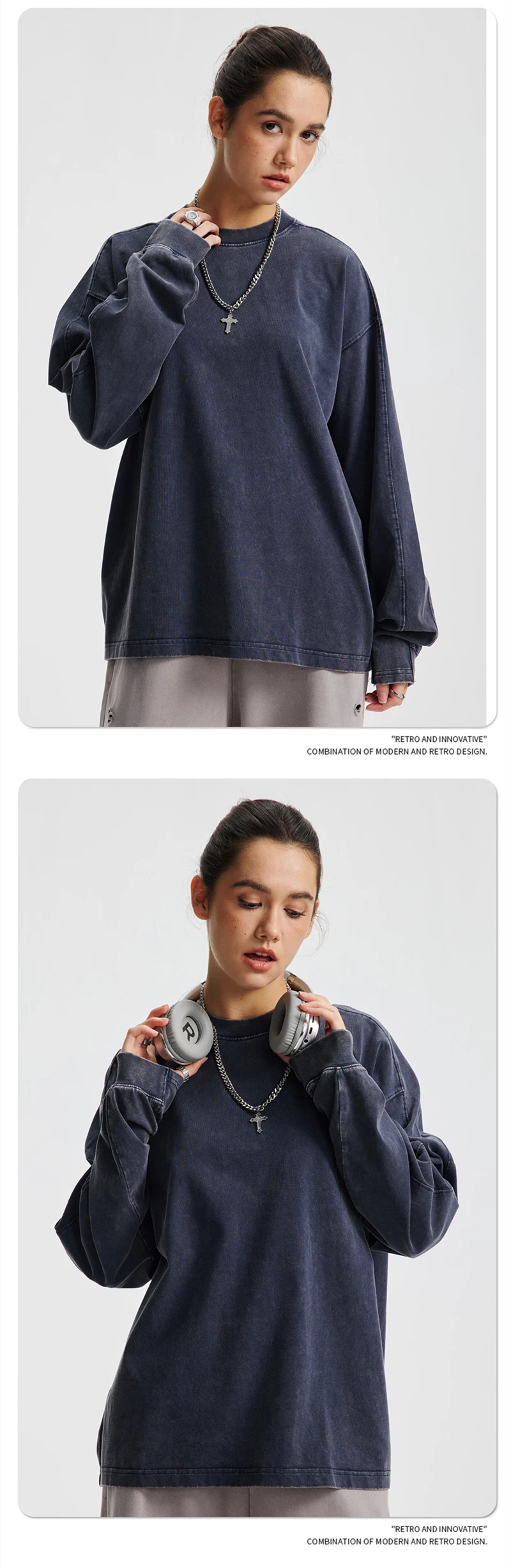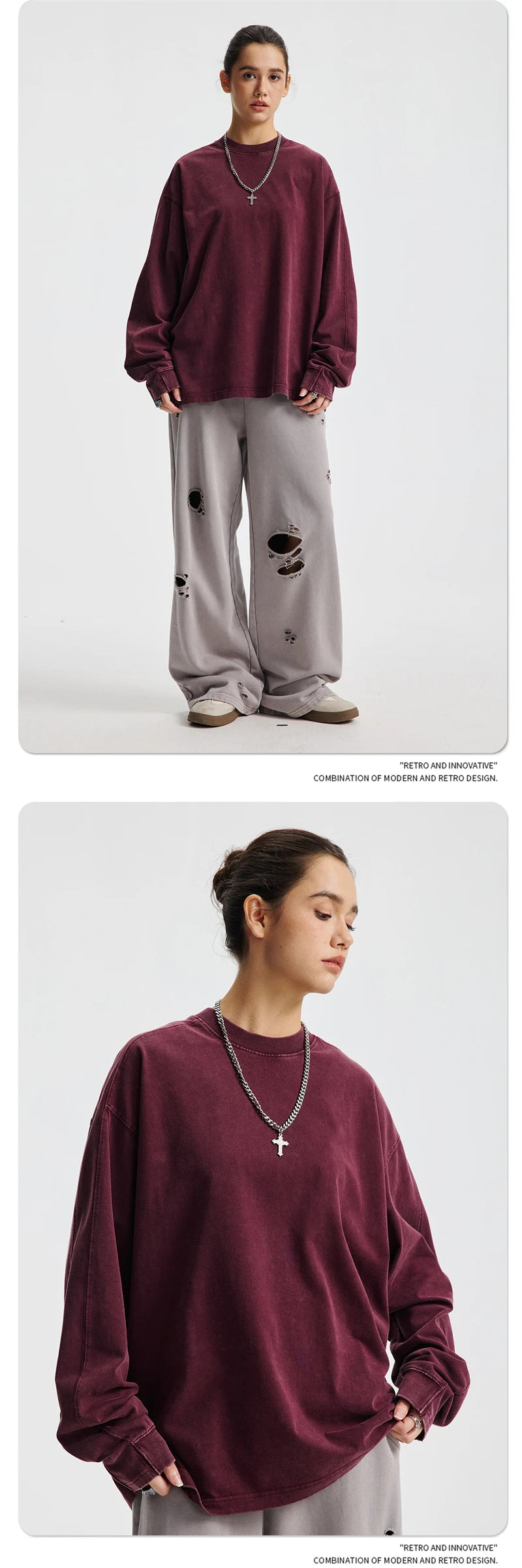 ZODF Retro 285gsm Batik Washed Cotton Man's T-Shirts Unisex Solid Loose Distressed Patchwork Full Sleeve Tee Shirt Tops HY1161