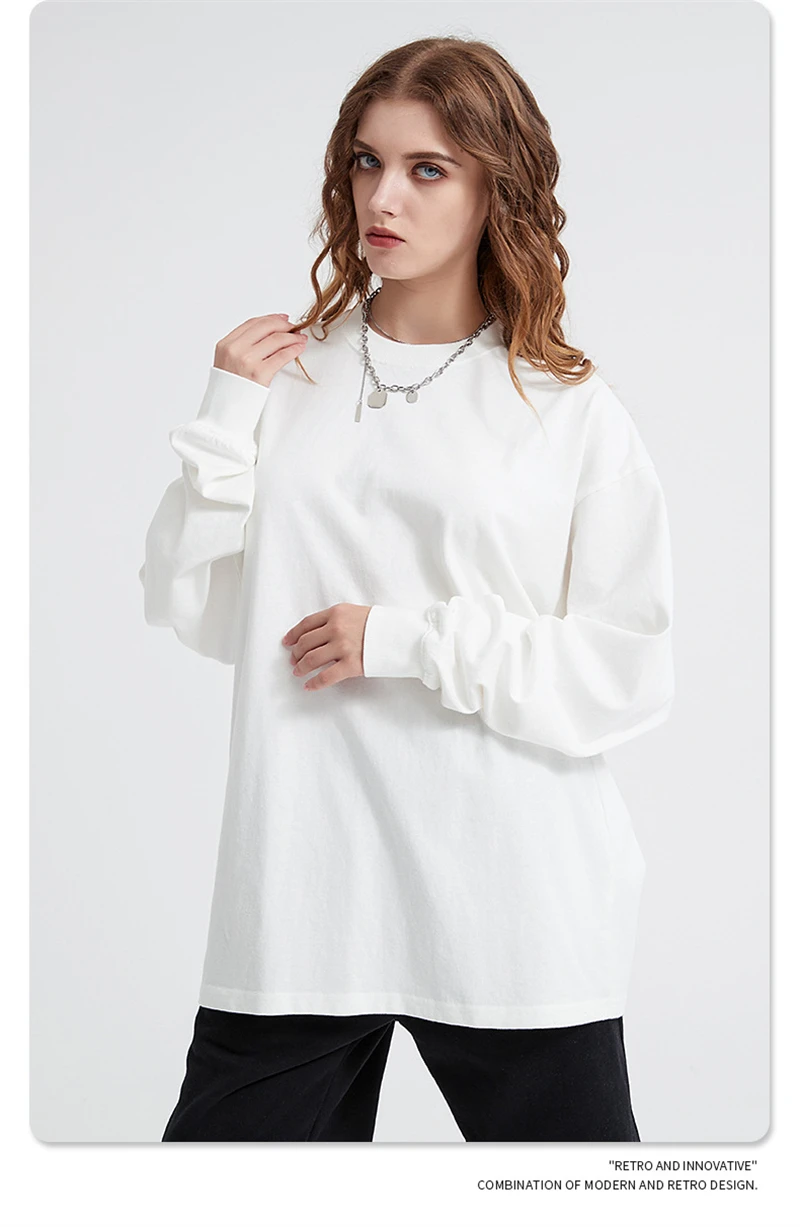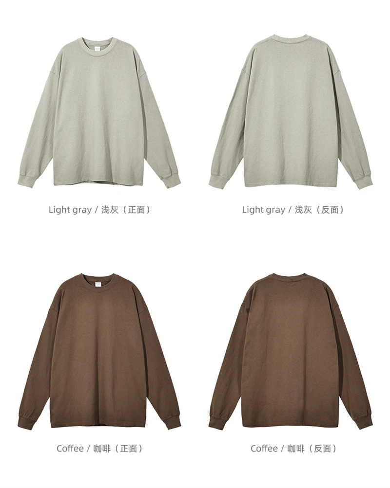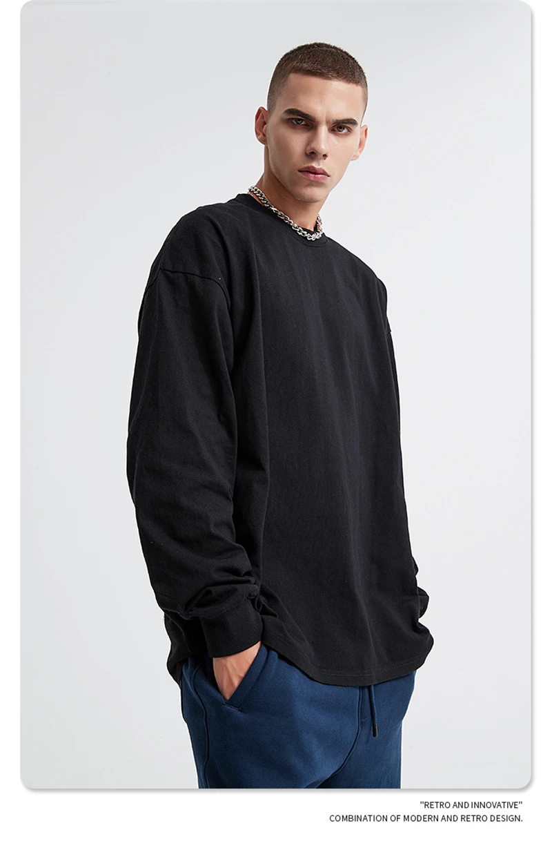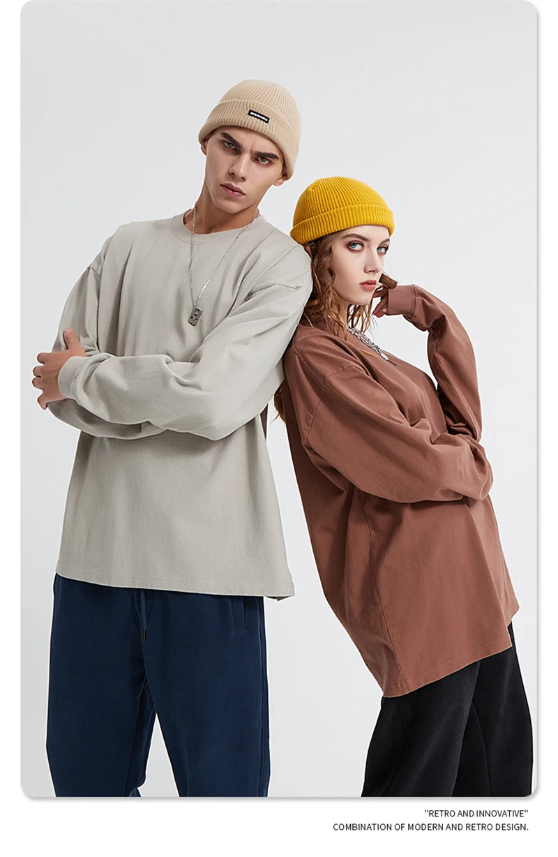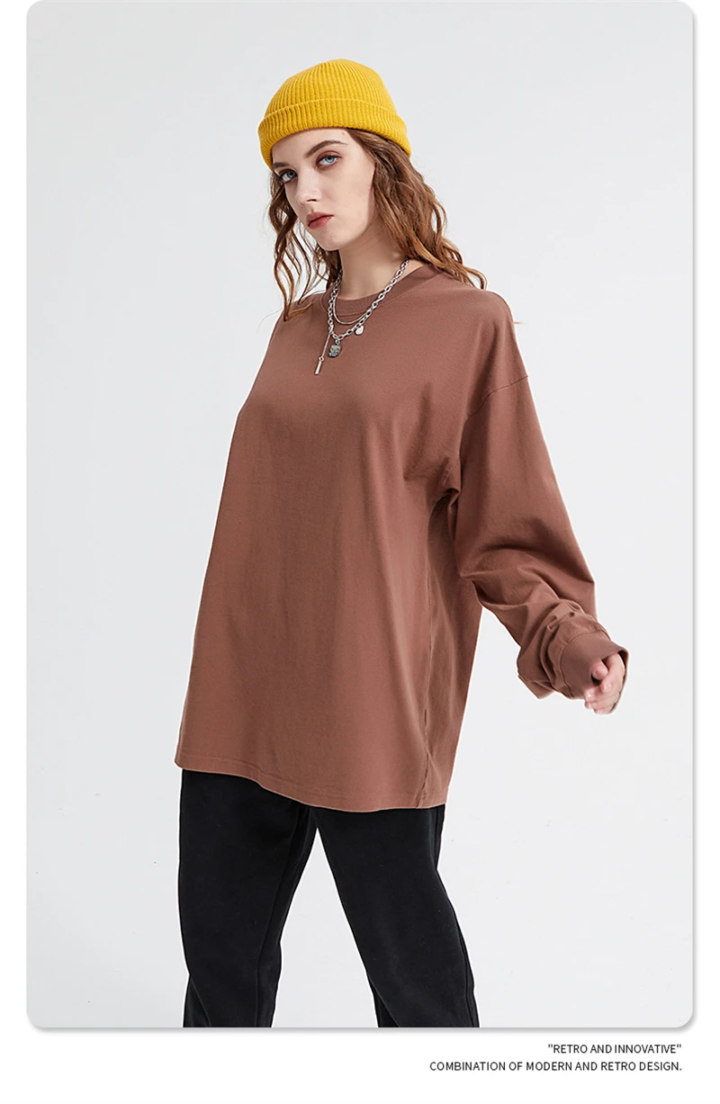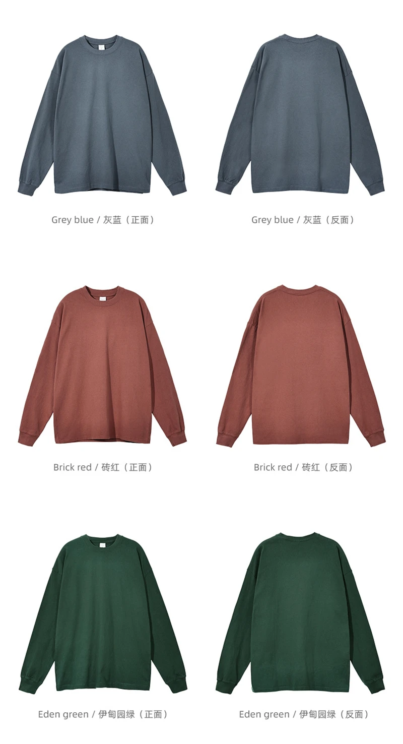ZODF Retro Autumn Full Sleeve Washed 100% Cotton T-Shirts For Men Unisex Solid Casual Loose 310gsm Tee Brand Tops HY0405