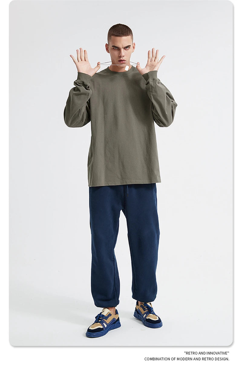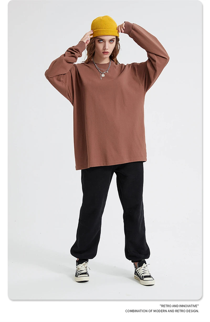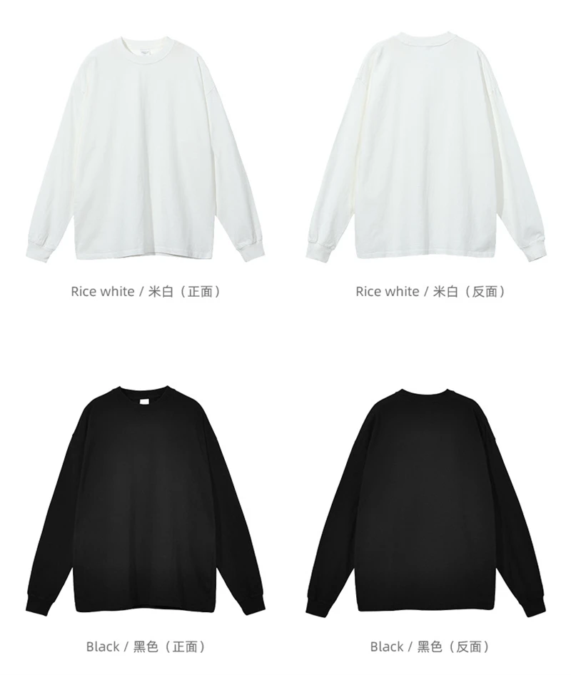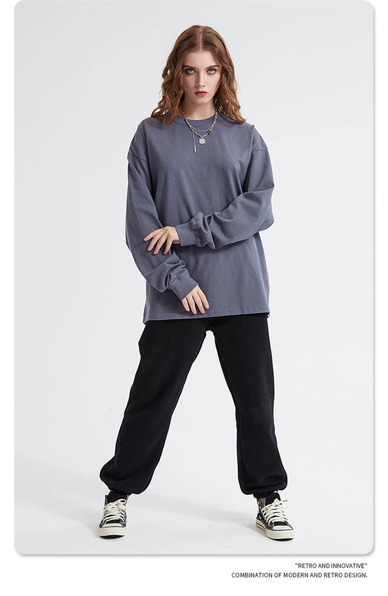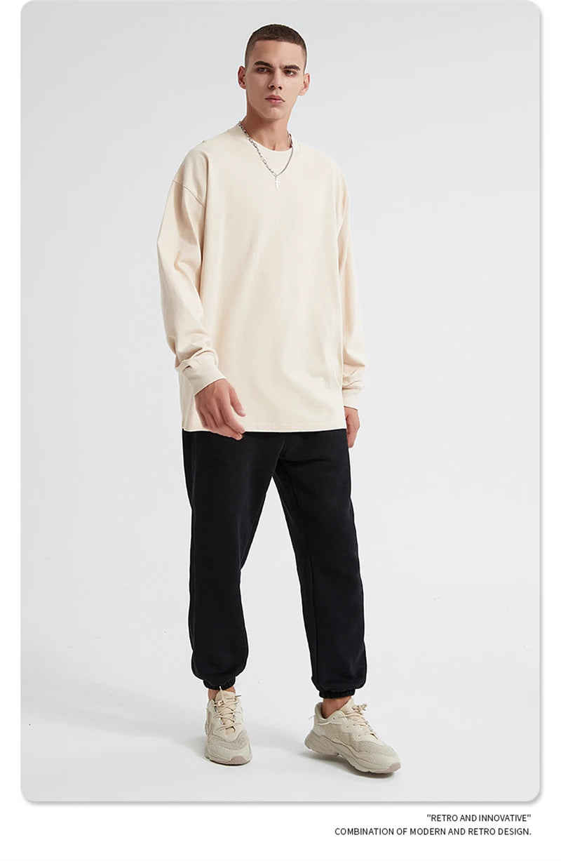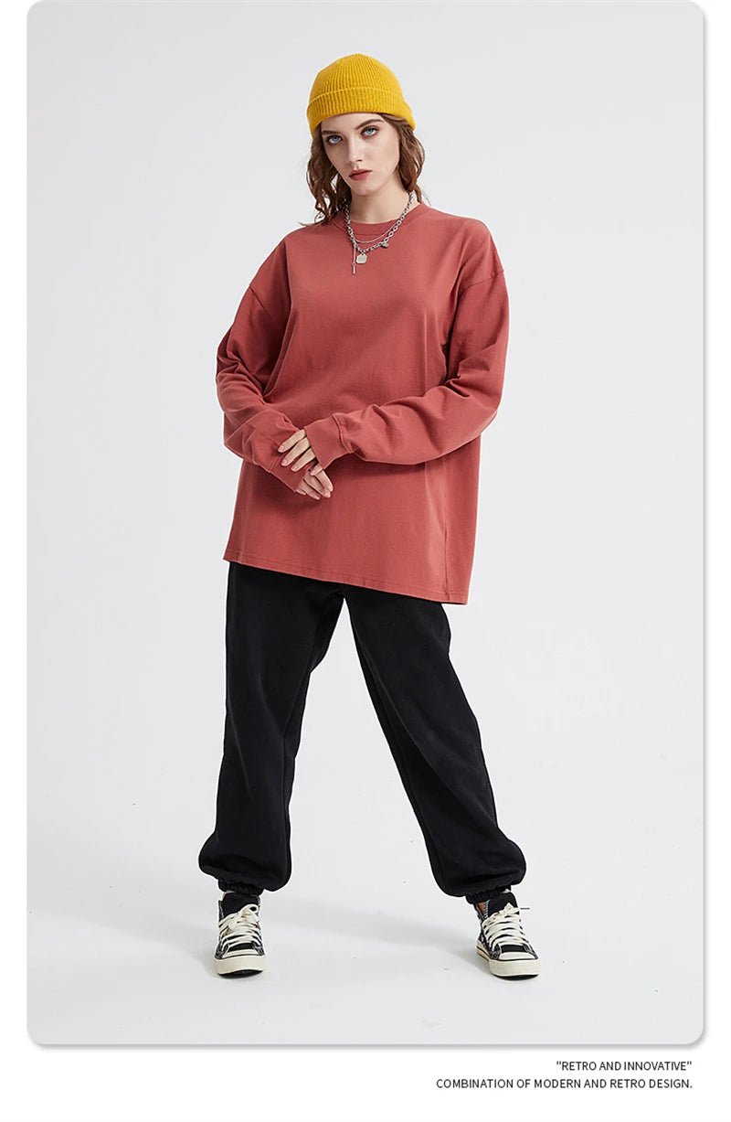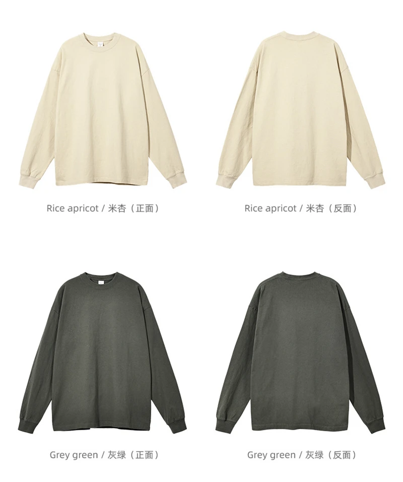 ZODF Retro Autumn Full Sleeve Washed 100% Cotton T-Shirts For Men Unisex Solid Casual Loose 310gsm Tee Brand Tops HY0405