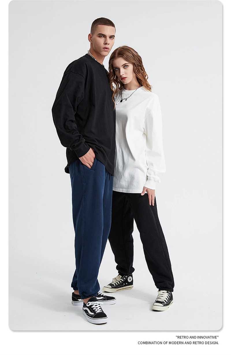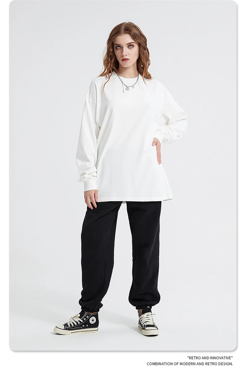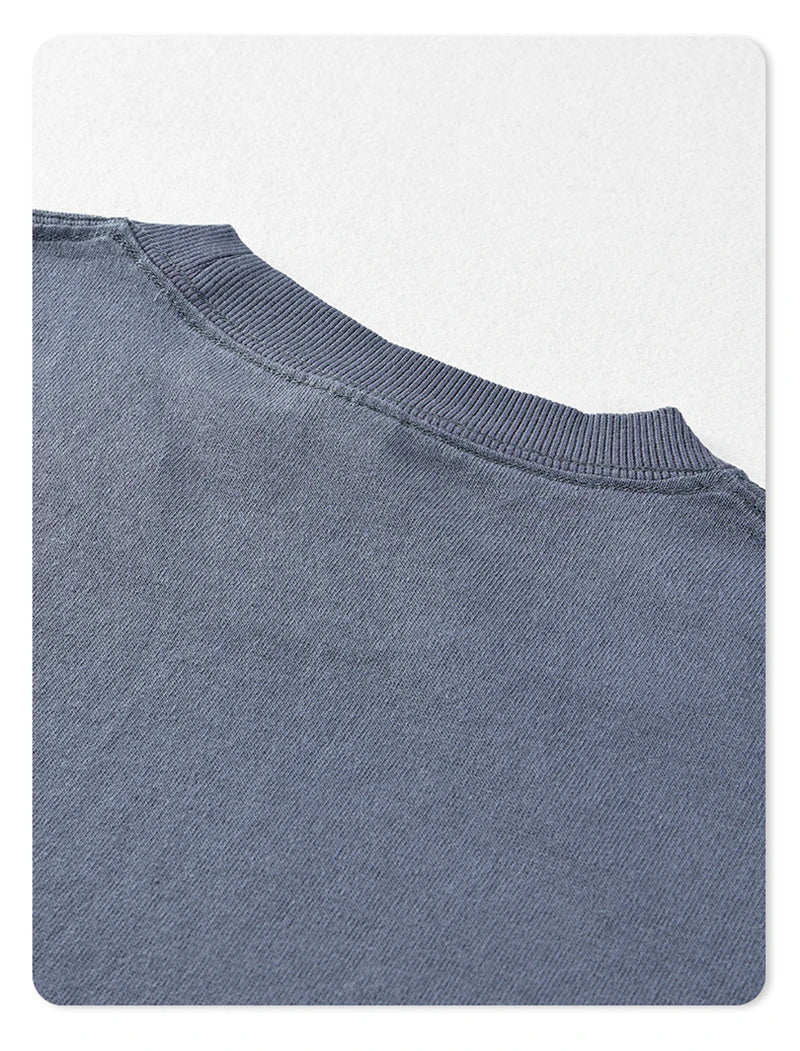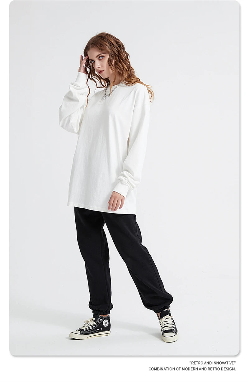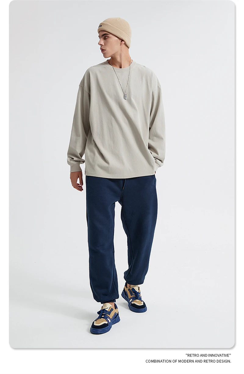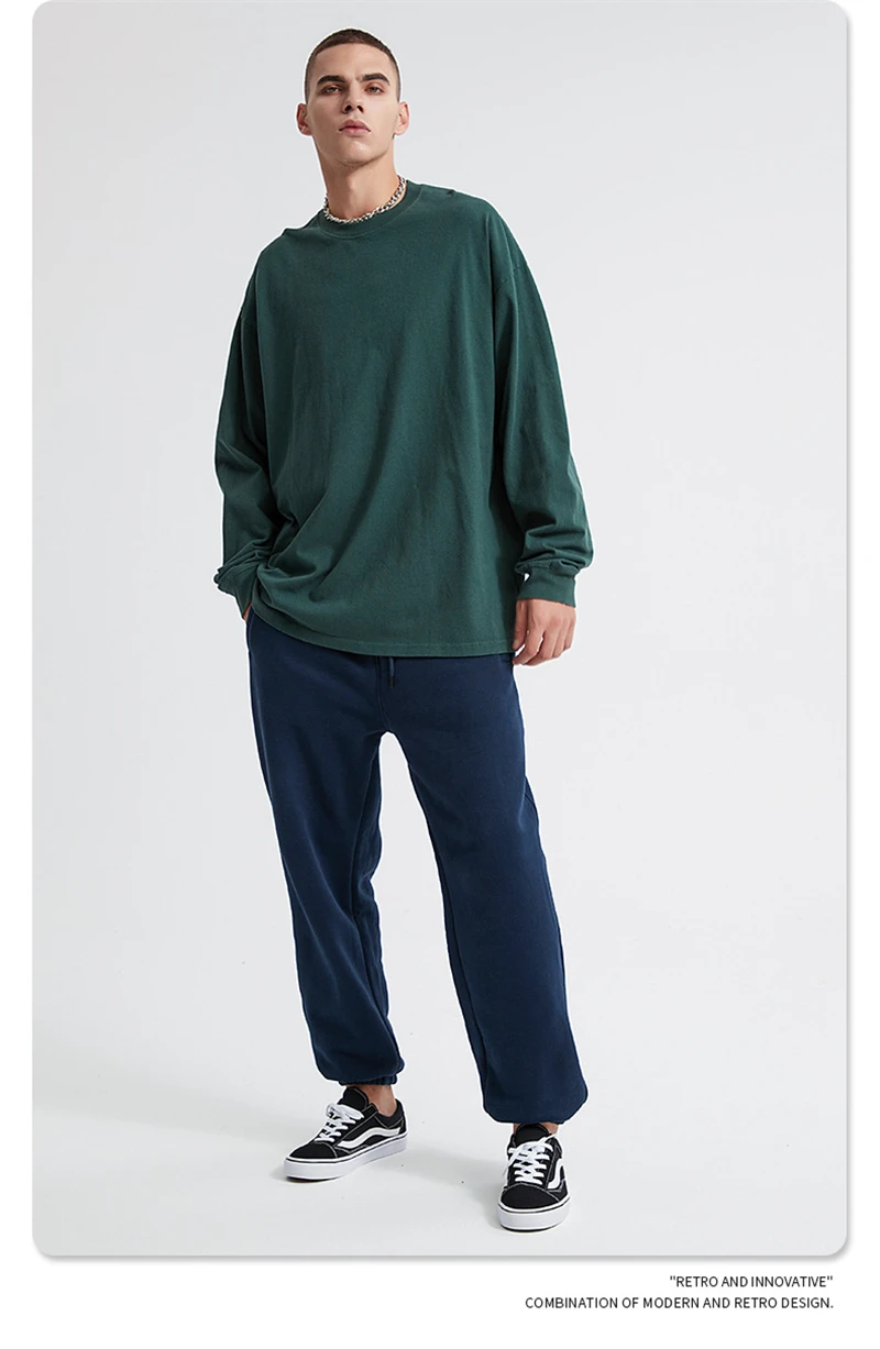 ZODF Retro Autumn Full Sleeve Washed 100% Cotton T-Shirts For Men Unisex Solid Casual Loose 310gsm Tee Brand Tops HY0405
