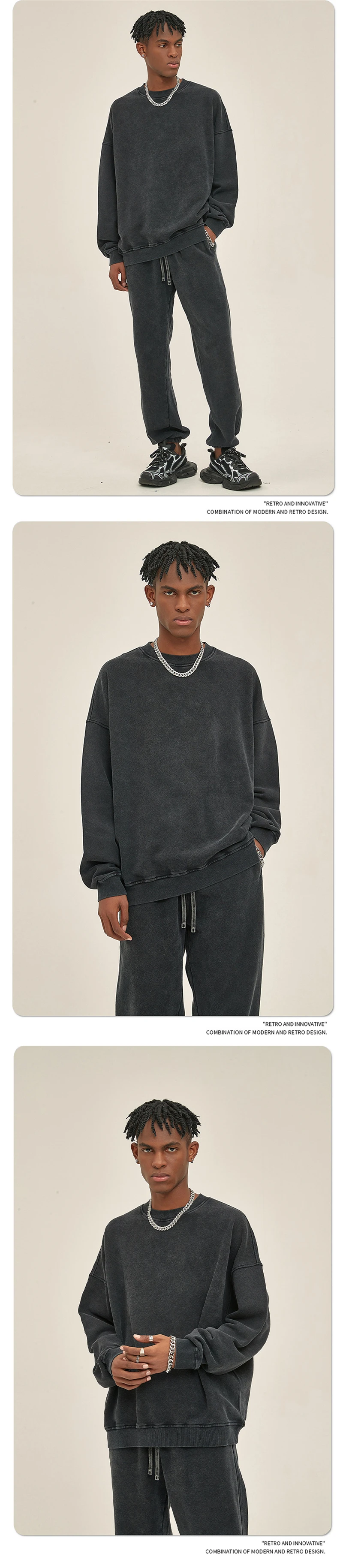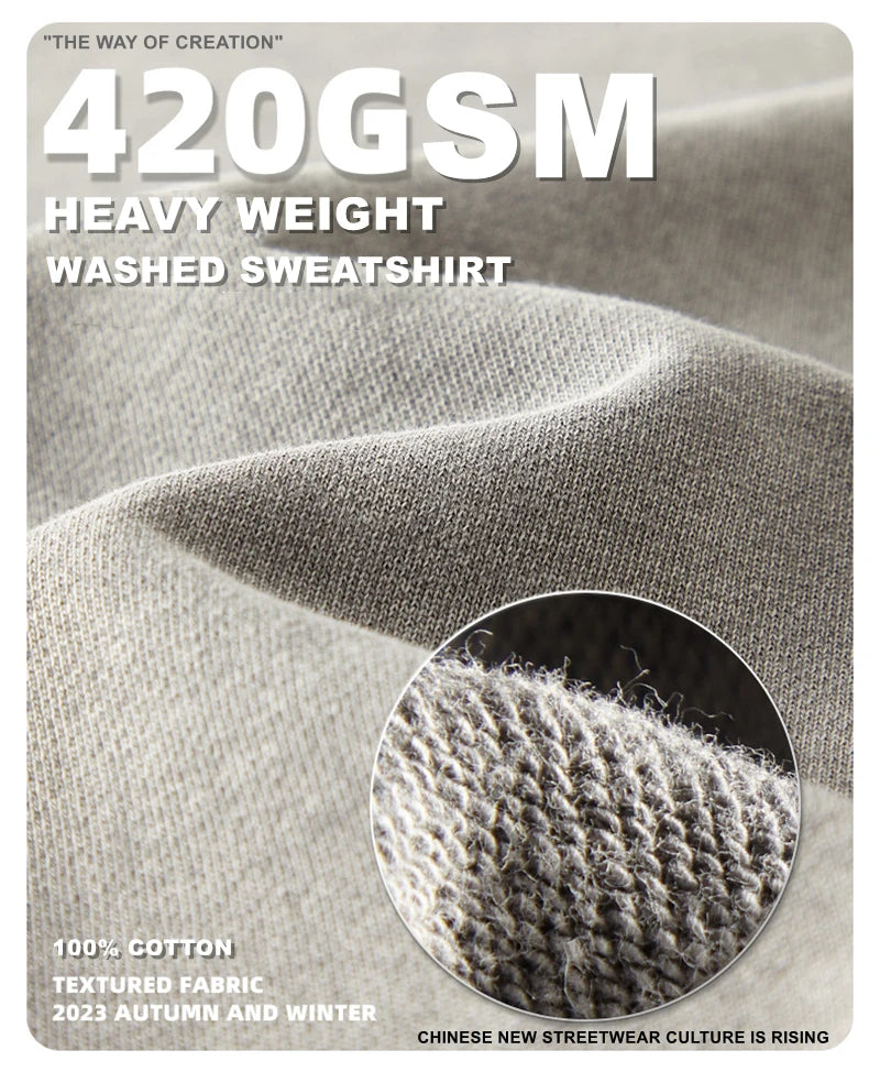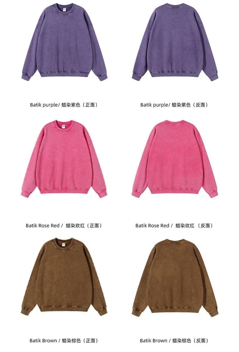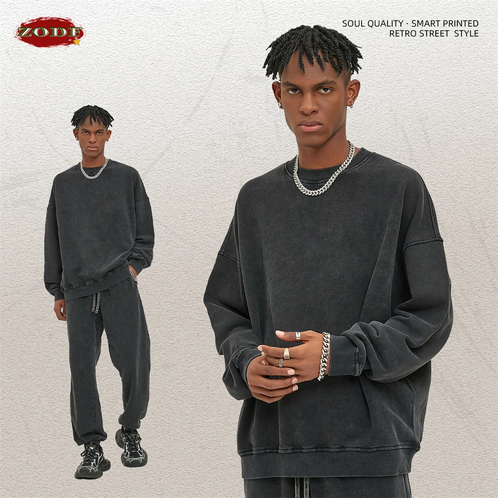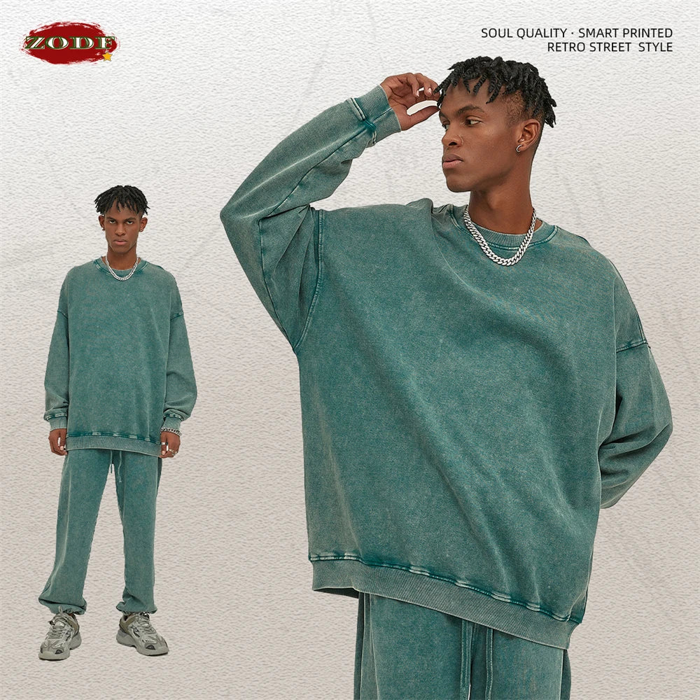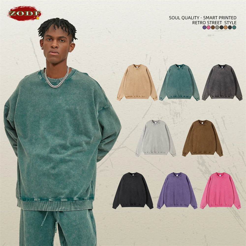 ZODF Retro Autumn Men Batik Washed Cotton Sweatshirts Unisex Loose 420gsm Terry O Neck Pullovers Streetwears HY0665