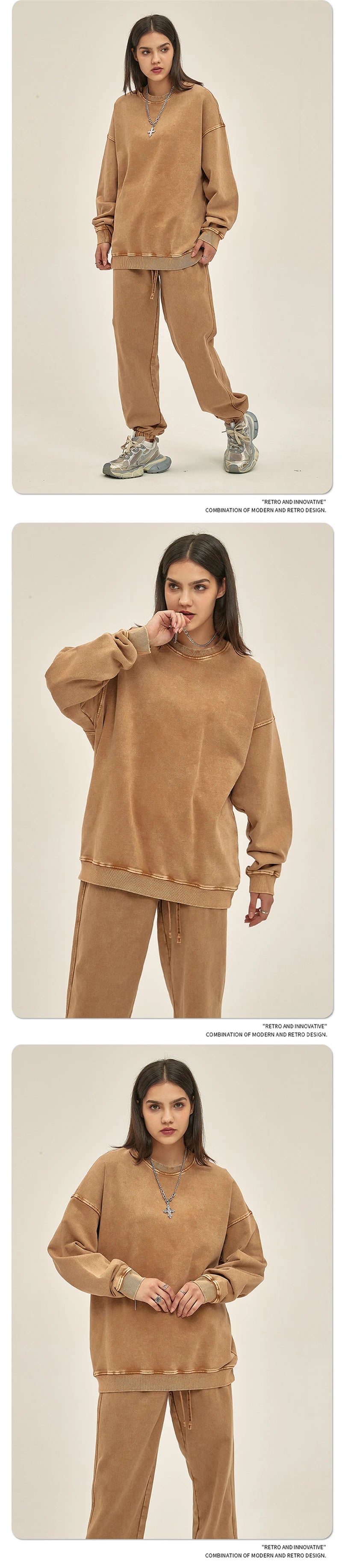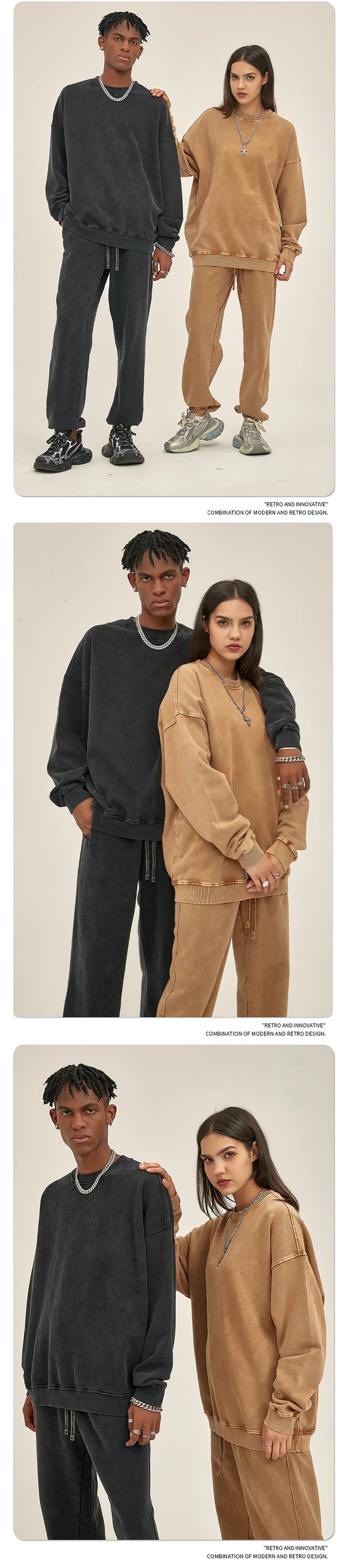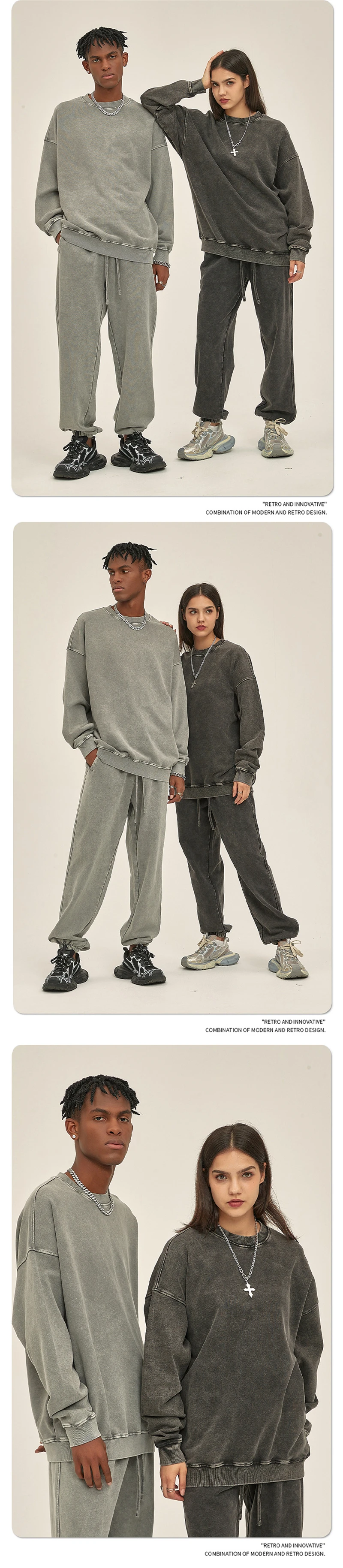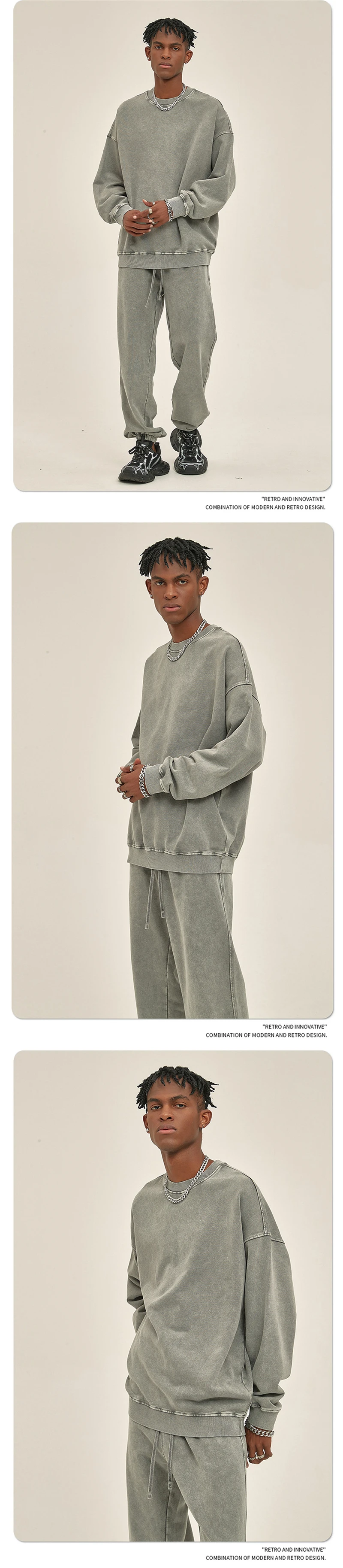 ZODF Retro Autumn Men Batik Washed Cotton Sweatshirts Unisex Loose 420gsm Terry O Neck Pullovers Streetwears HY0665