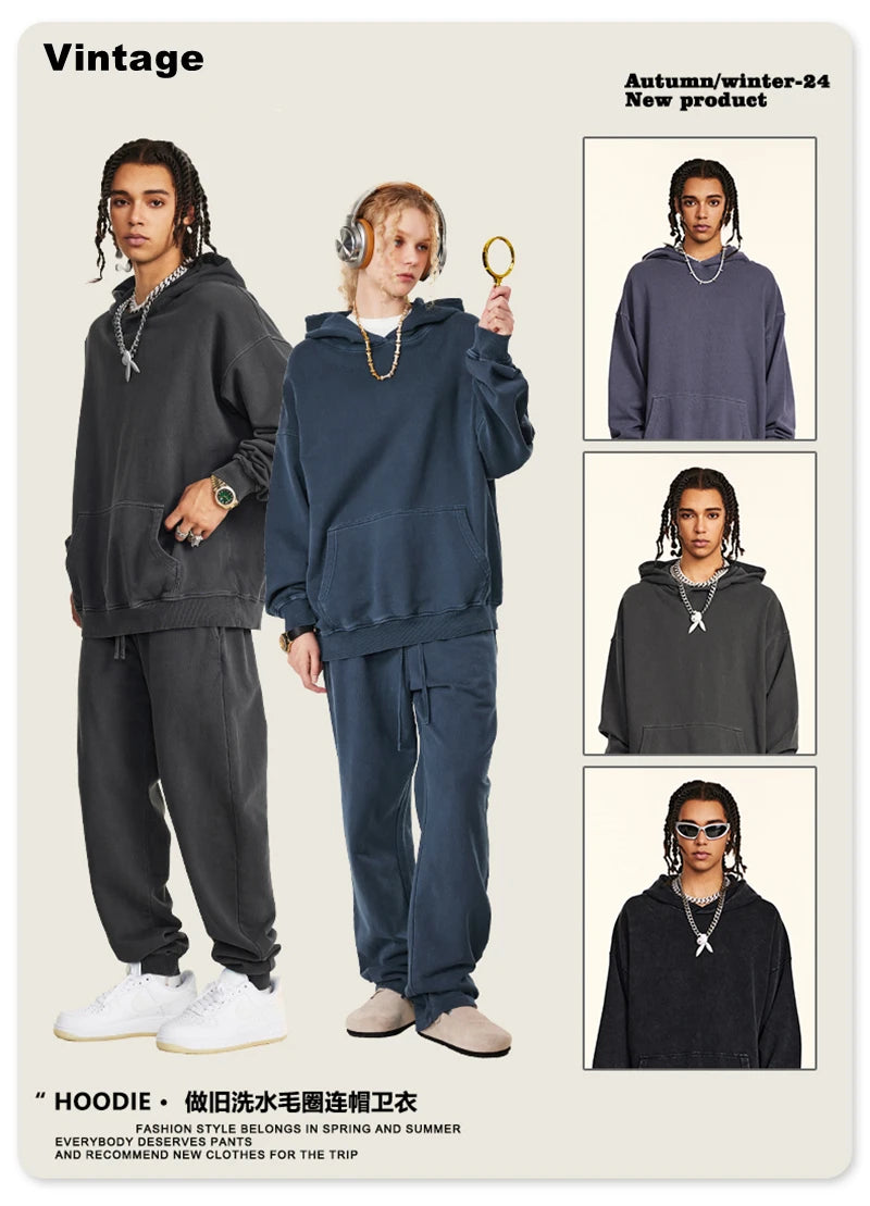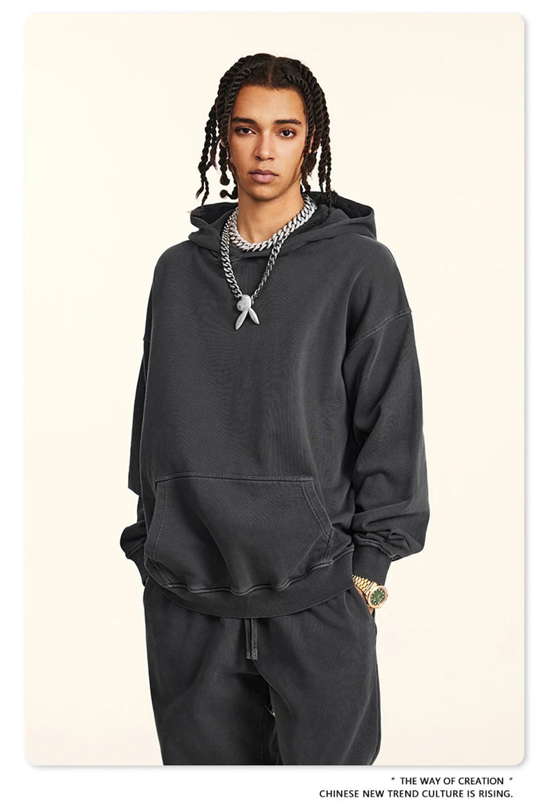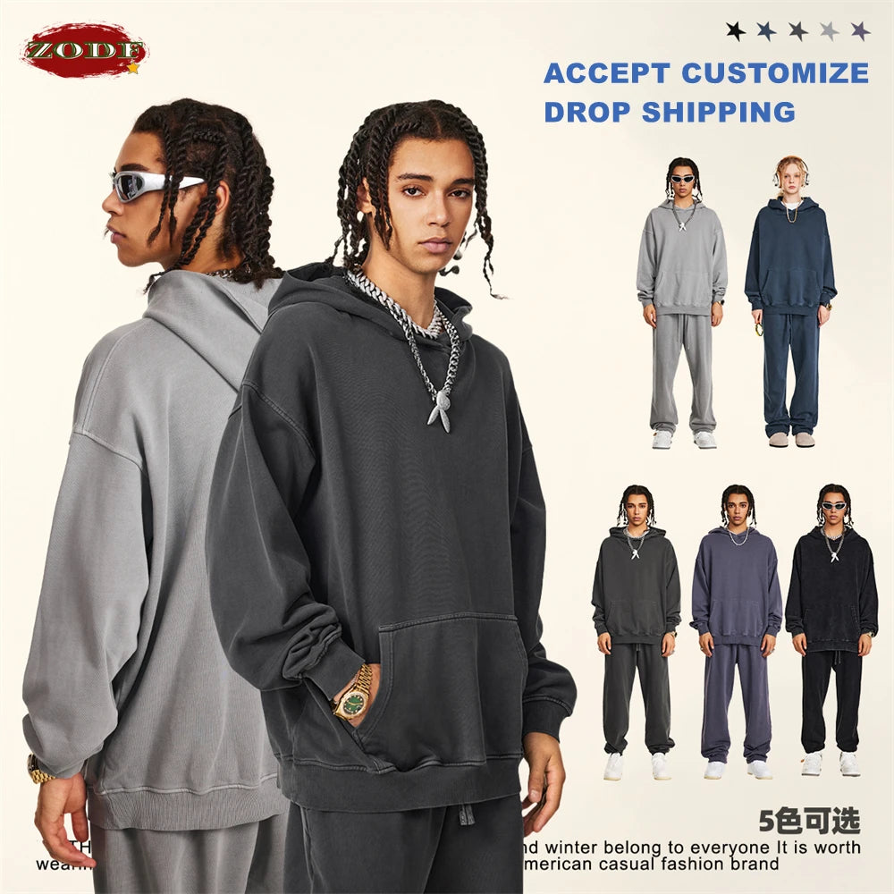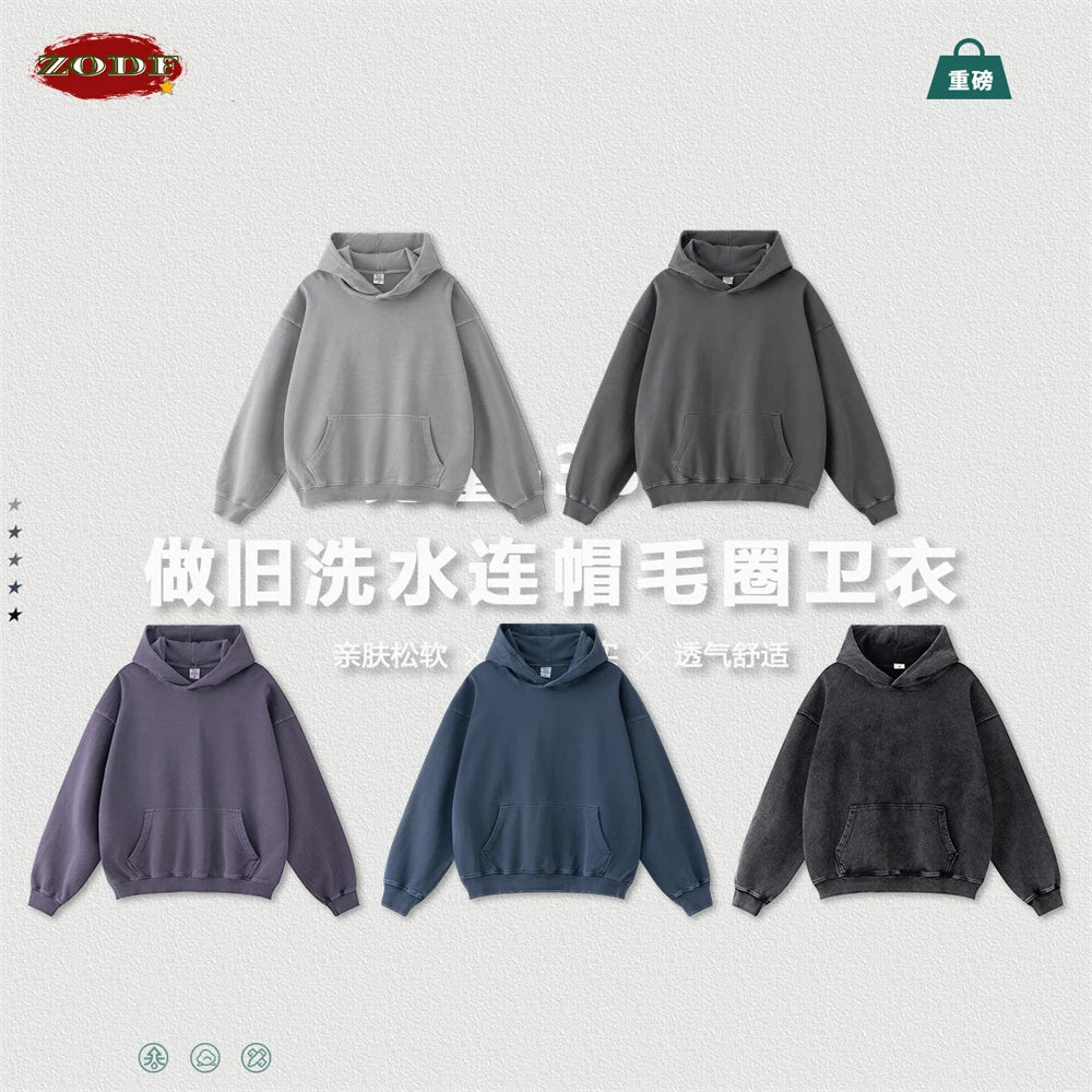 ZODF Retro Autumn Winter Washed Cotton Hoodies Unisex Loose 380gsm Knitted Sport Hooded Pullovers Brand Clothes HY0884