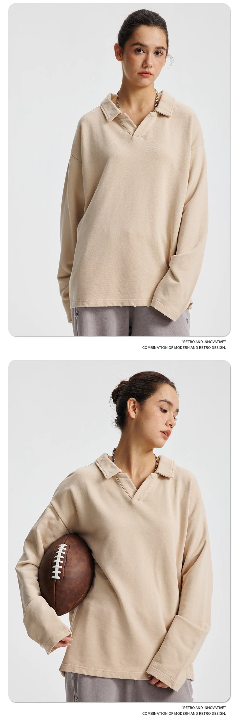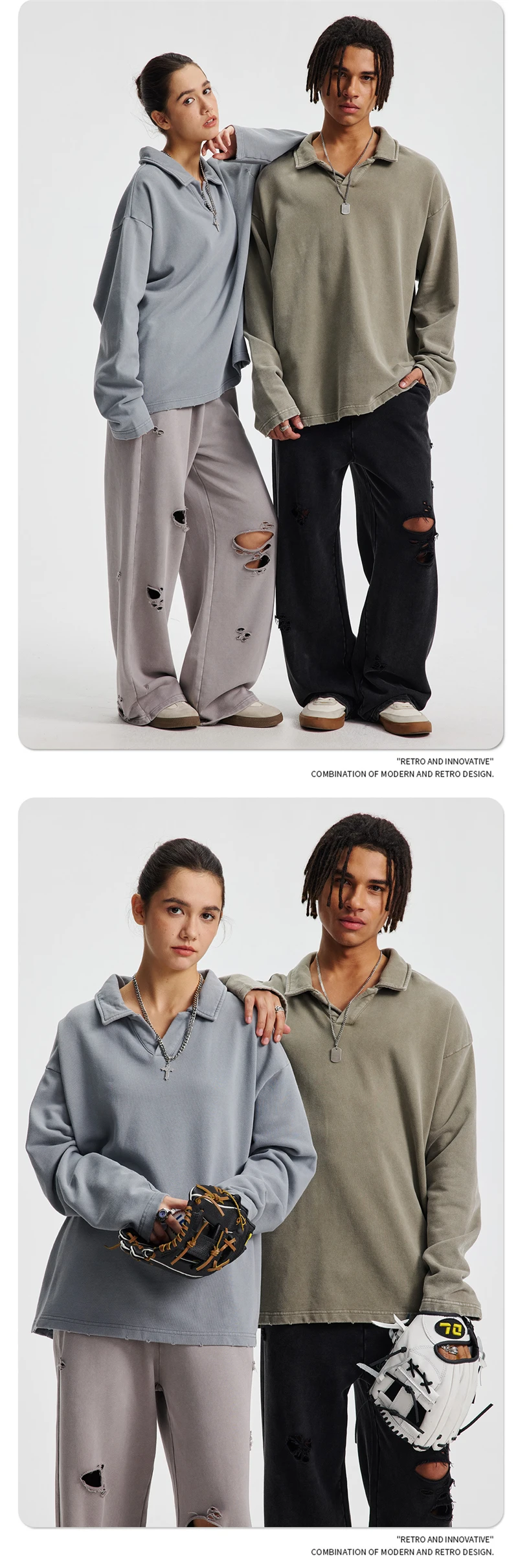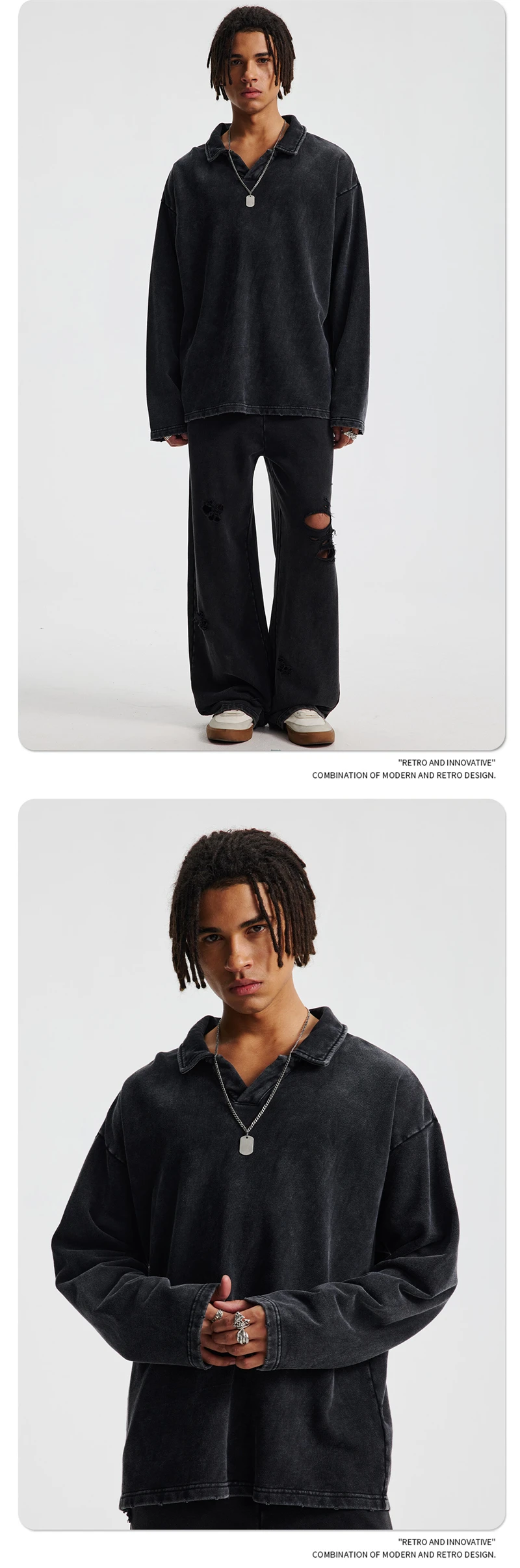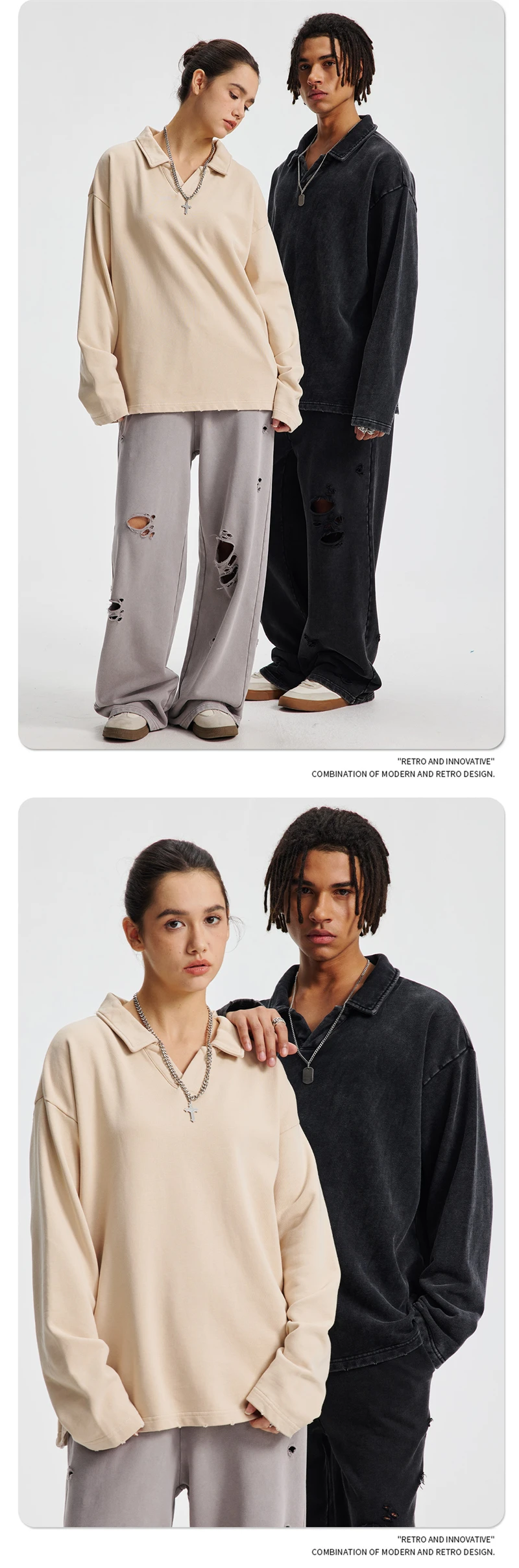 ZODF Retro Heavy Weight 400gsm Washed Cotton T-Shirts For Man Unisex Full Sleeve Turn Down Collar T Shirt Brand Tops HY1087