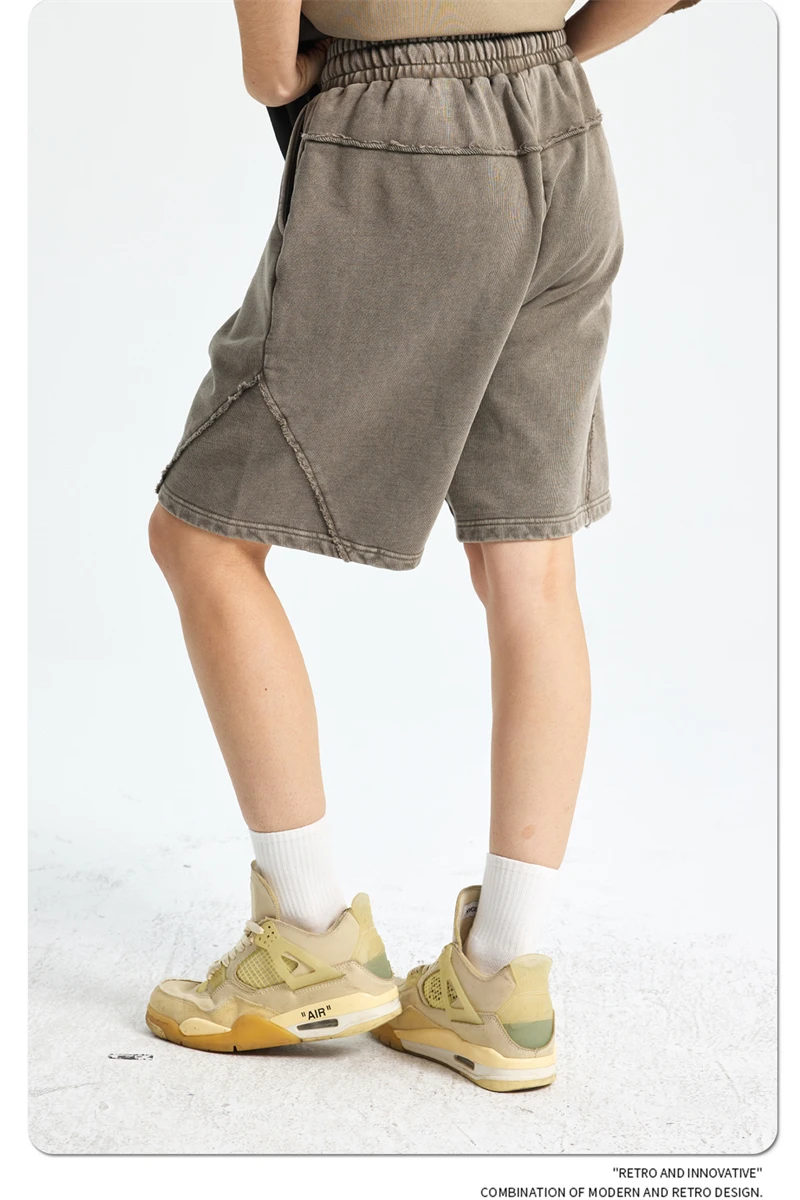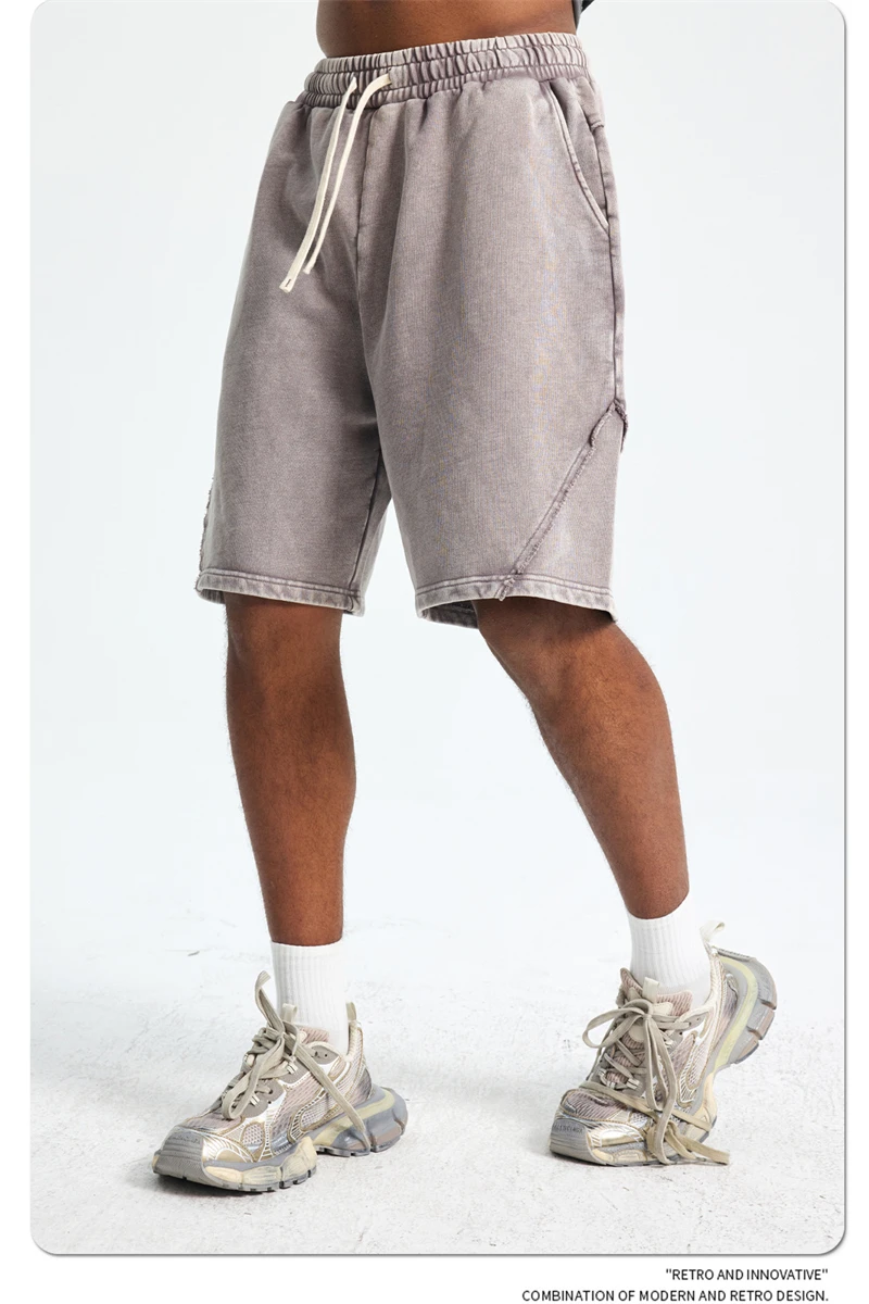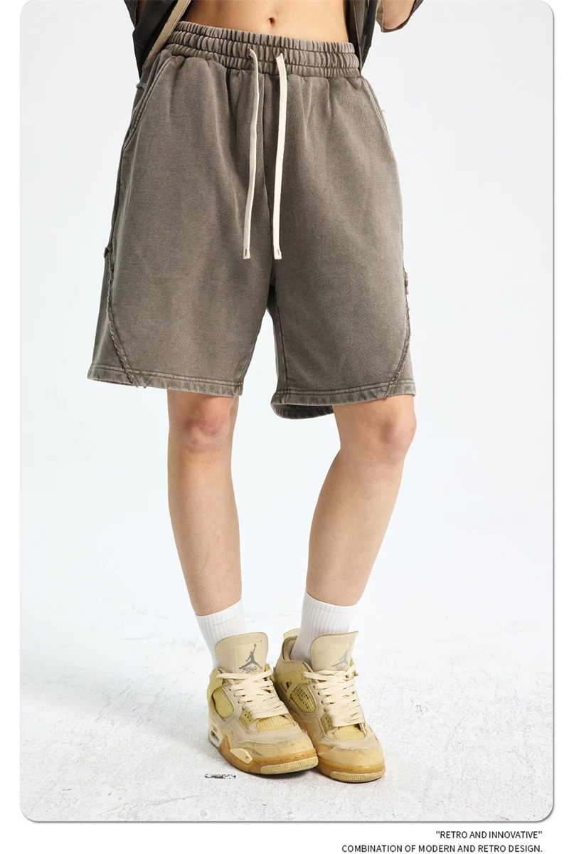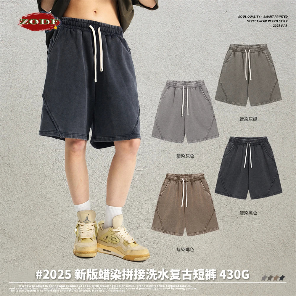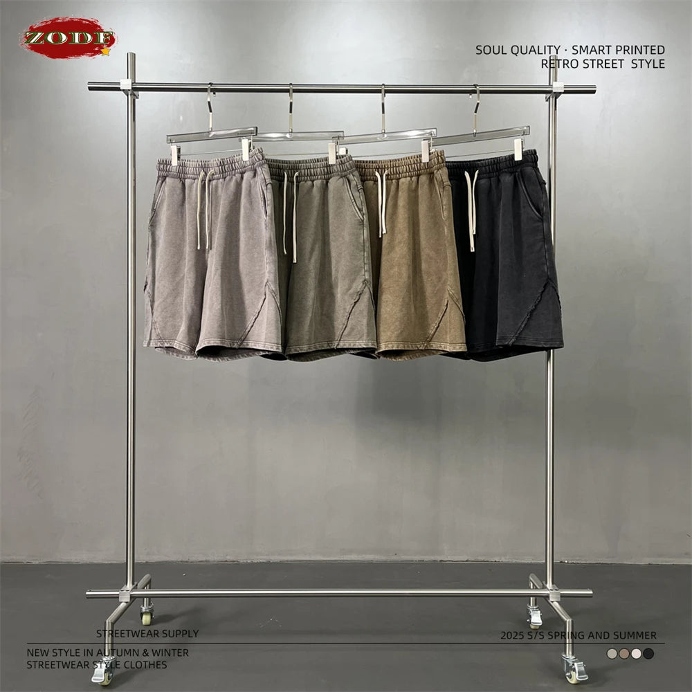 ZODF Retro Men Heavy-Weight Washed 430gsm Shorts Unisex High Street Patchwork Summer Distressed Cotton Shorts HY1035