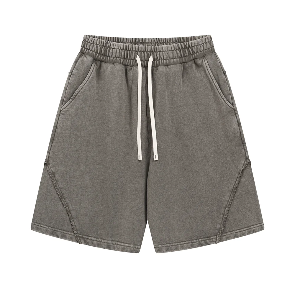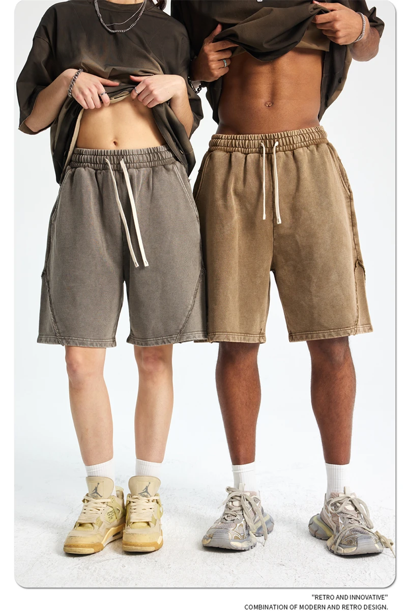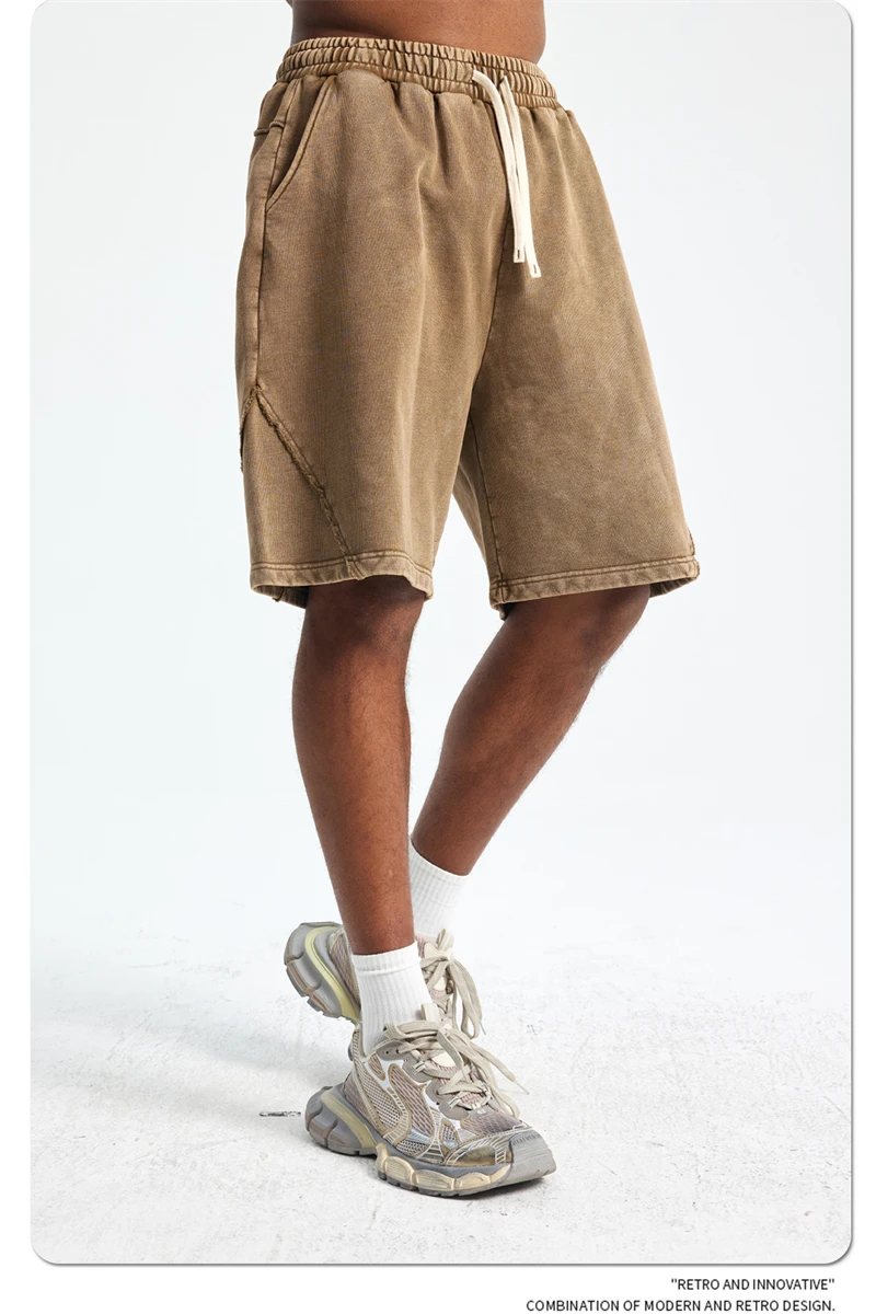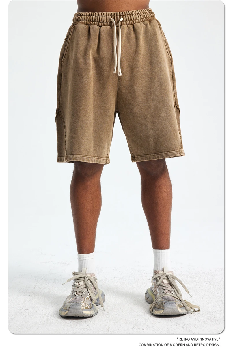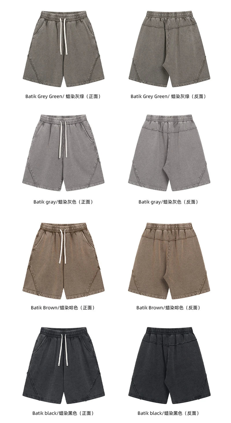 ZODF Retro Men Heavy-Weight Washed 430gsm Shorts Unisex High Street Patchwork Summer Distressed Cotton Shorts HY1035