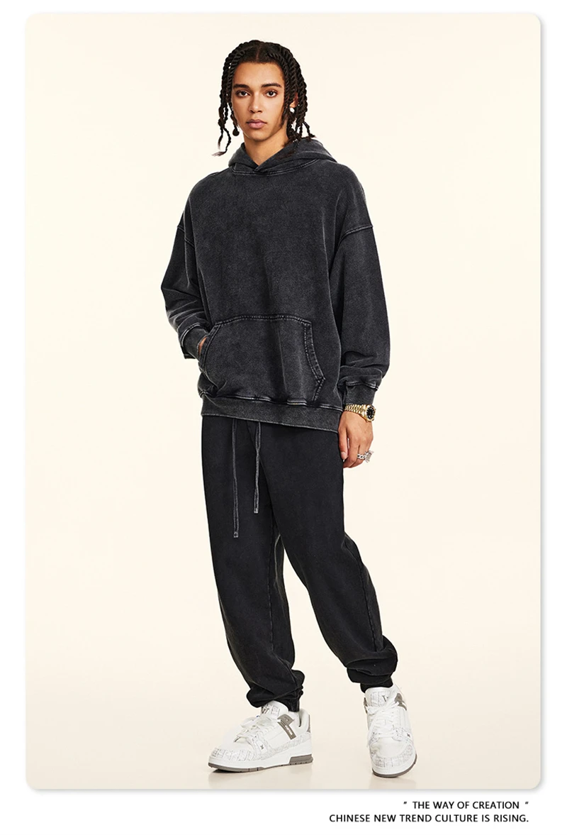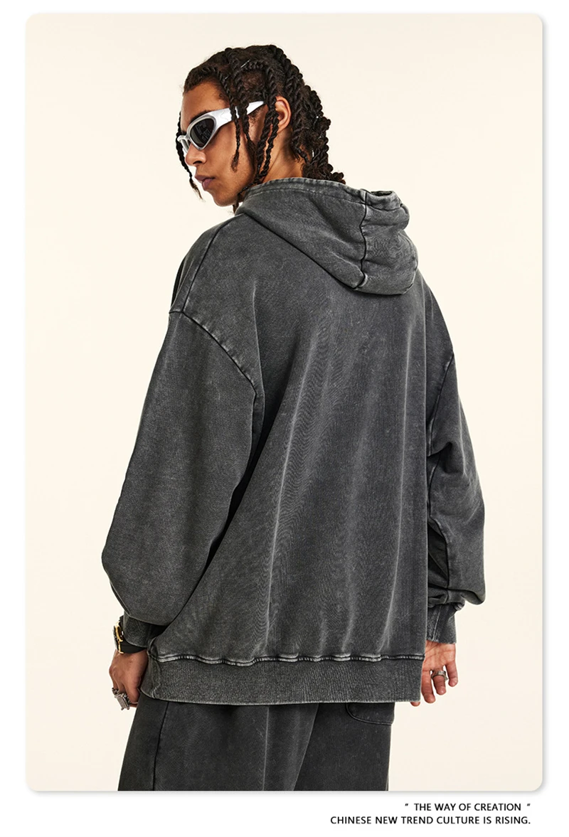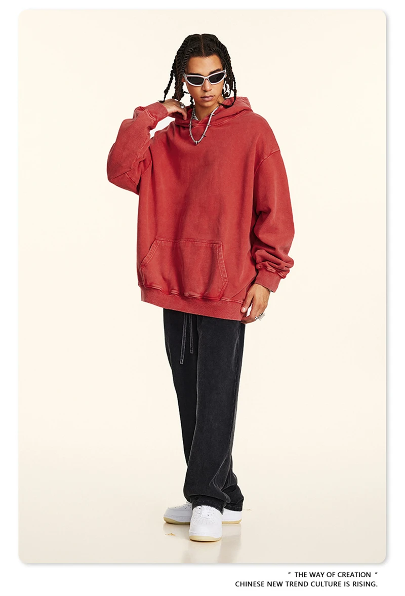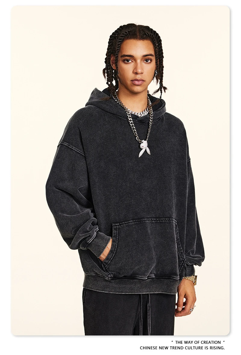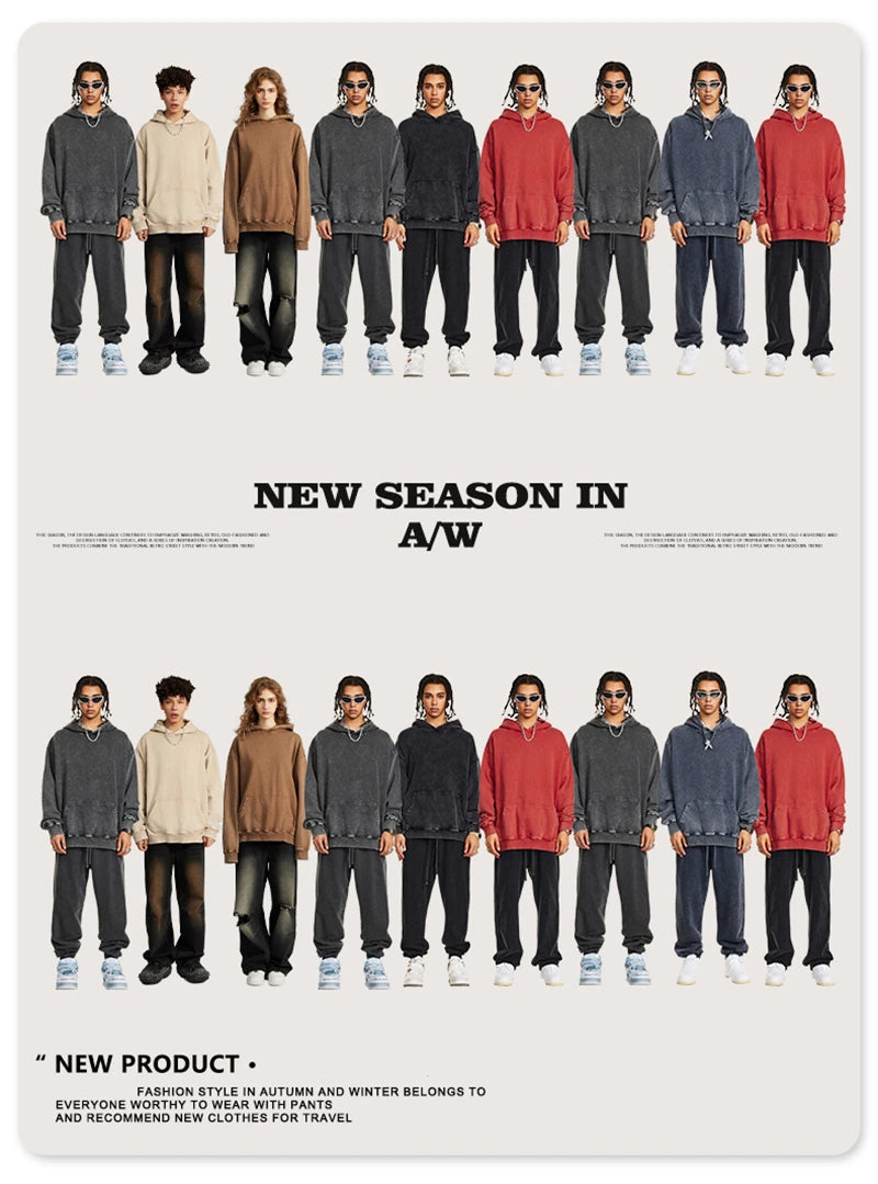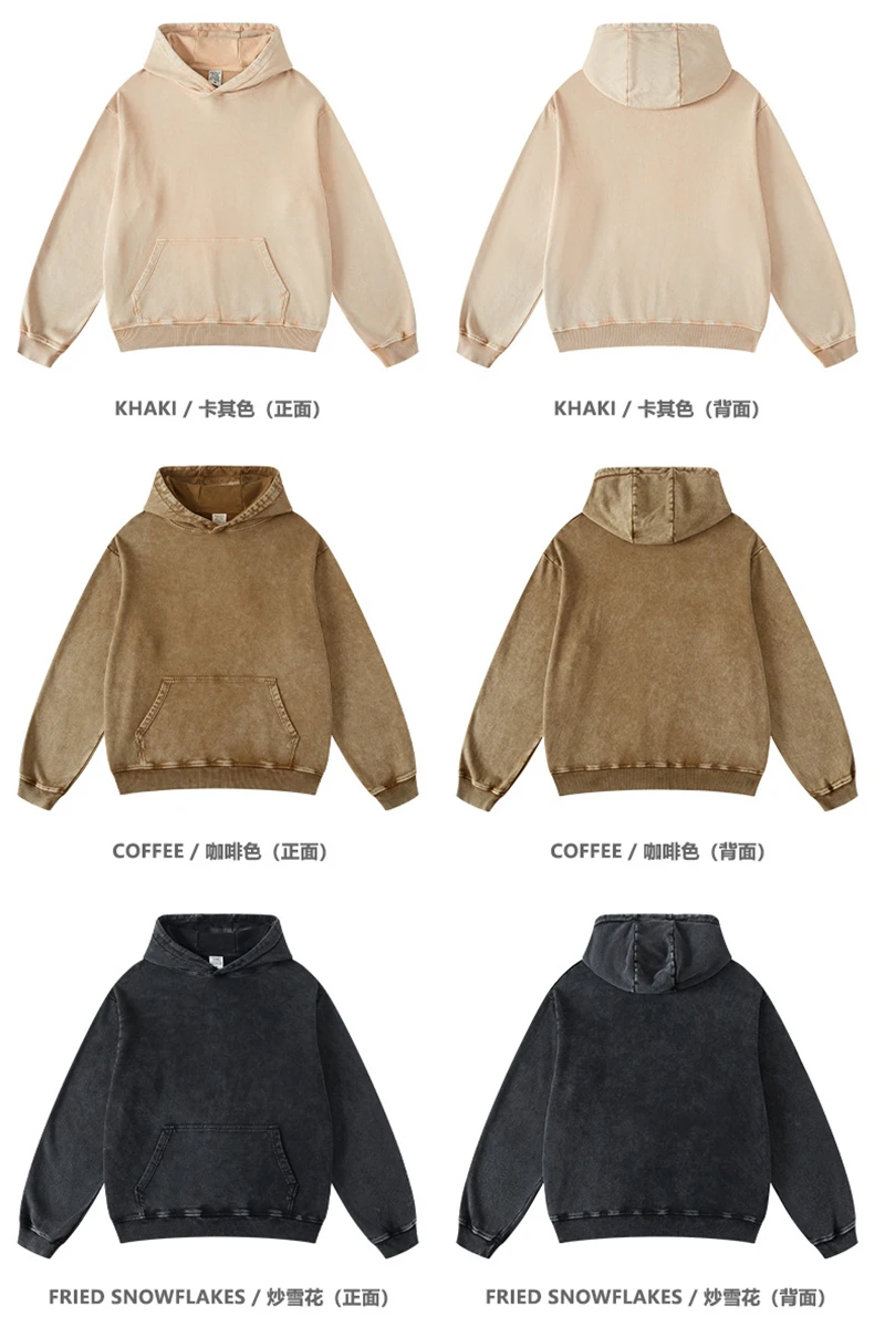 ZODF Retro Men Heavyweight Washed Cotton Hoodies Unisex Loose Thick 420gsm Hooded Sweatshirts Pullovers Coats HY0466