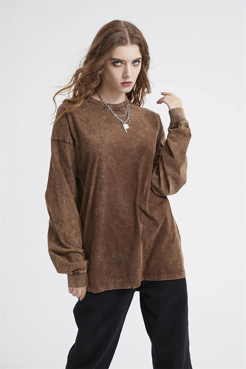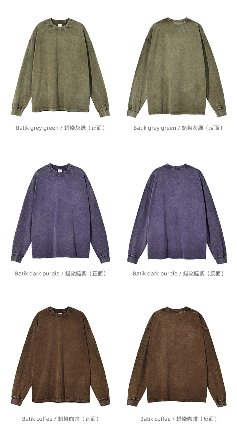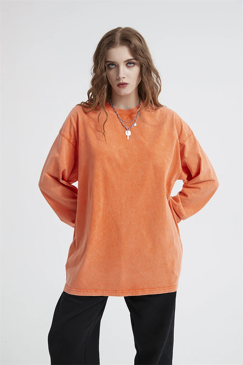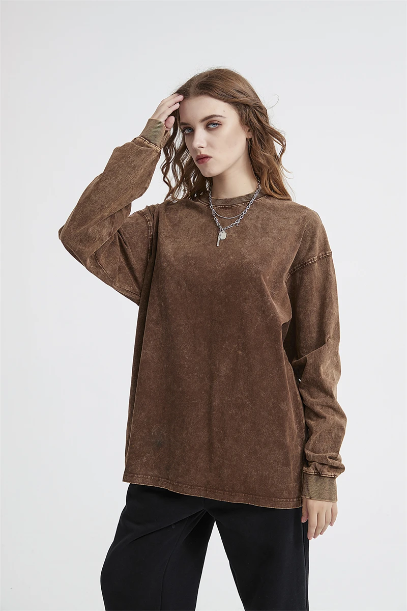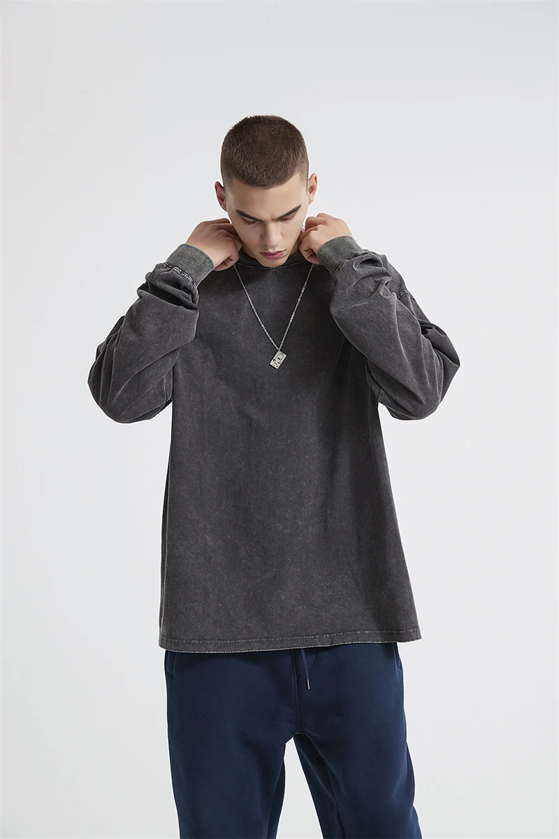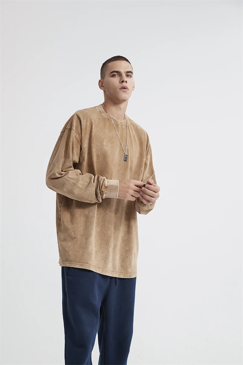 ZODF Retro Men Long Sleeve Washed Cotton T Shirt Unisex Loose 250gsm Basic Atumn TEES Tops Brand Streetwears HY0394