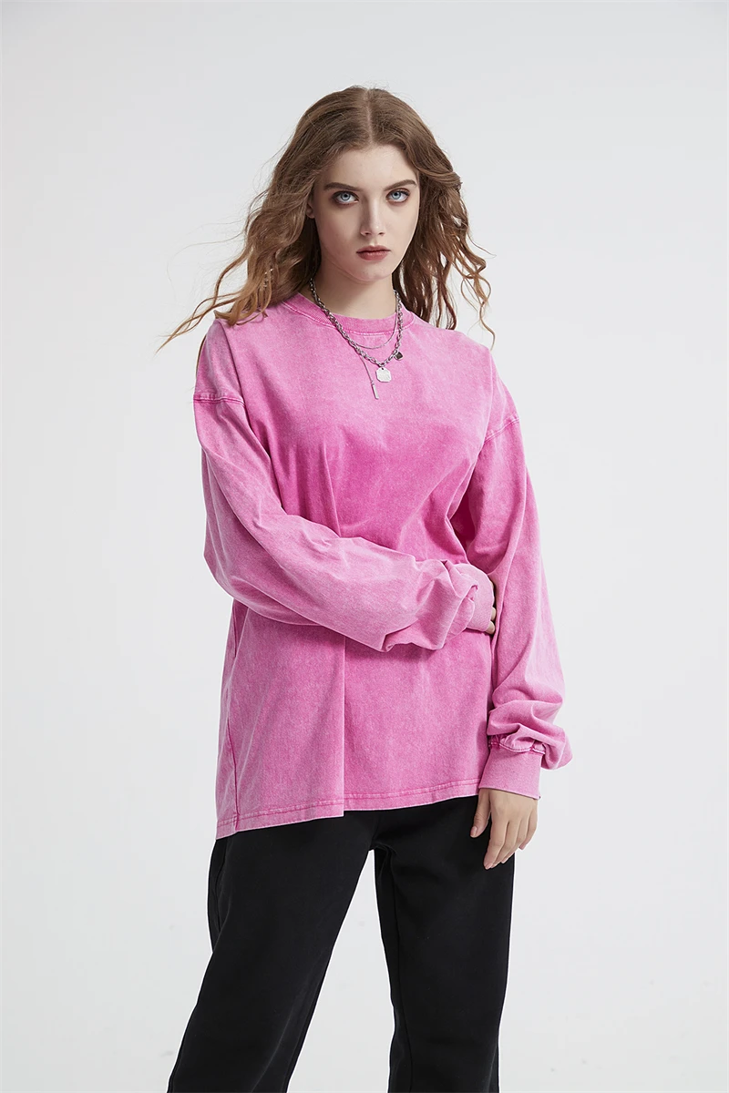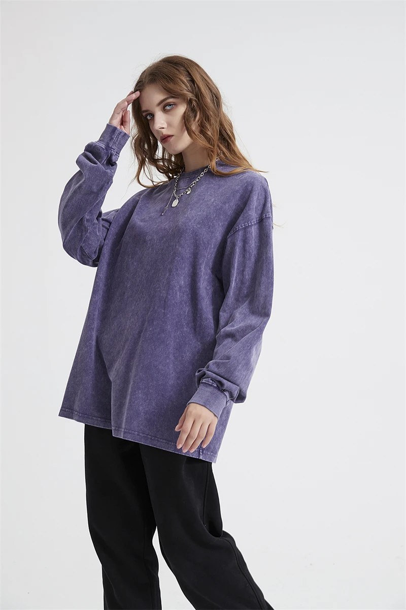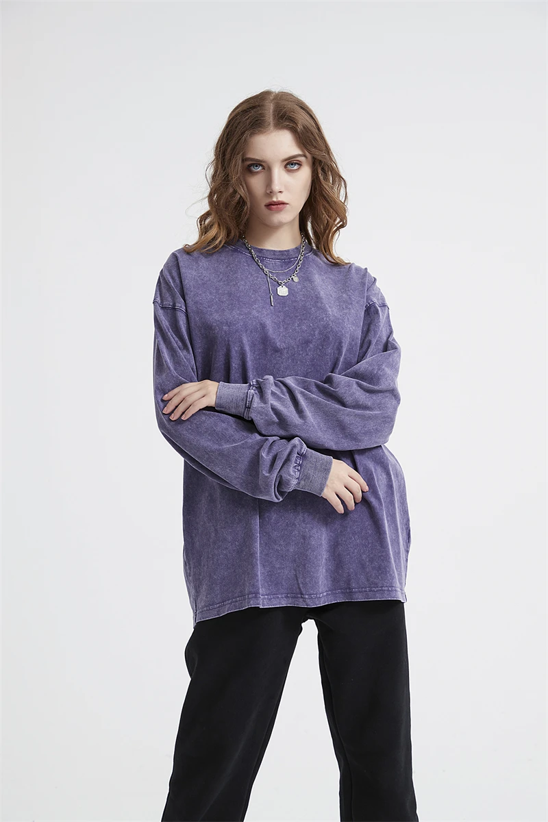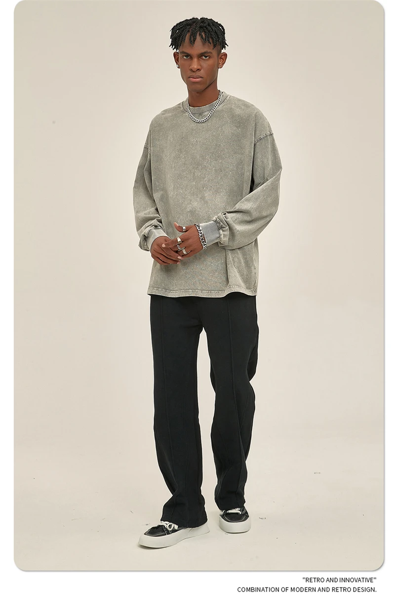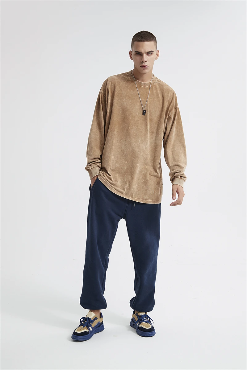 ZODF Retro Men Long Sleeve Washed Cotton T Shirt Unisex Loose 250gsm Basic Atumn TEES Tops Brand Streetwears HY0394