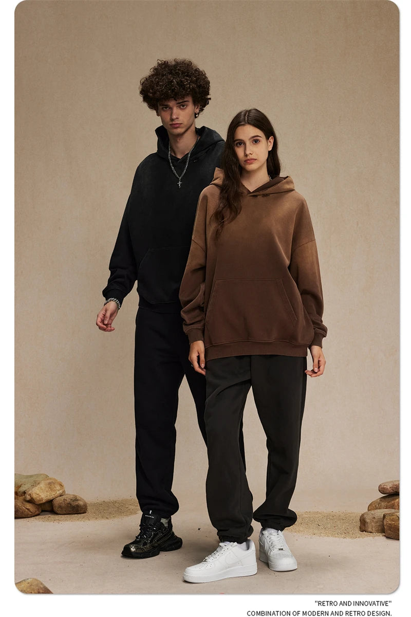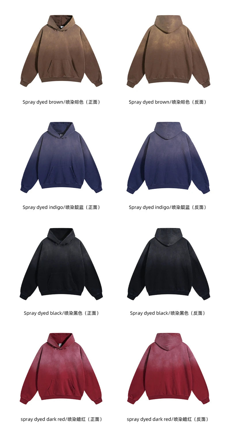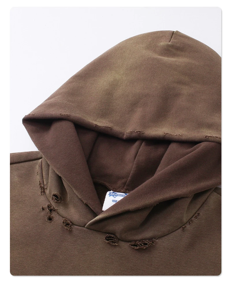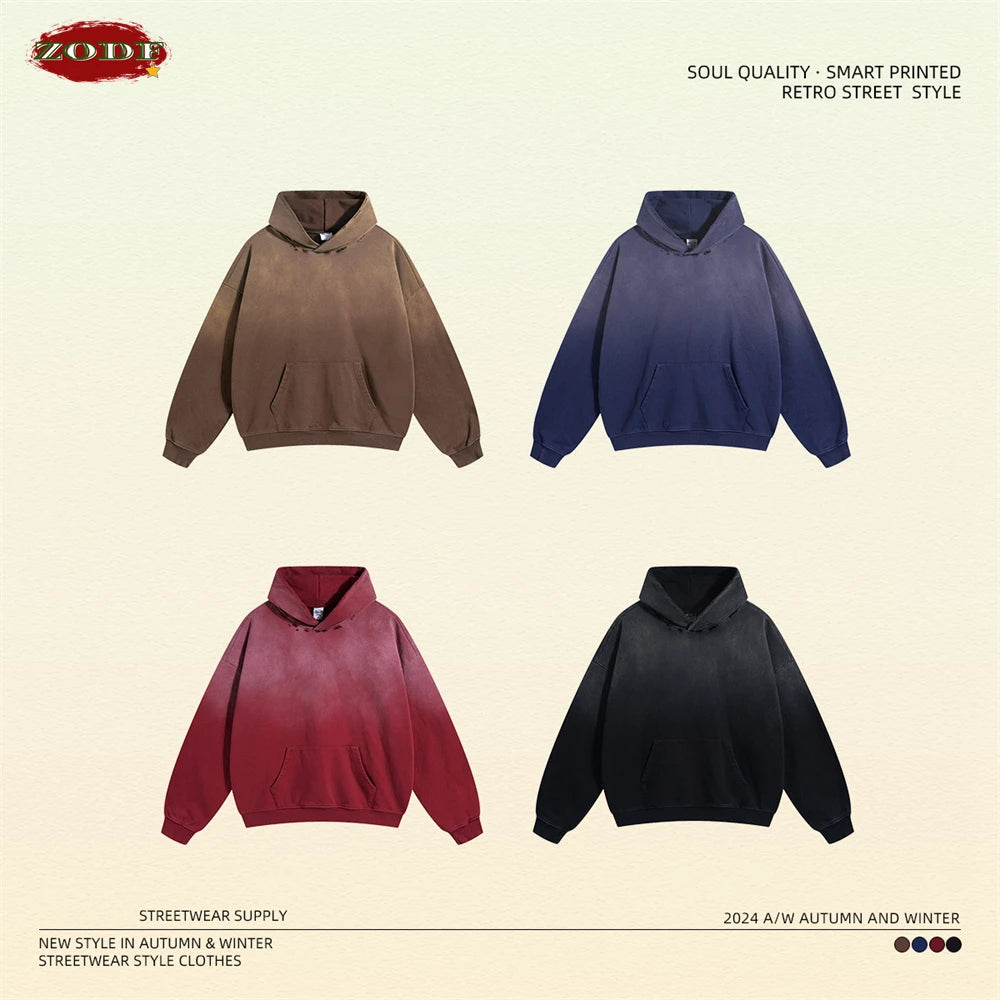 ZODF Retro Men's Heavyweight Gradient Washed Hoodies Unisex Loose Distressed Holes 450gsm Knitted Hooded Pullovers HY0891